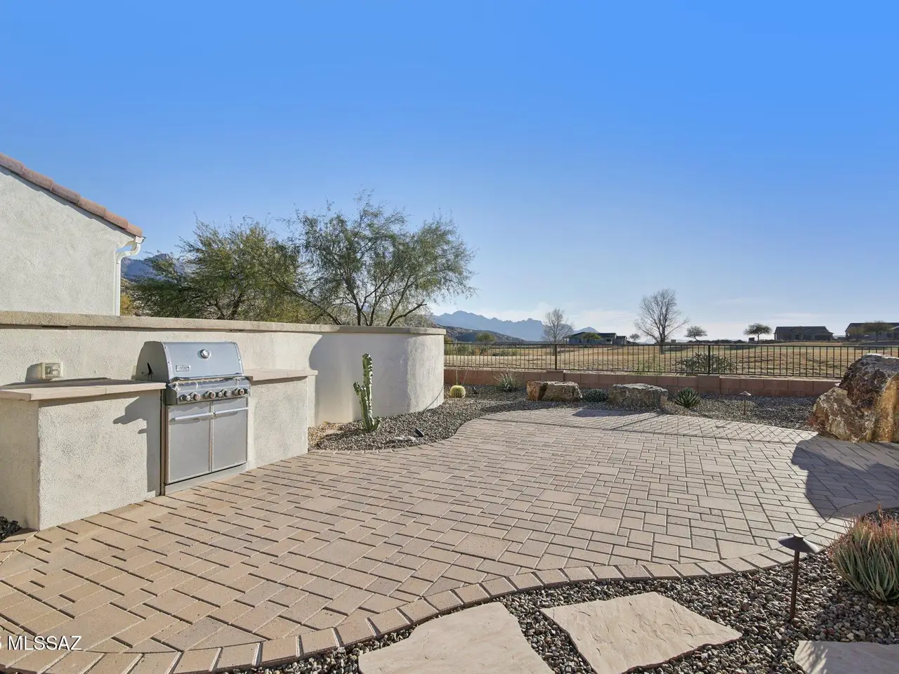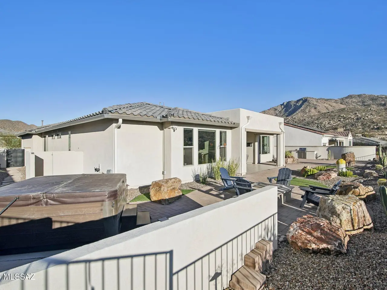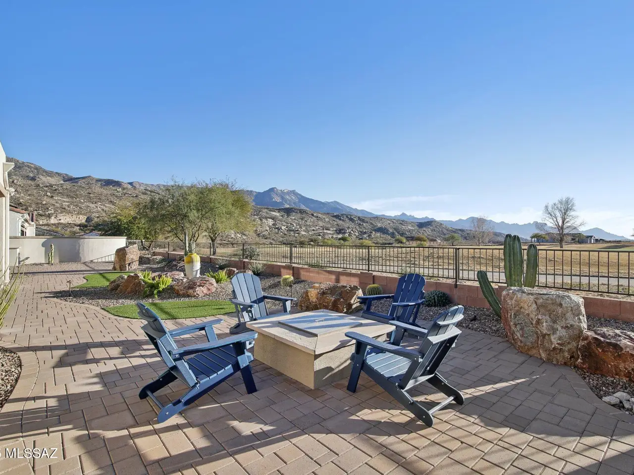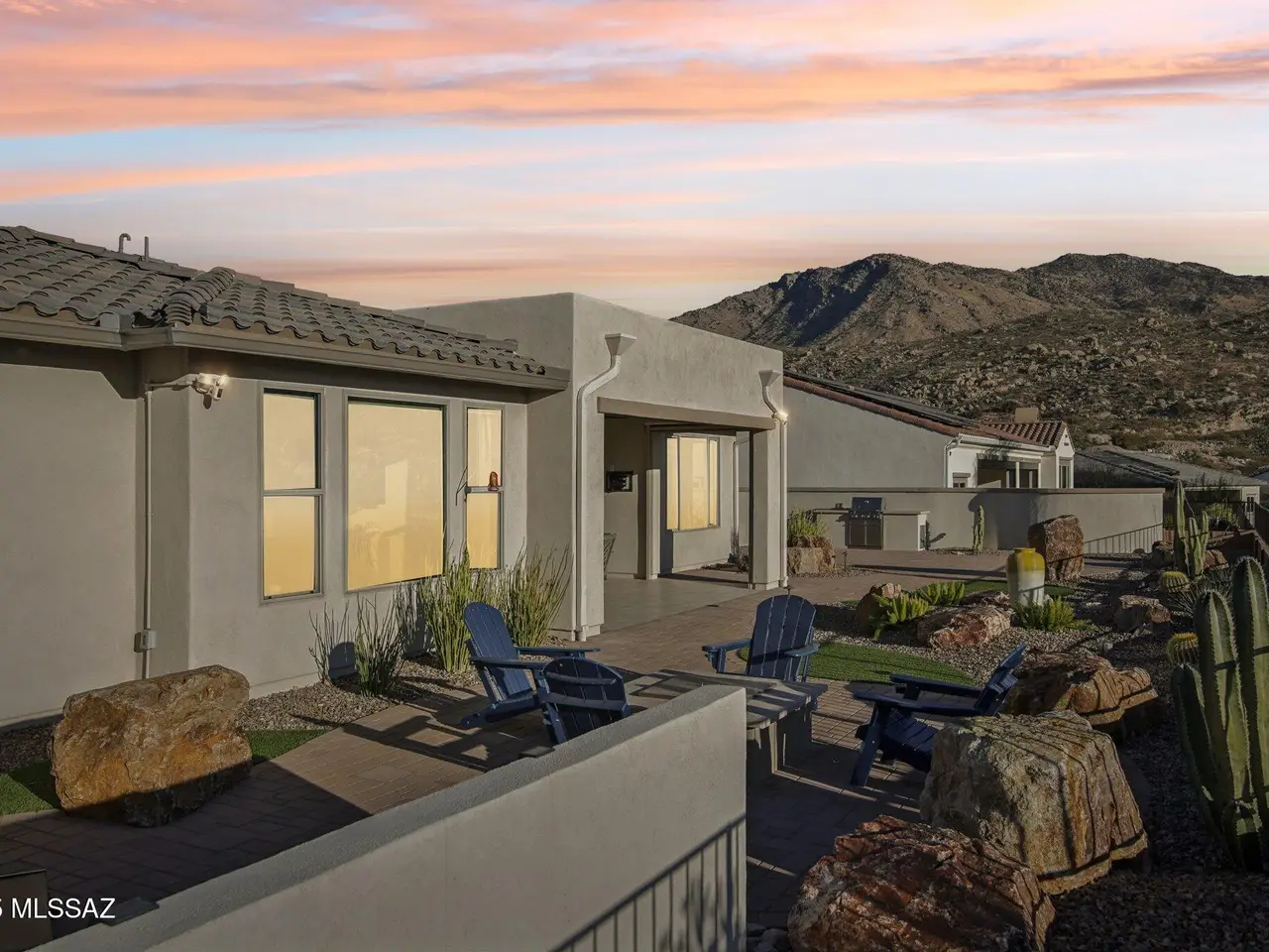 Fabulous mountain and golf course views from this expanded Paloma in The Preserve at SaddleBrooke. This 2021 home blends sophistication & functionality in an efficient floor plan with 3 bedroom suites & 3 1/2 bathrooms. Endless upgrades: Wolf/Subzero appliances, granite counters/backsplash, custom closets, crown molding, custom mahogany entertainment niche. Landscaping incl. front and back firepit, built-in grill, fountain, hot tub & more. Extended covered patio w/motorized screens bring the outside in. Home equipped w/3-zone HVAC system, extra insulation, and epoxy-coated oversized garage. Water filter, water softener and hot water recirc pump. Gently live-in part-time snowbirds - selling as they needed more entertaining space for large family gatherings.