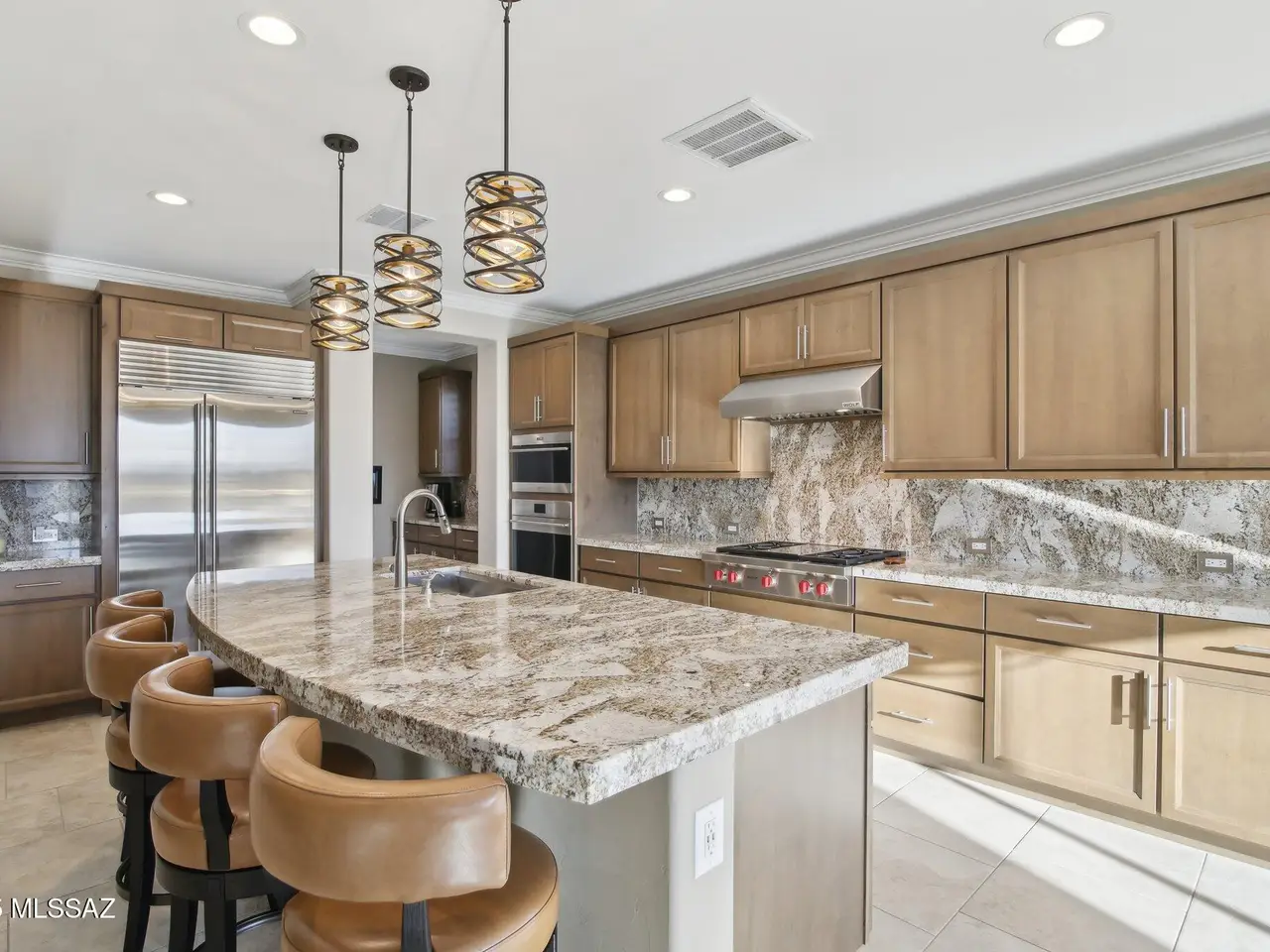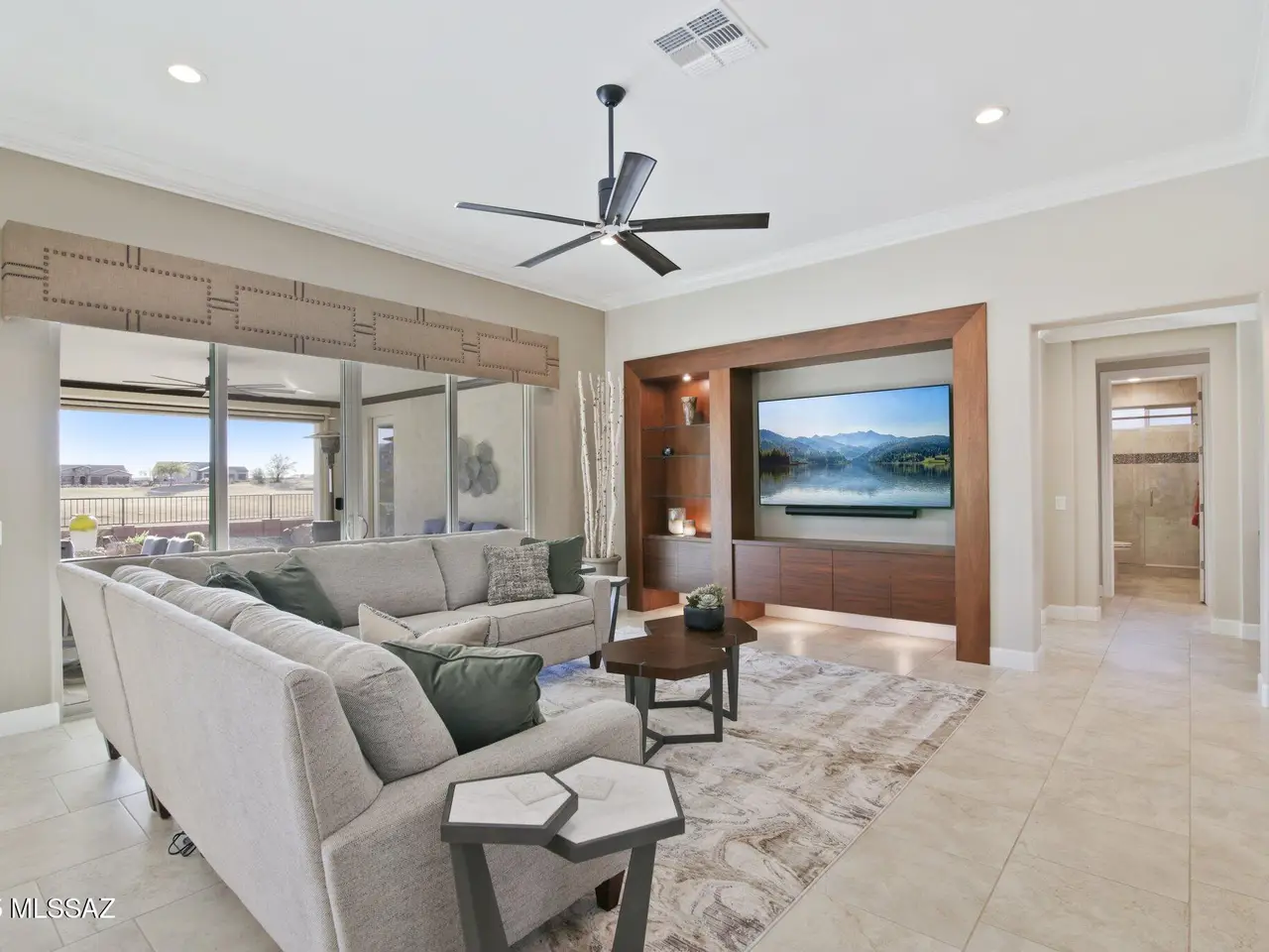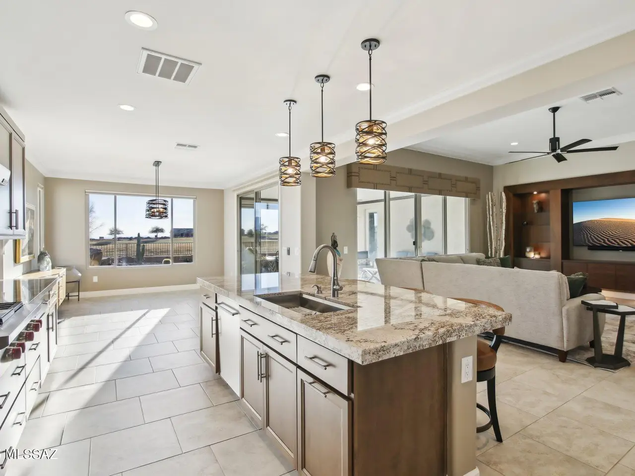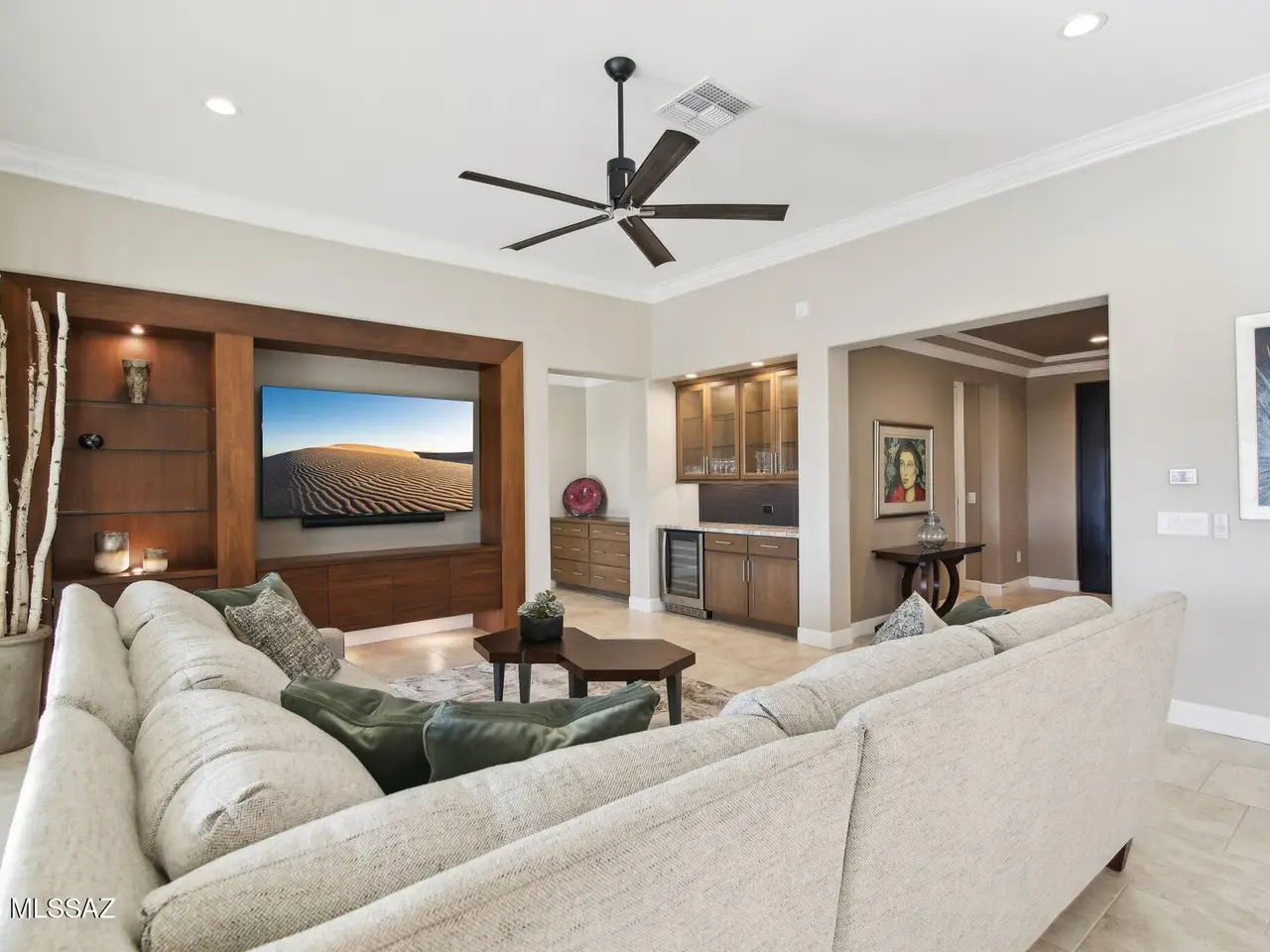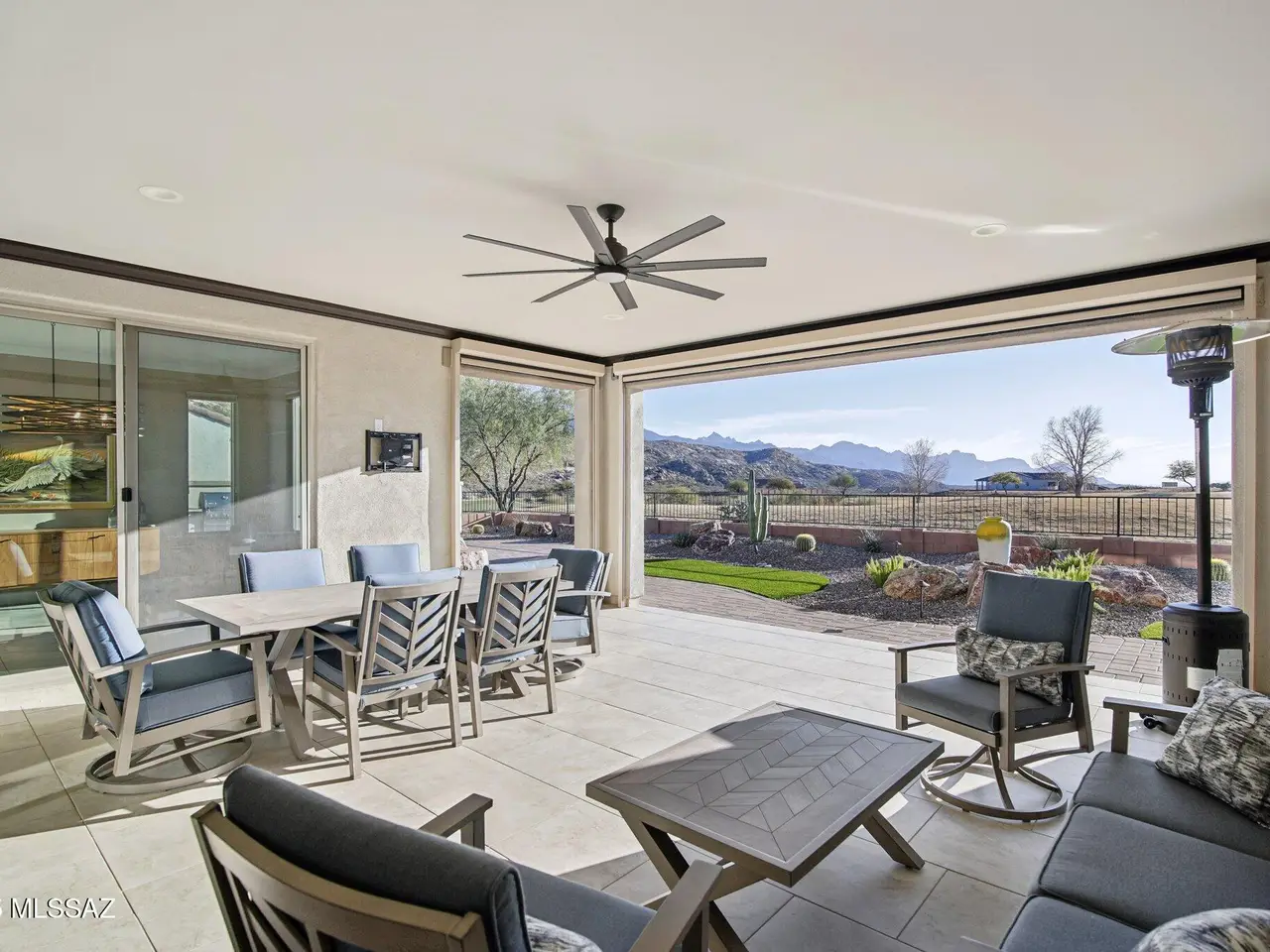 Fabulous mountain and golf course views from this expanded Paloma in The Preserve at SaddleBrooke. This 2021 home blends sophistication & functionality in an efficient floor plan with 3 bedroom suites & 3 1/2 bathrooms. Endless upgrades: Wolf/Subzero appliances, granite counters/backsplash, custom closets, crown molding, custom mahogany entertainment niche. Landscaping incl. front and back firepit, built-in grill, fountain, hot tub & more. Extended covered patio w/motorized screens bring the outside in. Home equipped w/3-zone HVAC system, extra insulation, and epoxy-coated oversized garage. Water filter, water softener and hot water recirc pump. Gently live-in part-time snowbirds - selling as they needed more entertaining space for large family gatherings.