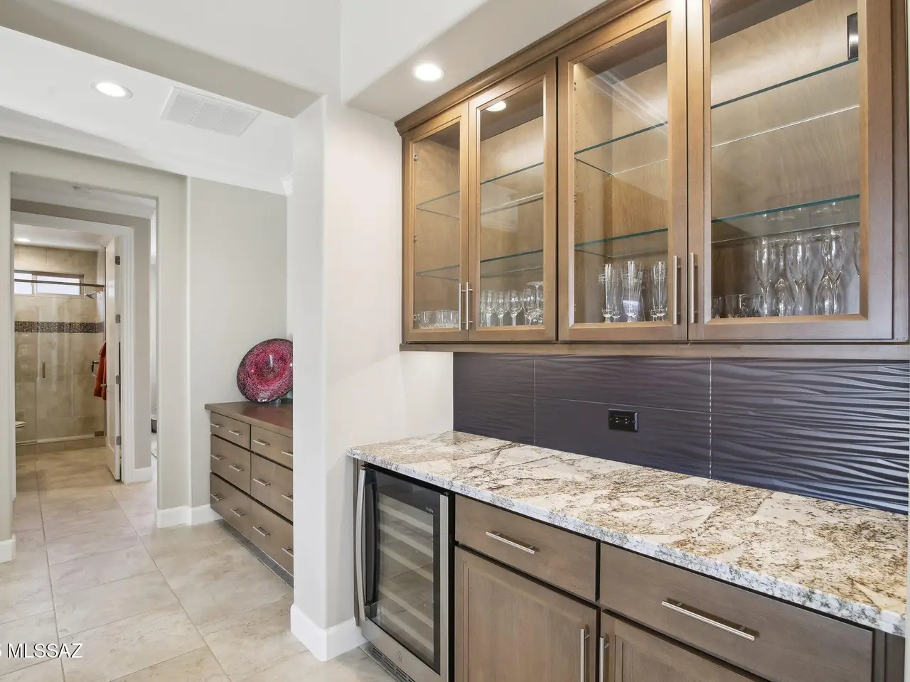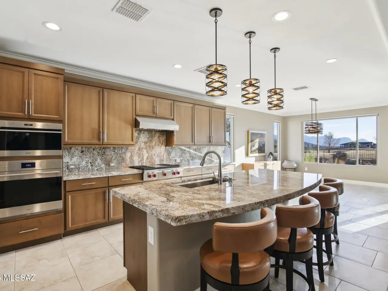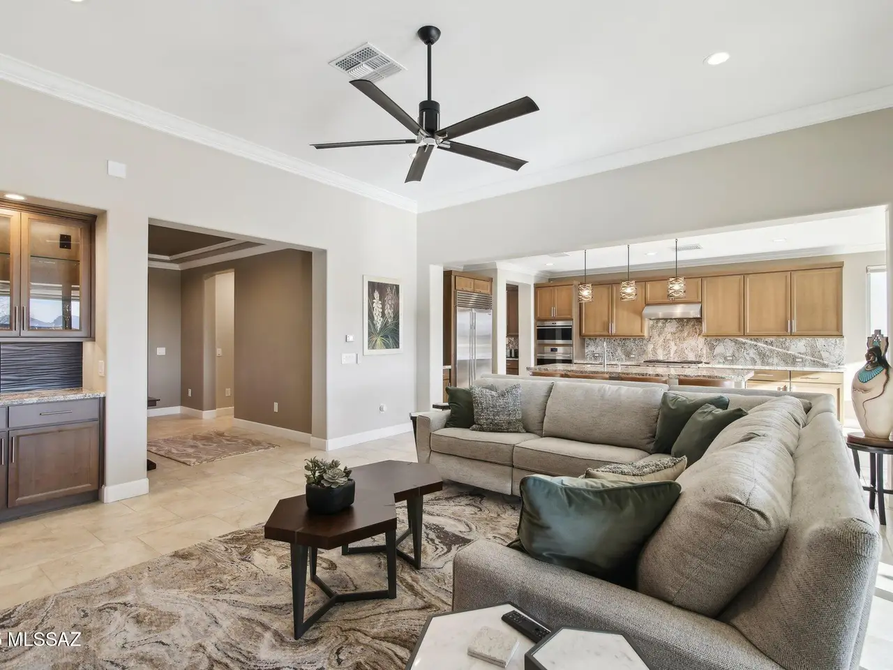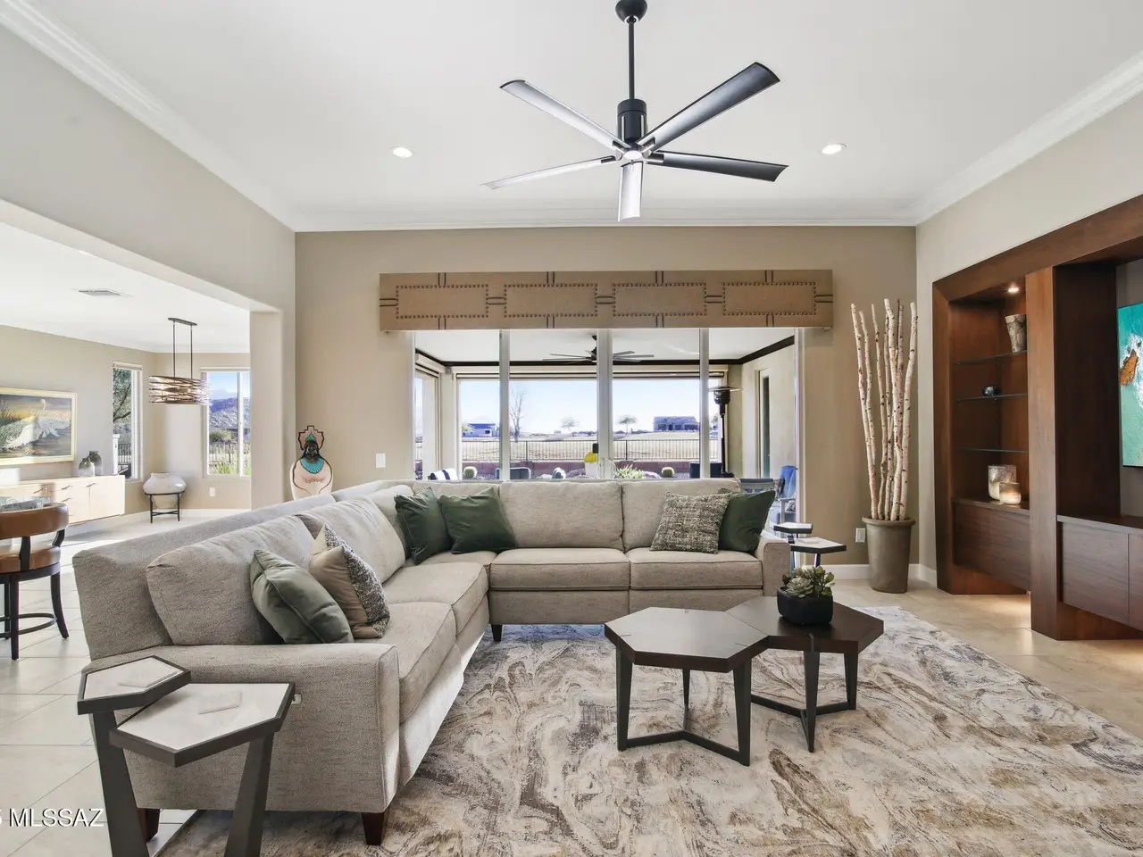 Fabulous mountain and golf course views from this expanded Paloma in The Preserve at SaddleBrooke. This 2021 home blends sophistication & functionality in an efficient floor plan with 3 bedroom suites & 3 1/2 bathrooms. Endless upgrades: Wolf/Subzero appliances, granite counters/backsplash, custom closets, crown molding, custom mahogany entertainment niche. Landscaping incl. front and back firepit, built-in grill, fountain, hot tub & more. Extended covered patio w/motorized screens bring the outside in. Home equipped w/3-zone HVAC system, extra insulation, and epoxy-coated oversized garage. Water filter, water softener and hot water recirc pump. Gently live-in part-time snowbirds - selling as they needed more entertaining space for large family gatherings.