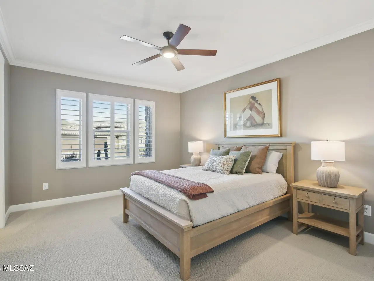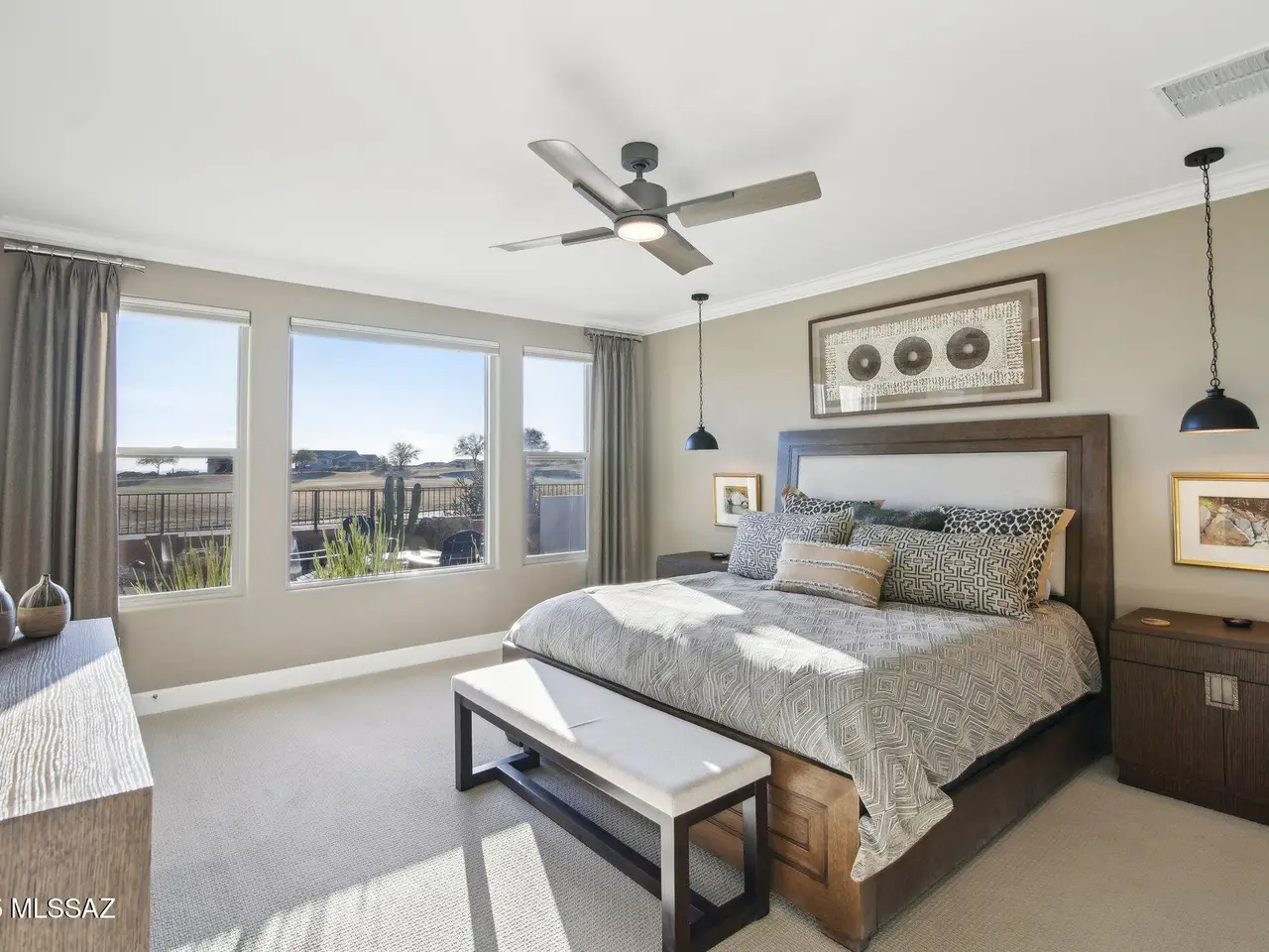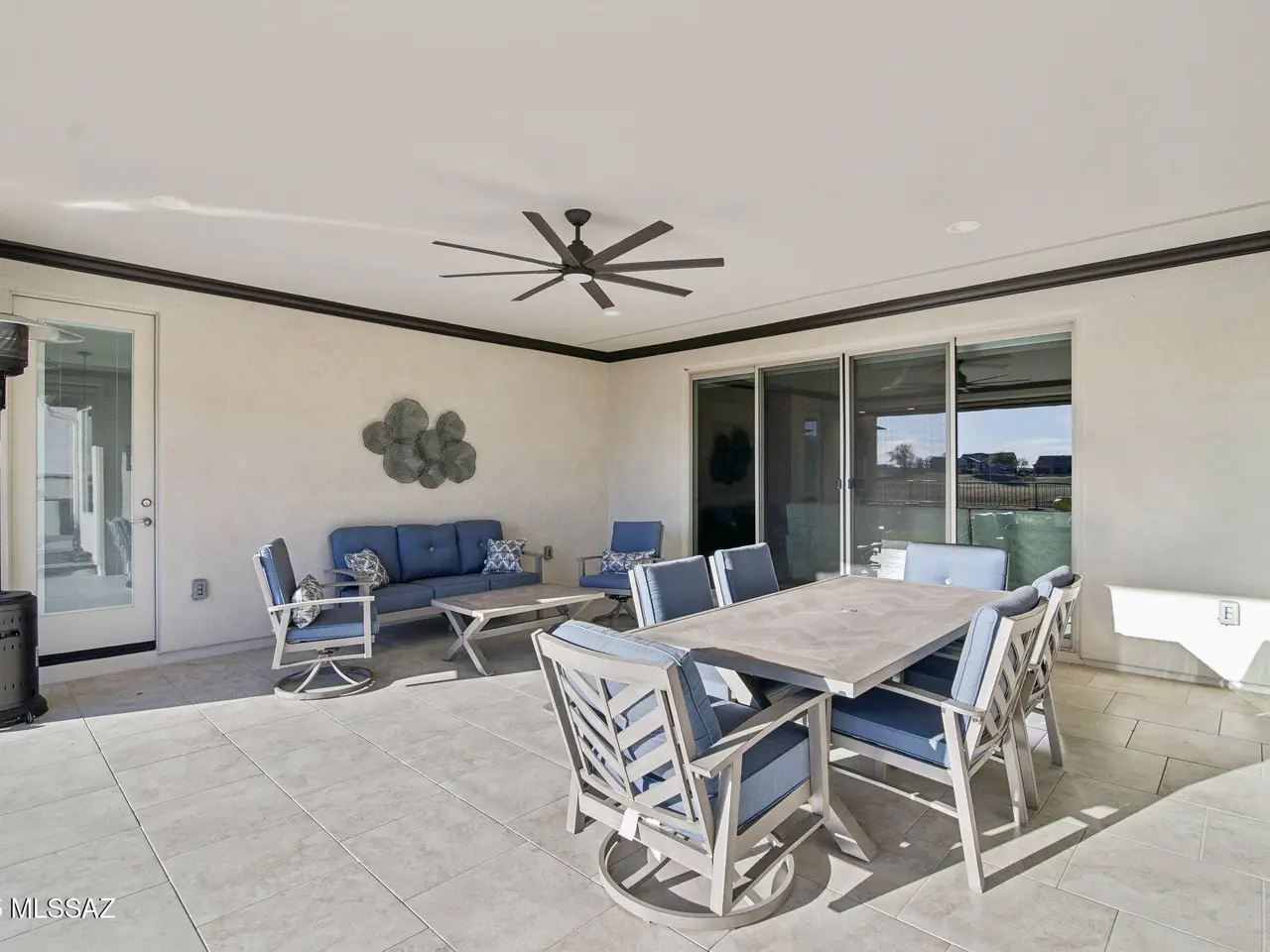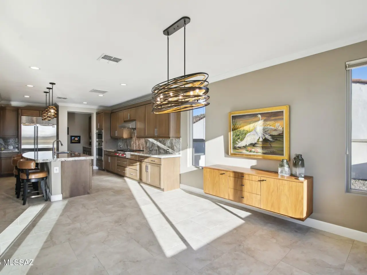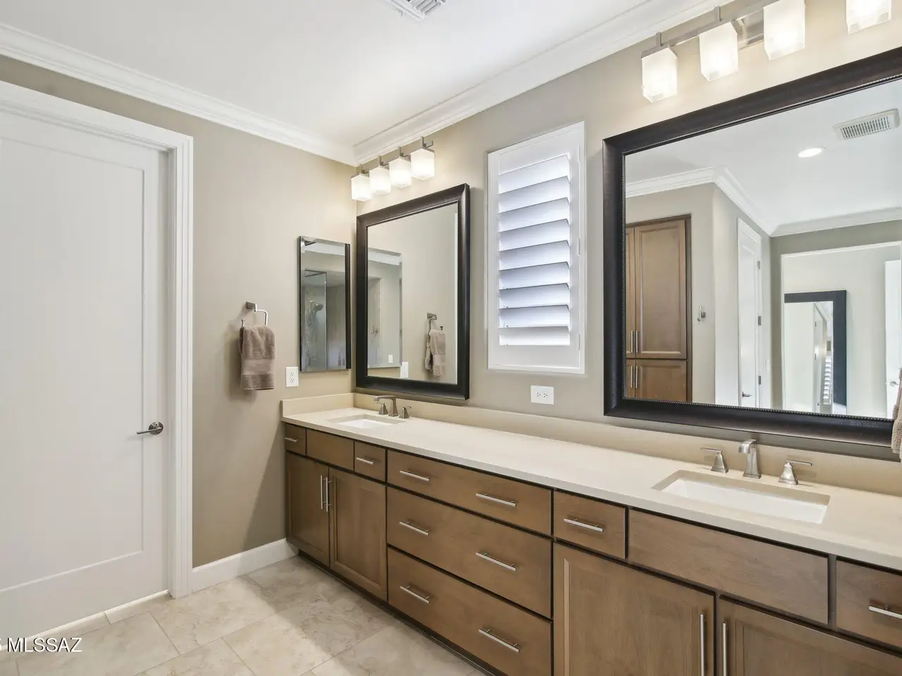 Fabulous mountain and golf course views from this expanded Paloma in The Preserve at SaddleBrooke. This 2021 home blends sophistication & functionality in an efficient floor plan with 3 bedroom suites & 3 1/2 bathrooms. Endless upgrades: Wolf/Subzero appliances, granite counters/backsplash, custom closets, crown molding, custom mahogany entertainment niche. Landscaping incl. front and back firepit, built-in grill, fountain, hot tub & more. Extended covered patio w/motorized screens bring the outside in. Home equipped w/3-zone HVAC system, extra insulation, and epoxy-coated oversized garage. Water filter, water softener and hot water recirc pump. Gently live-in part-time snowbirds - selling as they needed more entertaining space for large family gatherings.