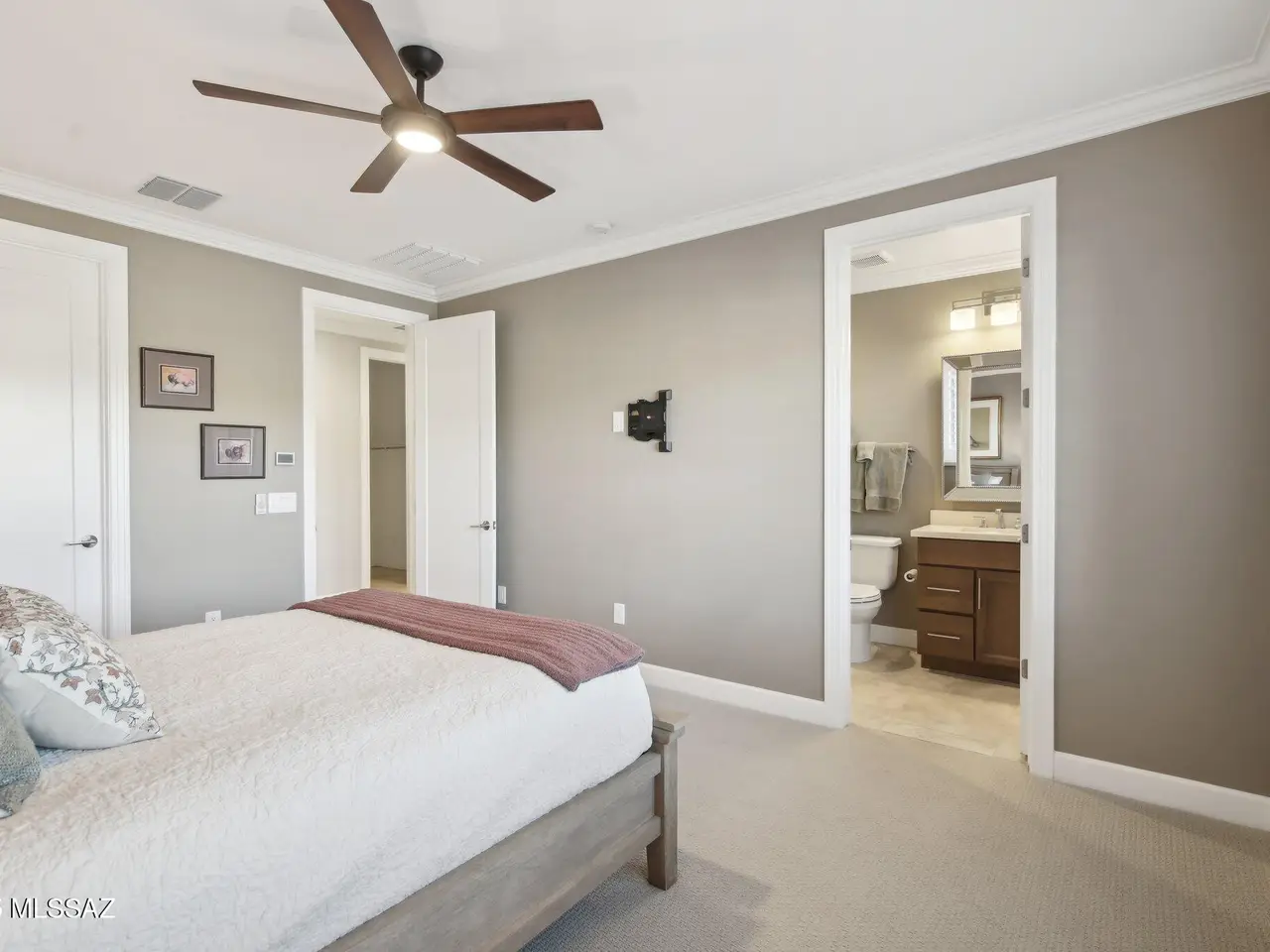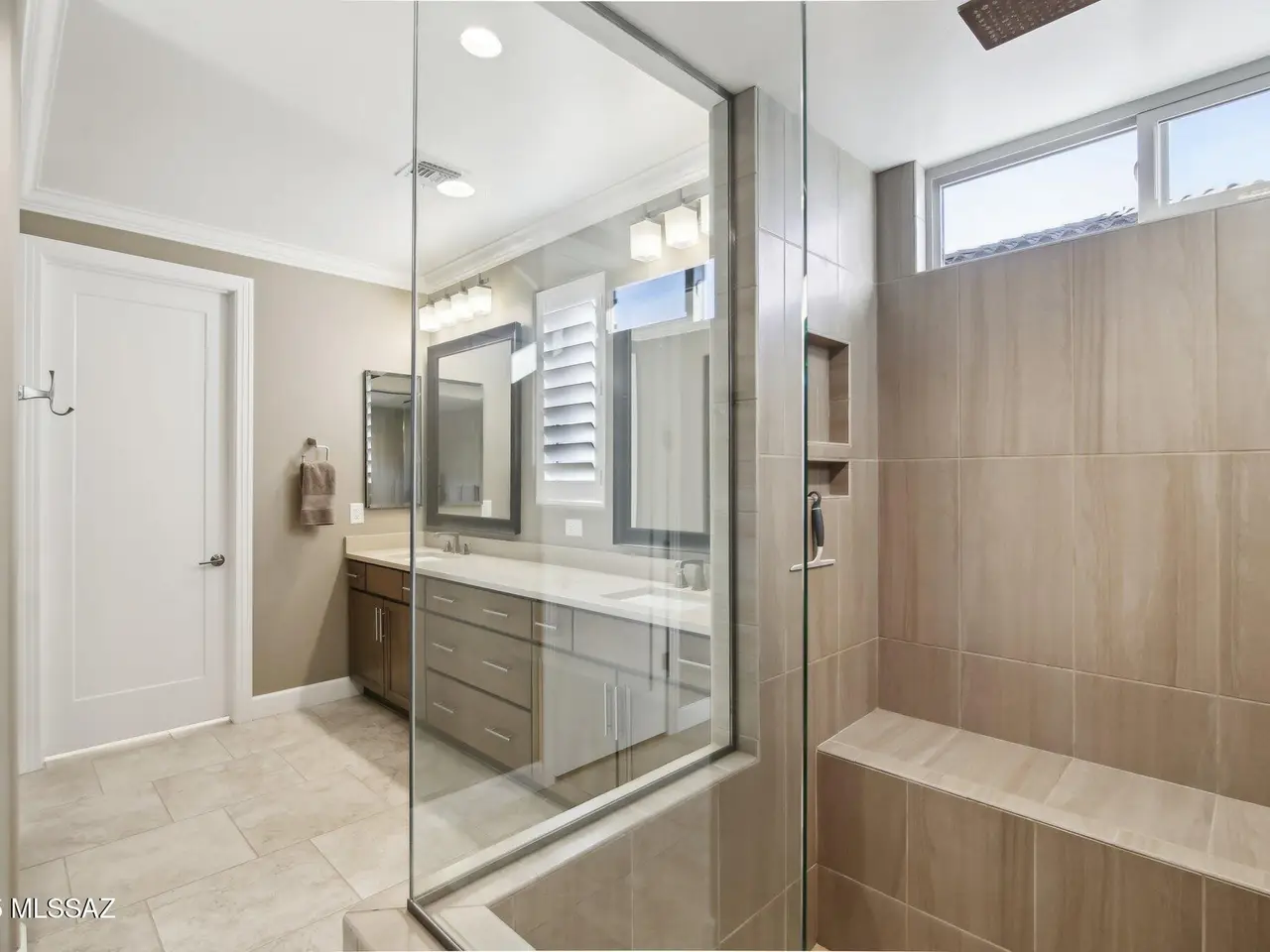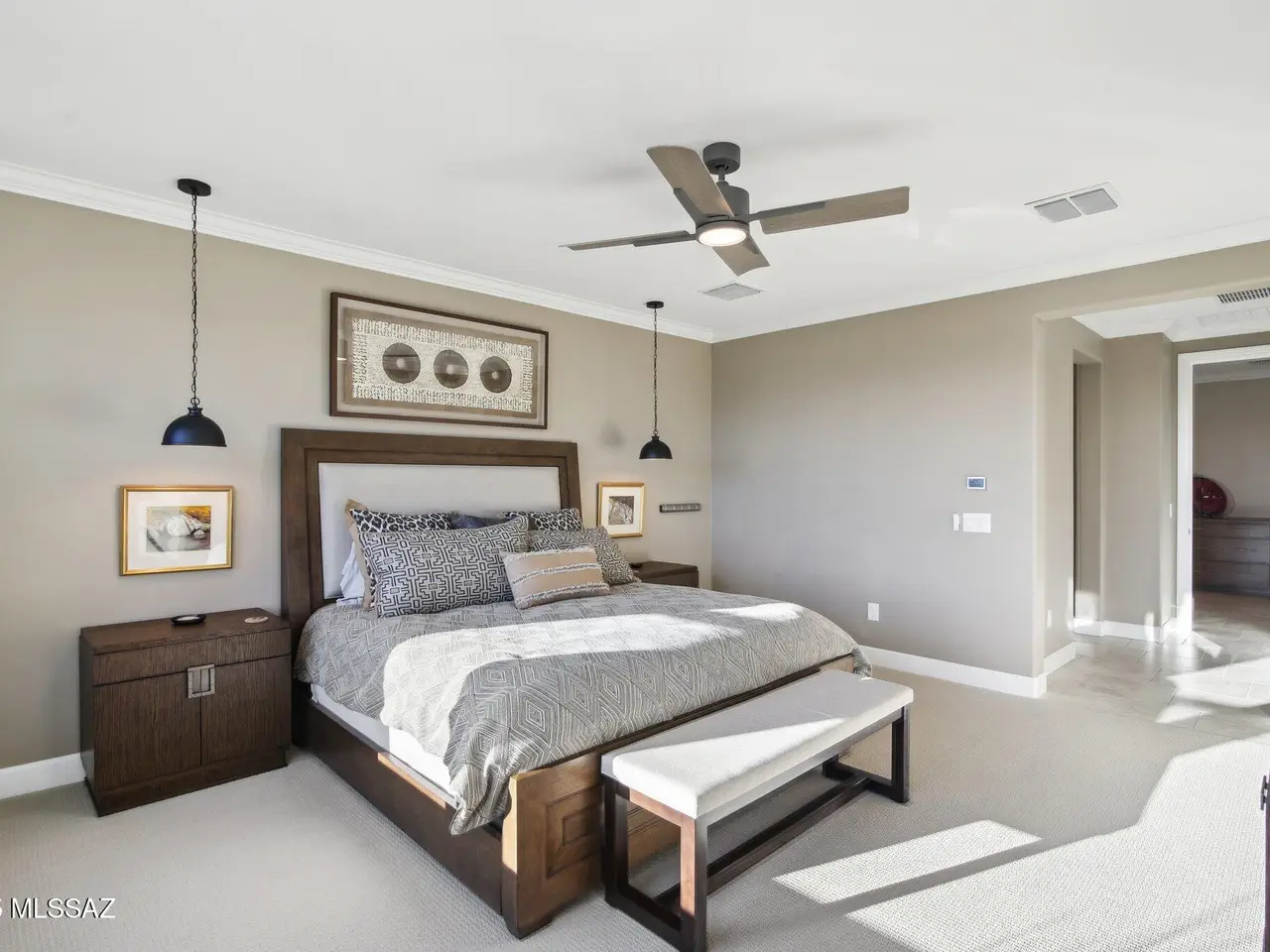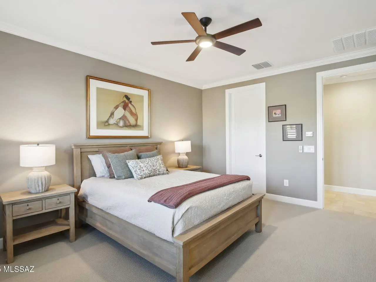 Fabulous mountain and golf course views from this expanded Paloma in The Preserve at SaddleBrooke. This 2021 home blends sophistication & functionality in an efficient floor plan with 3 bedroom suites & 3 1/2 bathrooms. Endless upgrades: Wolf/Subzero appliances, granite counters/backsplash, custom closets, crown molding, custom mahogany entertainment niche. Landscaping incl. front and back firepit, built-in grill, fountain, hot tub & more. Extended covered patio w/motorized screens bring the outside in. Home equipped w/3-zone HVAC system, extra insulation, and epoxy-coated oversized garage. Water filter, water softener and hot water recirc pump. Gently live-in part-time snowbirds - selling as they needed more entertaining space for large family gatherings.