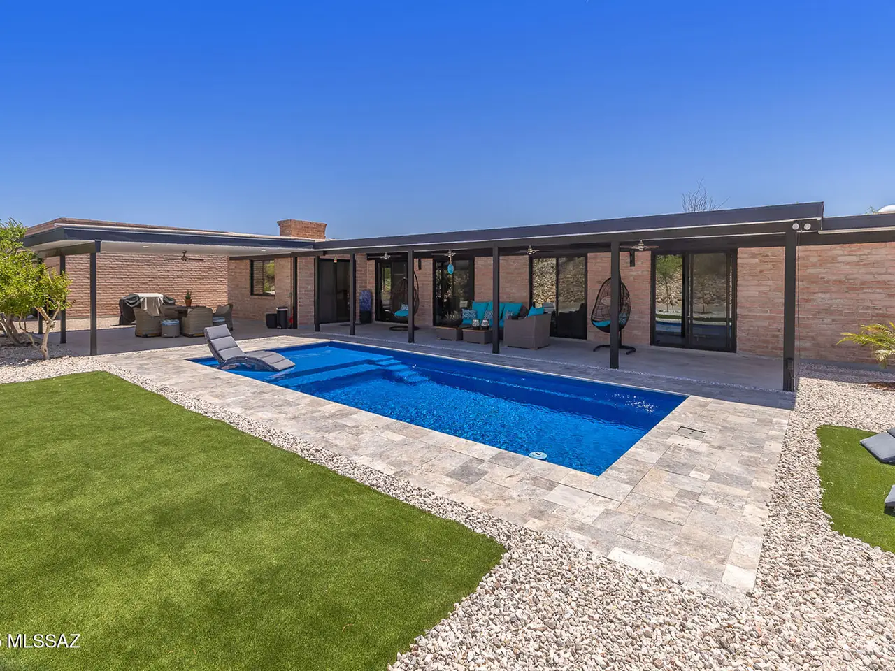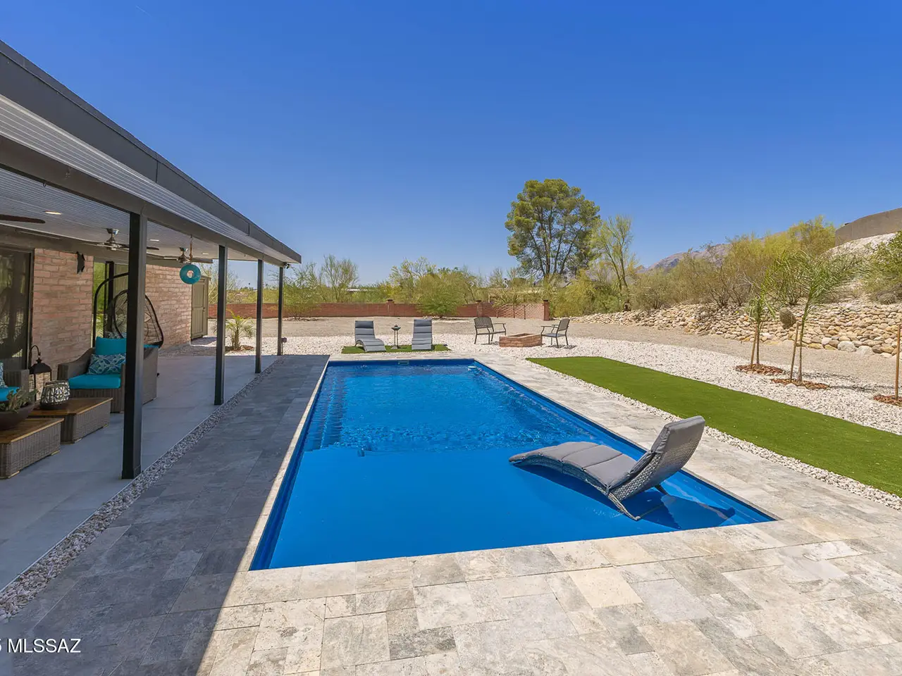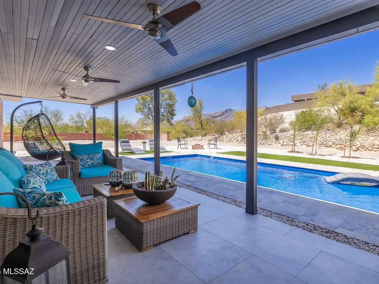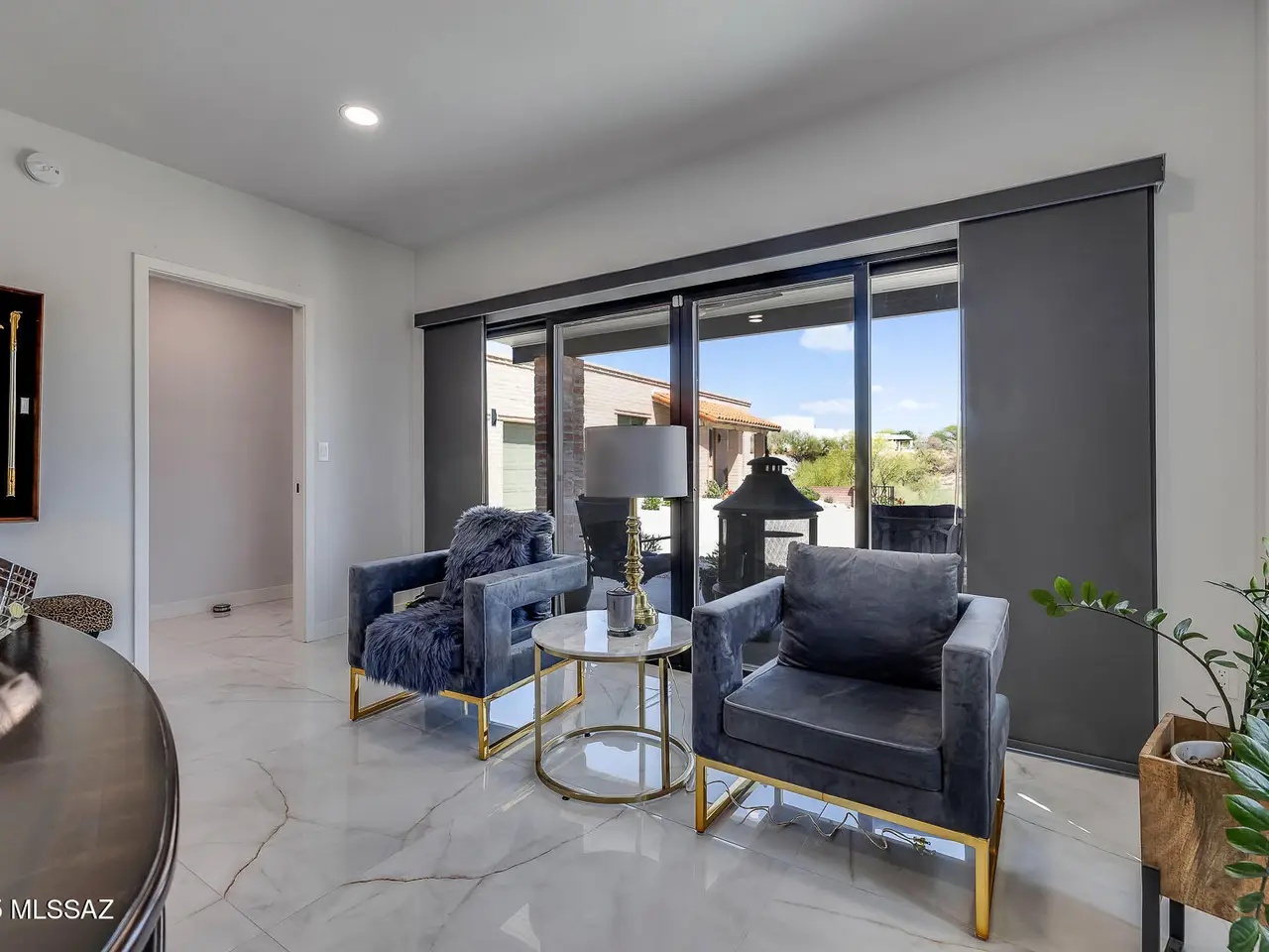 Welcome to your dream home (2, 765 main house & 891 sq ft detached casita) in the coveted Catalina Foothills, an exquisitely remodeled masterpiece nestled on a private gated 1.2-acre elevated lot with mountain and city lights views. The main residence boasts 2, 753 sq ft of luxurious living space, featuring 3 bedrooms, 3 beautifully appointed bathrooms and a versatile office/den with a private patio that can easily serve as an additional bedroom, home office, or creative studio. Enjoy the elegance of Brazilian porcelain tile throughout, Sile Stone countertops and all new energy-efficient windows and doors that flood the home with natural light. The unbelievable kitchen is a chef's paradise, outfitted with state-of-the-art appliances and seamlessly flows into generous great room with stylish dry bar-perfect for entertaining. The primary suite is a true retreat offering a spa-like bathroom with doorless walk-in shower and designer finishes. Two guest rooms share a sleek Jack and Jill bathroom, ensuring comfort and privacy for family and visitors. Step outside to your tranquil oasis- complete with an extended patio, heated pool, travertine pool deck and artificial turf to enjoy those outside games. The 896 sq ft detached casita is equally impressive, featuring 1 bedroom, 1 bath, and a beautiful Trex deck that wraps around half of the structure offering privacy, capturing views and versatility for guests, extended family, or rental potential. This unique property offers the perfect blend of modern luxury and natural beauty, all set against the breathtaking backdrop of the Catalina Foothills.