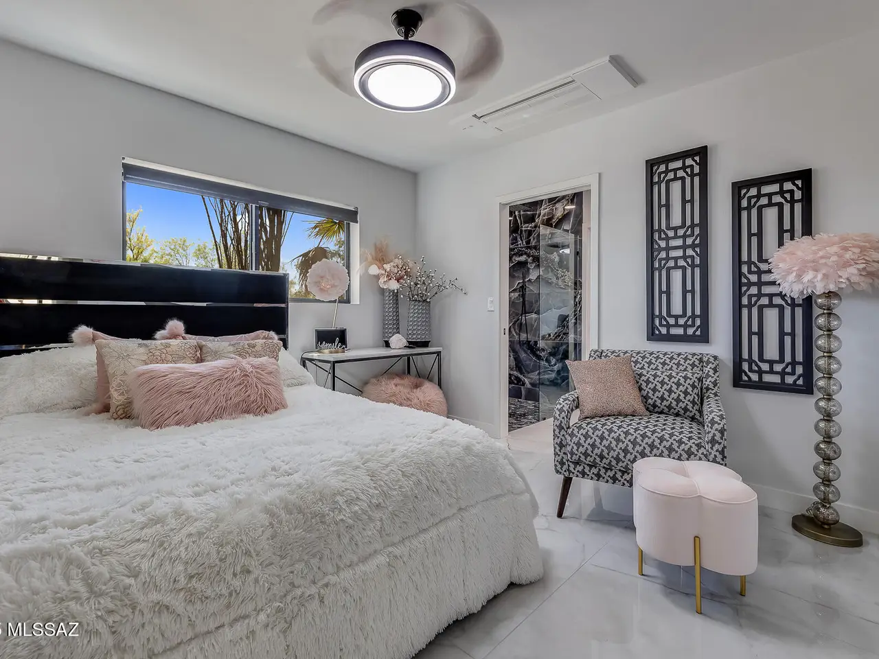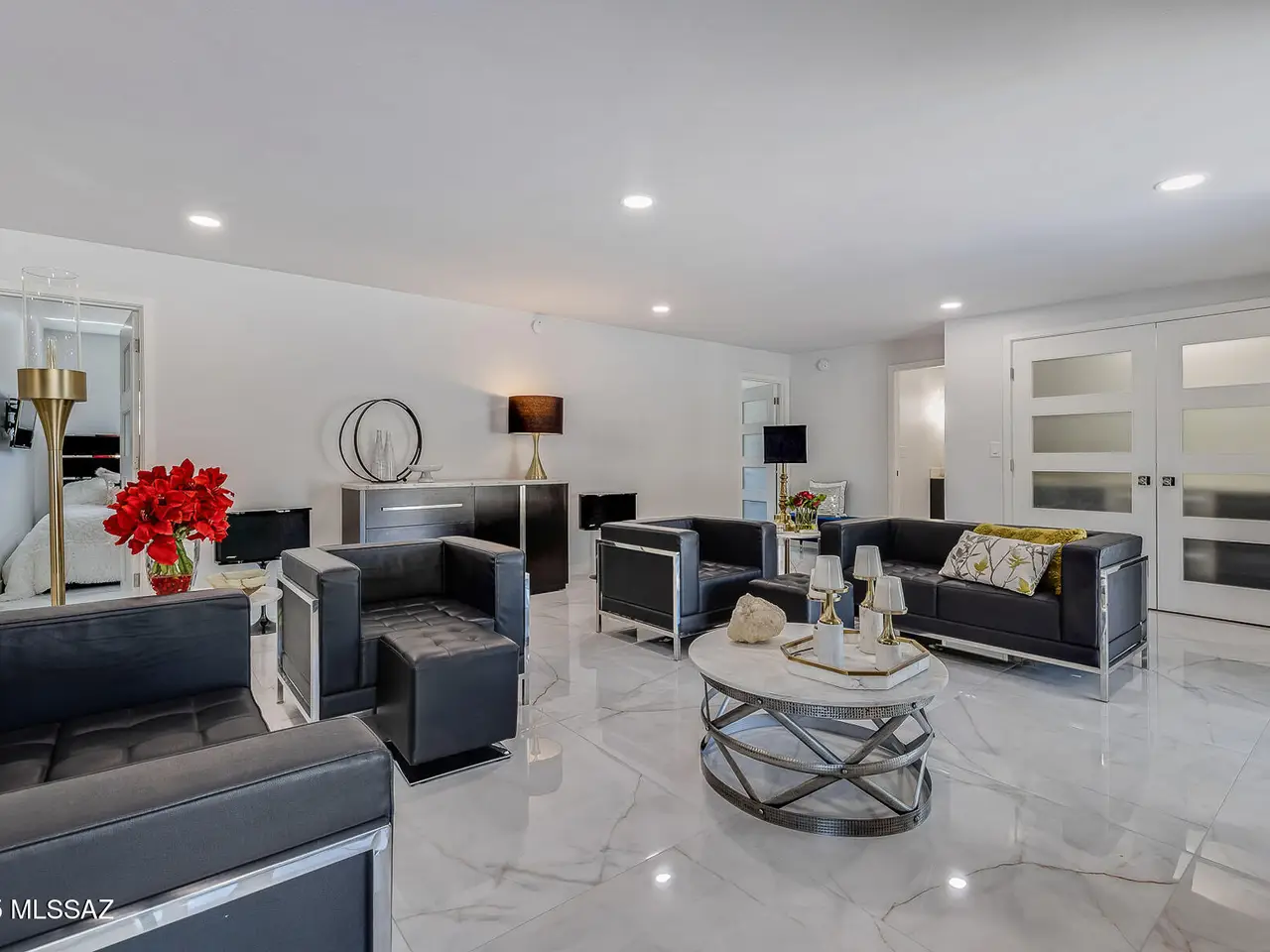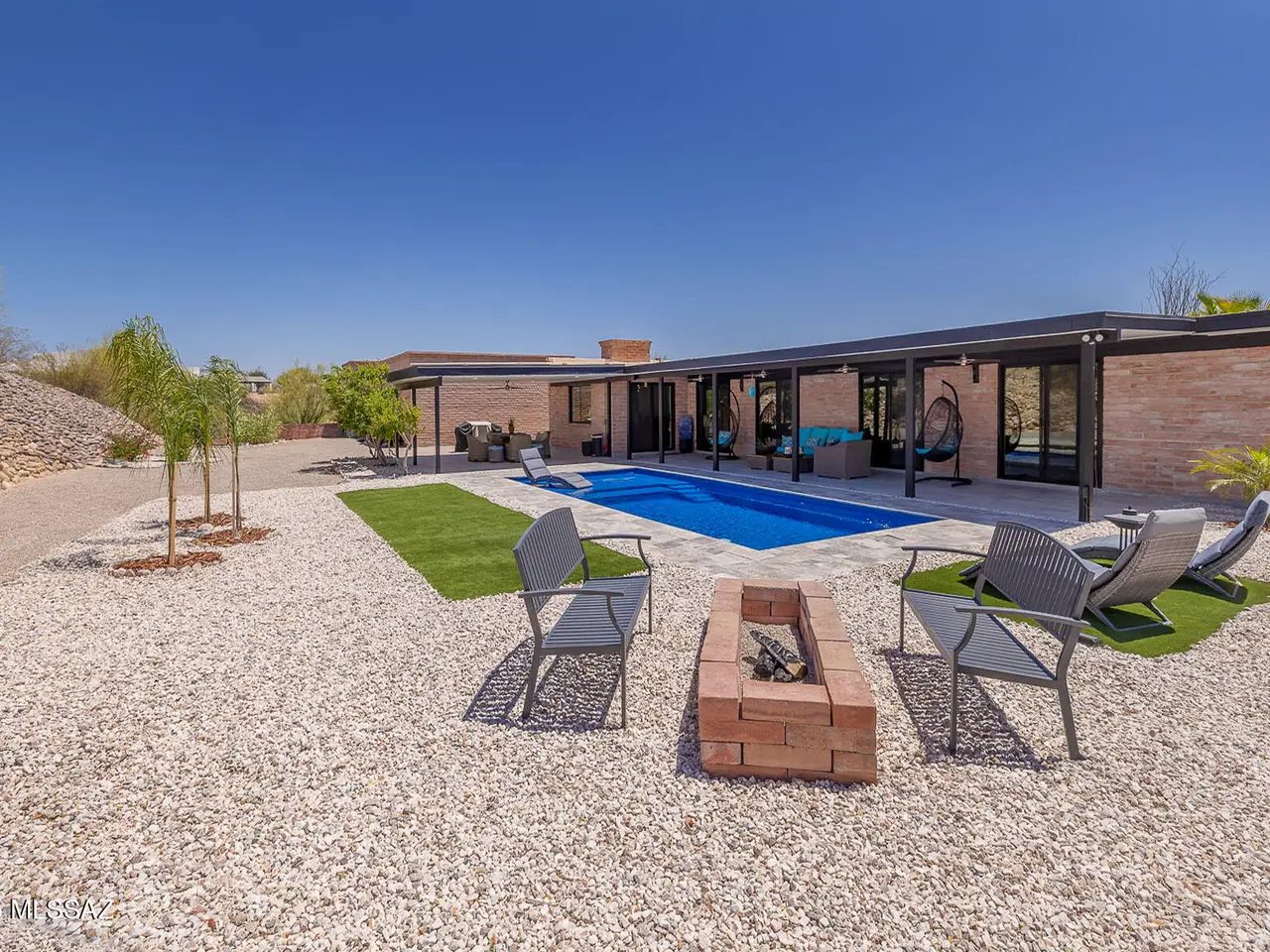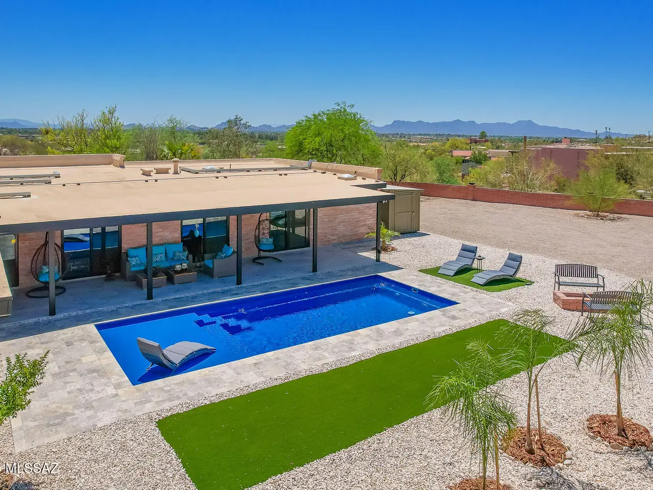 Welcome to your dream home (2, 765 main house & 891 sq ft detached casita) in the coveted Catalina Foothills, an exquisitely remodeled masterpiece nestled on a private gated 1.2-acre elevated lot with mountain and city lights views. The main residence boasts 2, 753 sq ft of luxurious living space, featuring 3 bedrooms, 3 beautifully appointed bathrooms and a versatile office/den with a private patio that can easily serve as an additional bedroom, home office, or creative studio. Enjoy the elegance of Brazilian porcelain tile throughout, Sile Stone countertops and all new energy-efficient windows and doors that flood the home with natural light. The unbelievable kitchen is a chef's paradise, outfitted with state-of-the-art appliances and seamlessly flows into generous great room with stylish dry bar-perfect for entertaining. The primary suite is a true retreat offering a spa-like bathroom with doorless walk-in shower and designer finishes. Two guest rooms share a sleek Jack and Jill bathroom, ensuring comfort and privacy for family and visitors. Step outside to your tranquil oasis- complete with an extended patio, heated pool, travertine pool deck and artificial turf to enjoy those outside games. The 896 sq ft detached casita is equally impressive, featuring 1 bedroom, 1 bath, and a beautiful Trex deck that wraps around half of the structure offering privacy, capturing views and versatility for guests, extended family, or rental potential. This unique property offers the perfect blend of modern luxury and natural beauty, all set against the breathtaking backdrop of the Catalina Foothills.