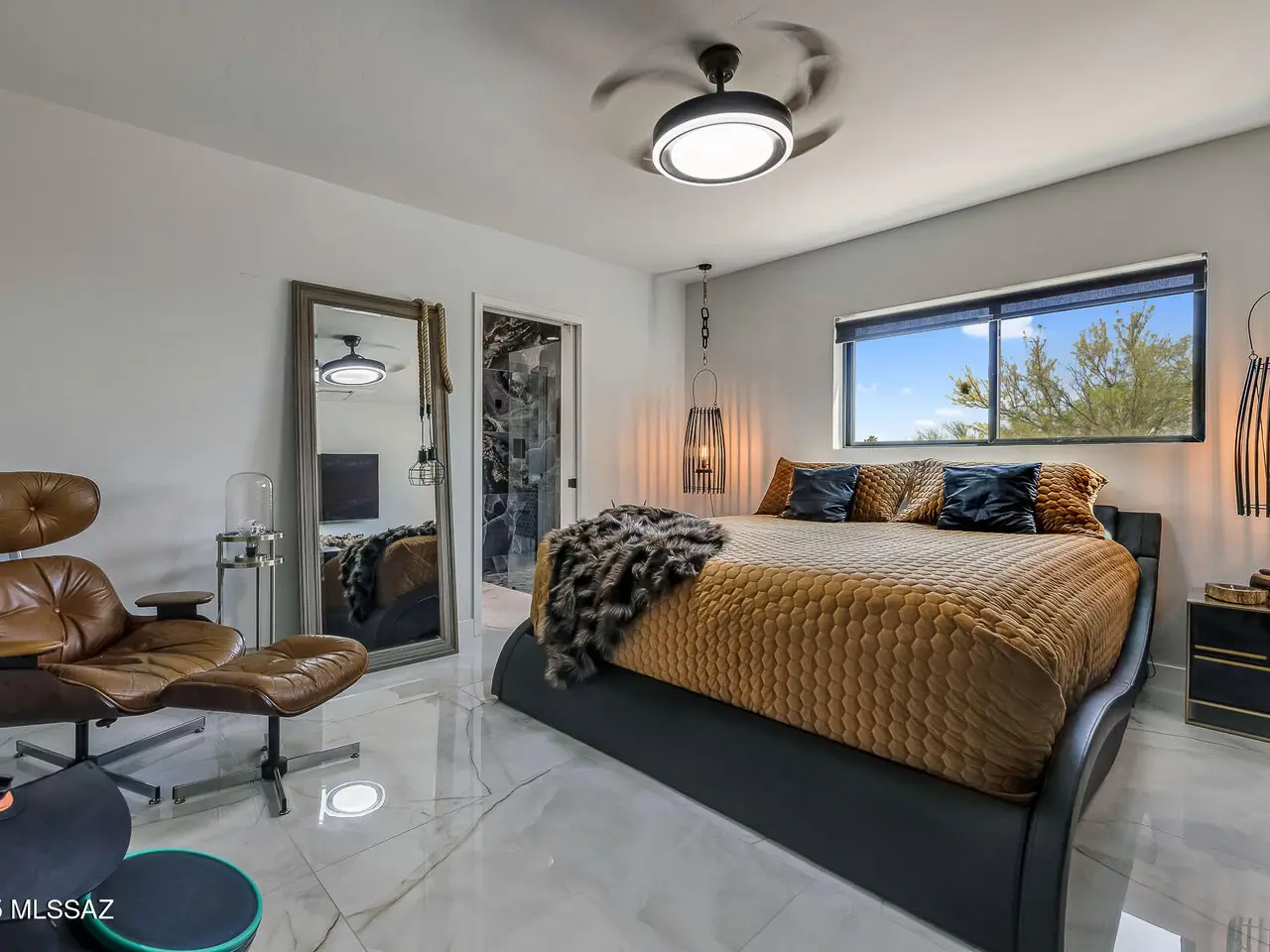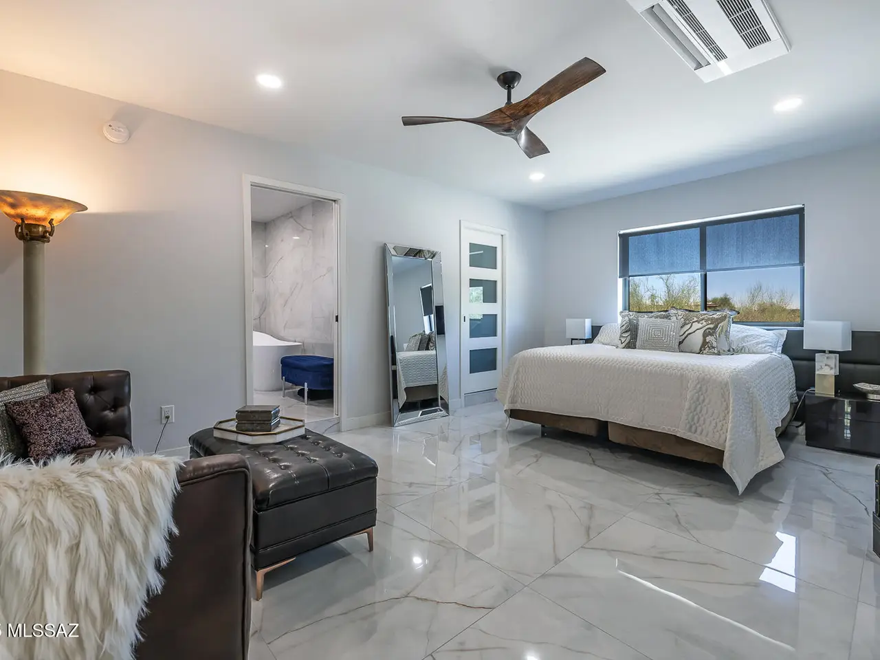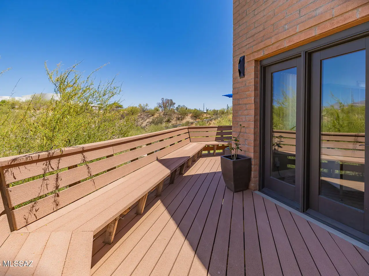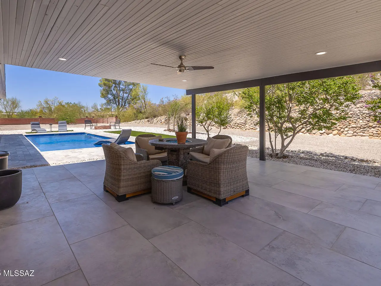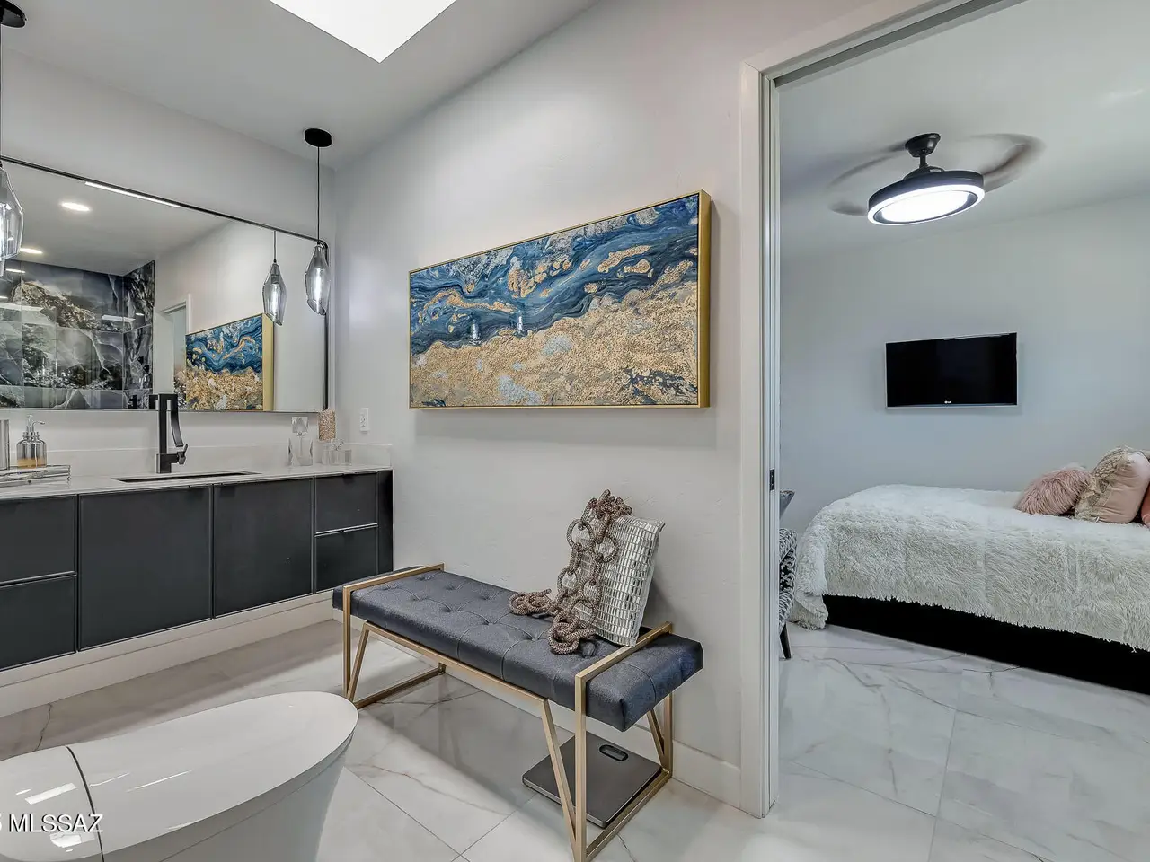 Welcome to your dream home (2, 765 main house & 891 sq ft detached casita) in the coveted Catalina Foothills, an exquisitely remodeled masterpiece nestled on a private gated 1.2-acre elevated lot with mountain and city lights views. The main residence boasts 2, 753 sq ft of luxurious living space, featuring 3 bedrooms, 3 beautifully appointed bathrooms and a versatile office/den with a private patio that can easily serve as an additional bedroom, home office, or creative studio. Enjoy the elegance of Brazilian porcelain tile throughout, Sile Stone countertops and all new energy-efficient windows and doors that flood the home with natural light. The unbelievable kitchen is a chef's paradise, outfitted with state-of-the-art appliances and seamlessly flows into generous great room with stylish dry bar-perfect for entertaining. The primary suite is a true retreat offering a spa-like bathroom with doorless walk-in shower and designer finishes. Two guest rooms share a sleek Jack and Jill bathroom, ensuring comfort and privacy for family and visitors. Step outside to your tranquil oasis- complete with an extended patio, heated pool, travertine pool deck and artificial turf to enjoy those outside games. The 896 sq ft detached casita is equally impressive, featuring 1 bedroom, 1 bath, and a beautiful Trex deck that wraps around half of the structure offering privacy, capturing views and versatility for guests, extended family, or rental potential. This unique property offers the perfect blend of modern luxury and natural beauty, all set against the breathtaking backdrop of the Catalina Foothills.