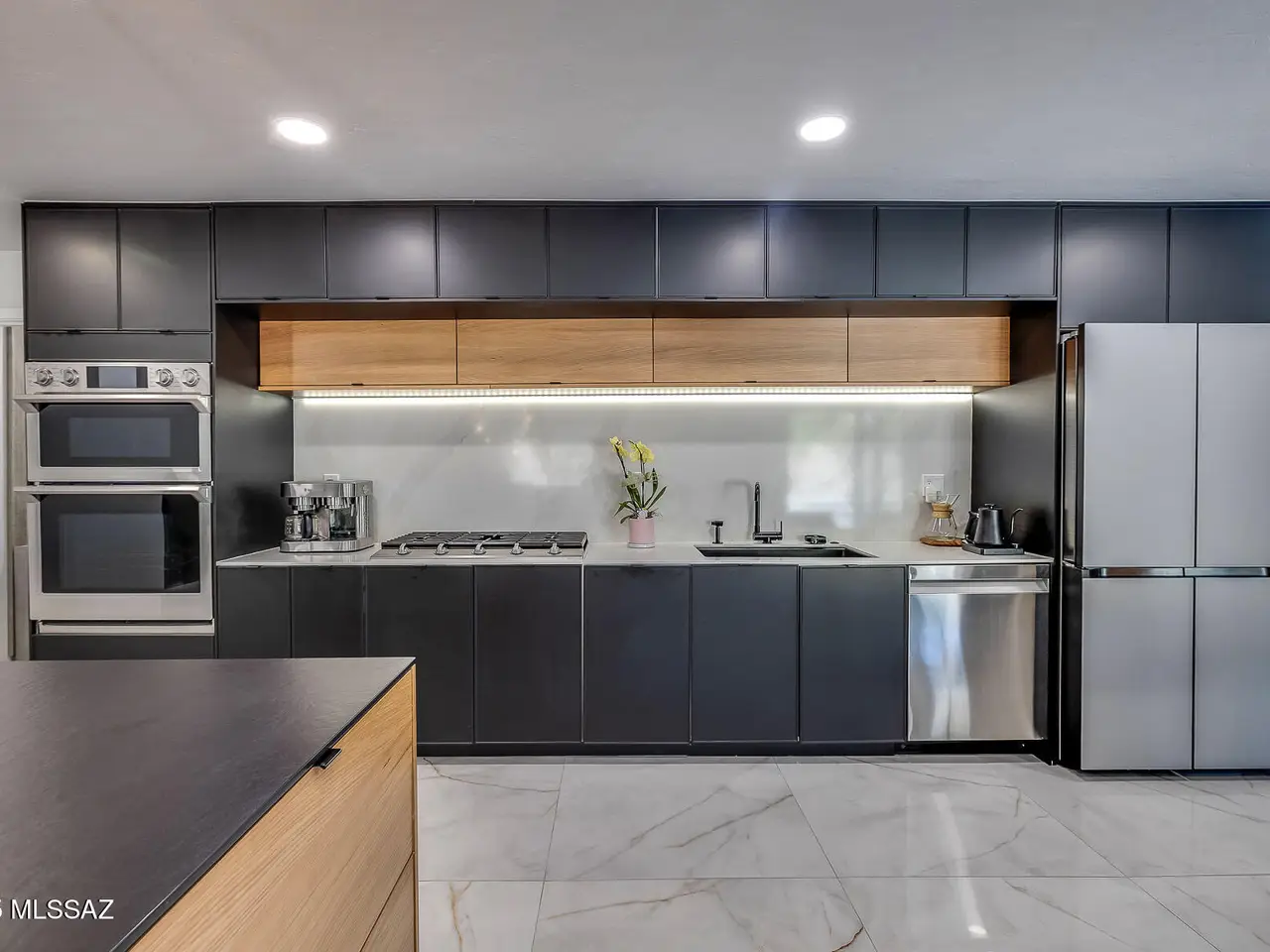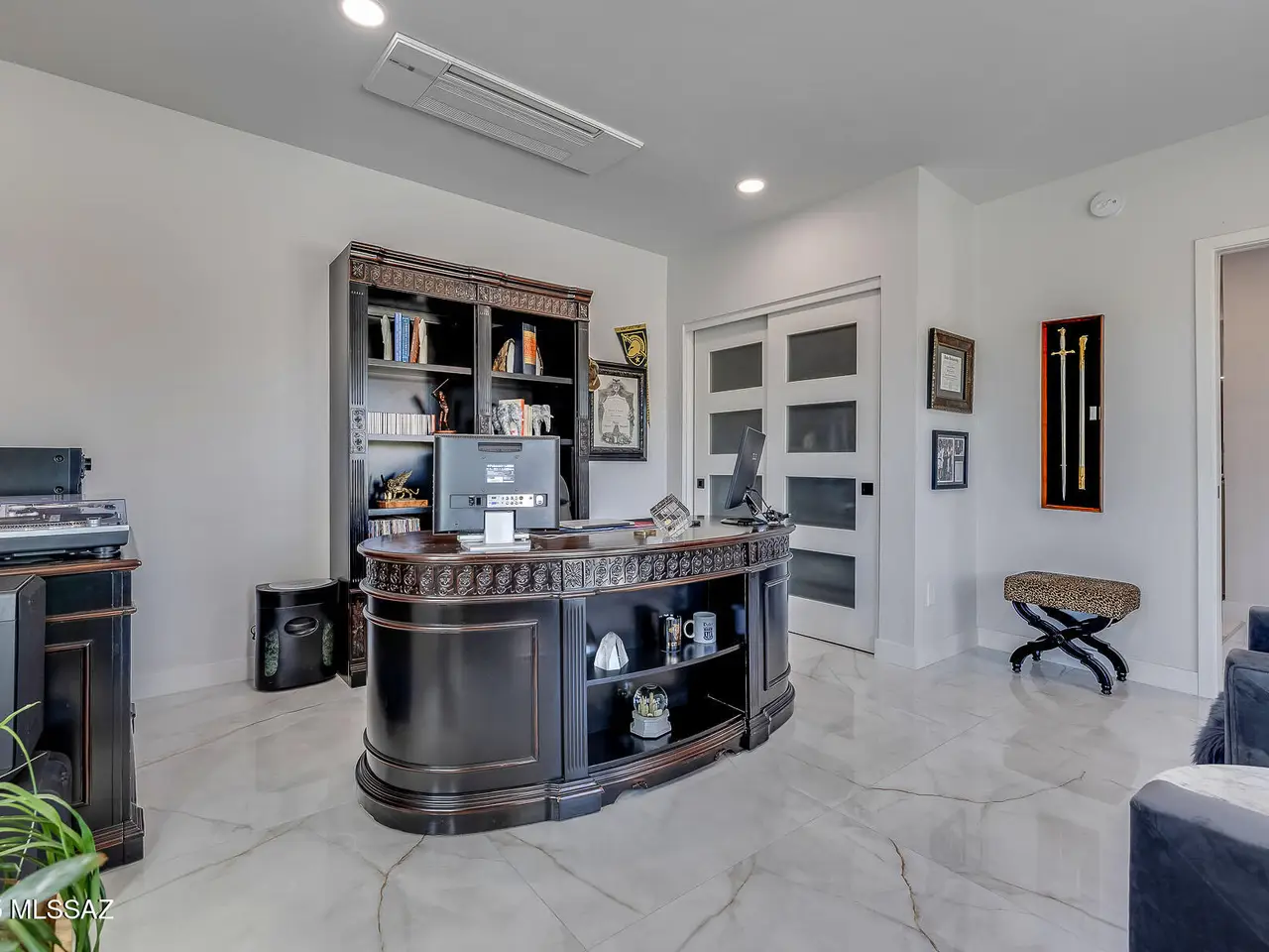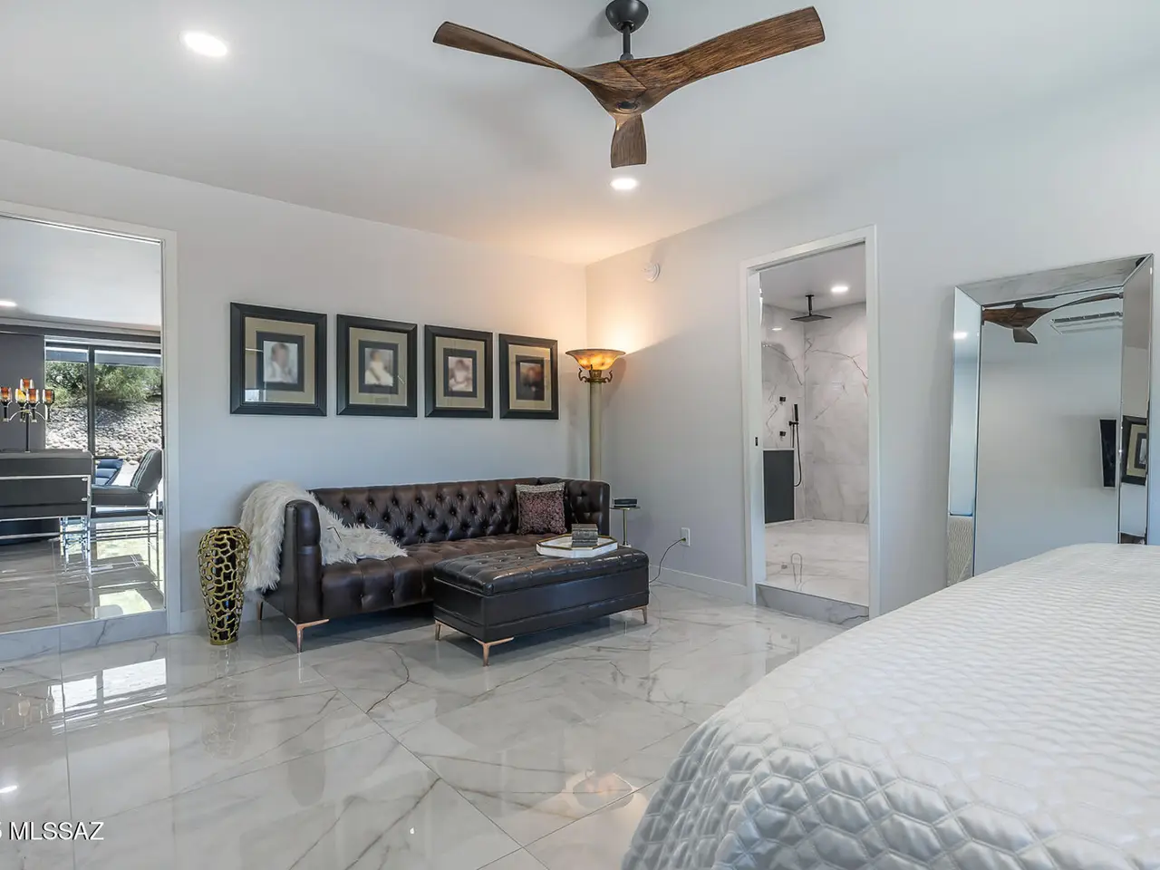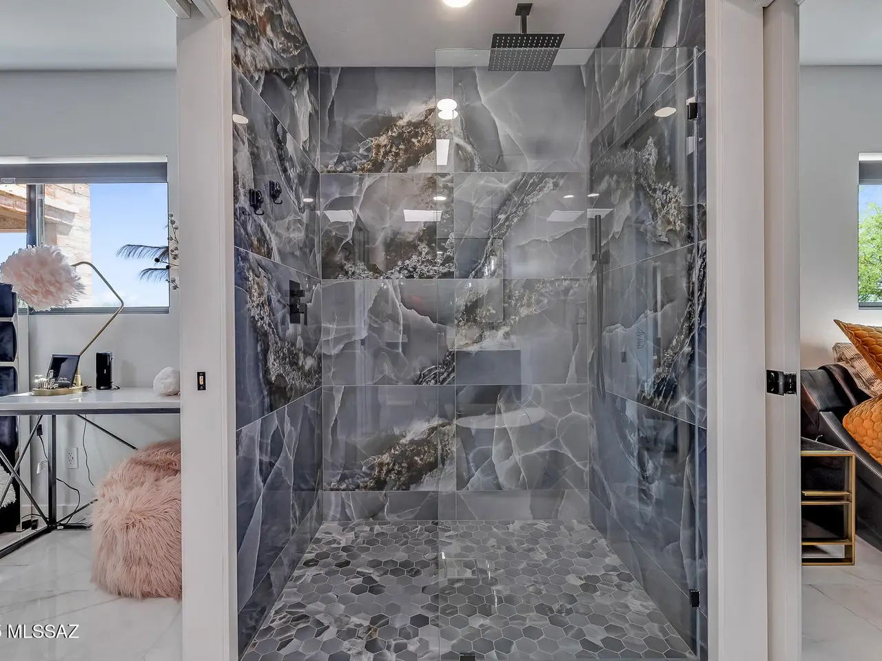 Welcome to your dream home (2, 765 main house & 891 sq ft detached casita) in the coveted Catalina Foothills, an exquisitely remodeled masterpiece nestled on a private gated 1.2-acre elevated lot with mountain and city lights views. The main residence boasts 2, 753 sq ft of luxurious living space, featuring 3 bedrooms, 3 beautifully appointed bathrooms and a versatile office/den with a private patio that can easily serve as an additional bedroom, home office, or creative studio. Enjoy the elegance of Brazilian porcelain tile throughout, Sile Stone countertops and all new energy-efficient windows and doors that flood the home with natural light. The unbelievable kitchen is a chef's paradise, outfitted with state-of-the-art appliances and seamlessly flows into generous great room with stylish dry bar-perfect for entertaining. The primary suite is a true retreat offering a spa-like bathroom with doorless walk-in shower and designer finishes. Two guest rooms share a sleek Jack and Jill bathroom, ensuring comfort and privacy for family and visitors. Step outside to your tranquil oasis- complete with an extended patio, heated pool, travertine pool deck and artificial turf to enjoy those outside games. The 896 sq ft detached casita is equally impressive, featuring 1 bedroom, 1 bath, and a beautiful Trex deck that wraps around half of the structure offering privacy, capturing views and versatility for guests, extended family, or rental potential. This unique property offers the perfect blend of modern luxury and natural beauty, all set against the breathtaking backdrop of the Catalina Foothills.