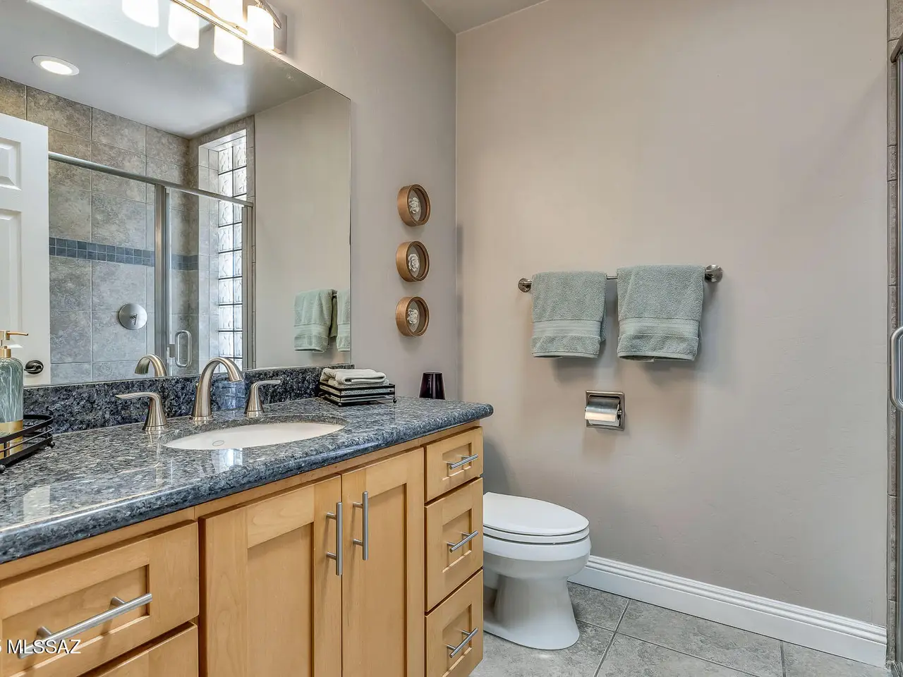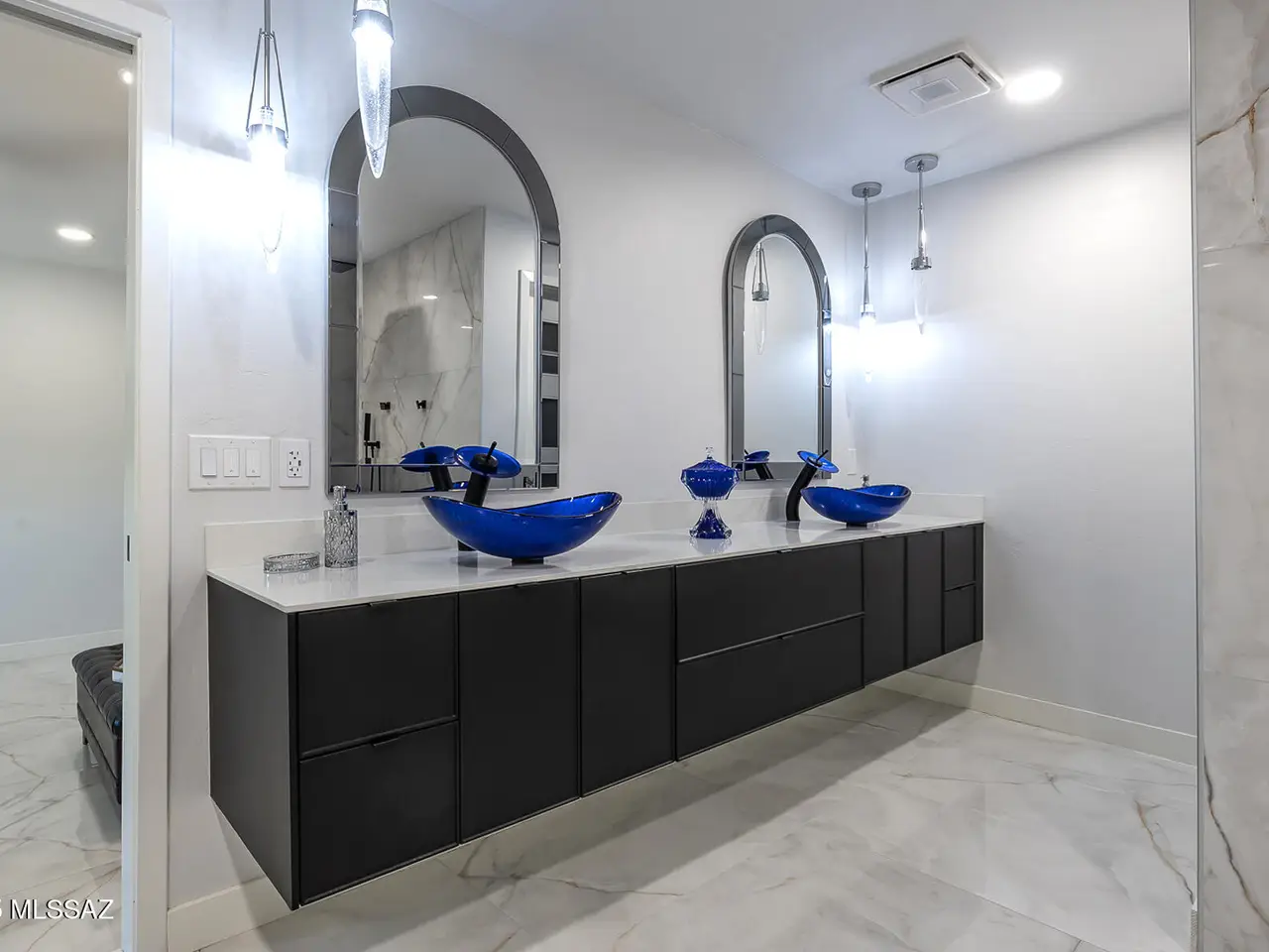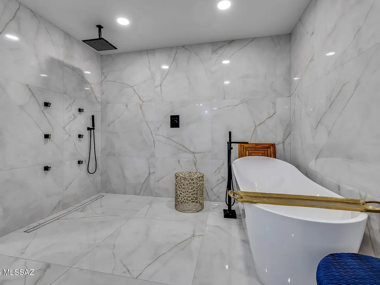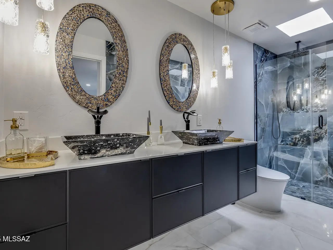 Welcome to your dream home (2, 765 main house & 891 sq ft detached casita) in the coveted Catalina Foothills, an exquisitely remodeled masterpiece nestled on a private gated 1.2-acre elevated lot with mountain and city lights views. The main residence boasts 2, 753 sq ft of luxurious living space, featuring 3 bedrooms, 3 beautifully appointed bathrooms and a versatile office/den with a private patio that can easily serve as an additional bedroom, home office, or creative studio. Enjoy the elegance of Brazilian porcelain tile throughout, Sile Stone countertops and all new energy-efficient windows and doors that flood the home with natural light. The unbelievable kitchen is a chef's paradise, outfitted with state-of-the-art appliances and seamlessly flows into generous great room with stylish dry bar-perfect for entertaining. The primary suite is a true retreat offering a spa-like bathroom with doorless walk-in shower and designer finishes. Two guest rooms share a sleek Jack and Jill bathroom, ensuring comfort and privacy for family and visitors. Step outside to your tranquil oasis- complete with an extended patio, heated pool, travertine pool deck and artificial turf to enjoy those outside games. The 896 sq ft detached casita is equally impressive, featuring 1 bedroom, 1 bath, and a beautiful Trex deck that wraps around half of the structure offering privacy, capturing views and versatility for guests, extended family, or rental potential. This unique property offers the perfect blend of modern luxury and natural beauty, all set against the breathtaking backdrop of the Catalina Foothills.