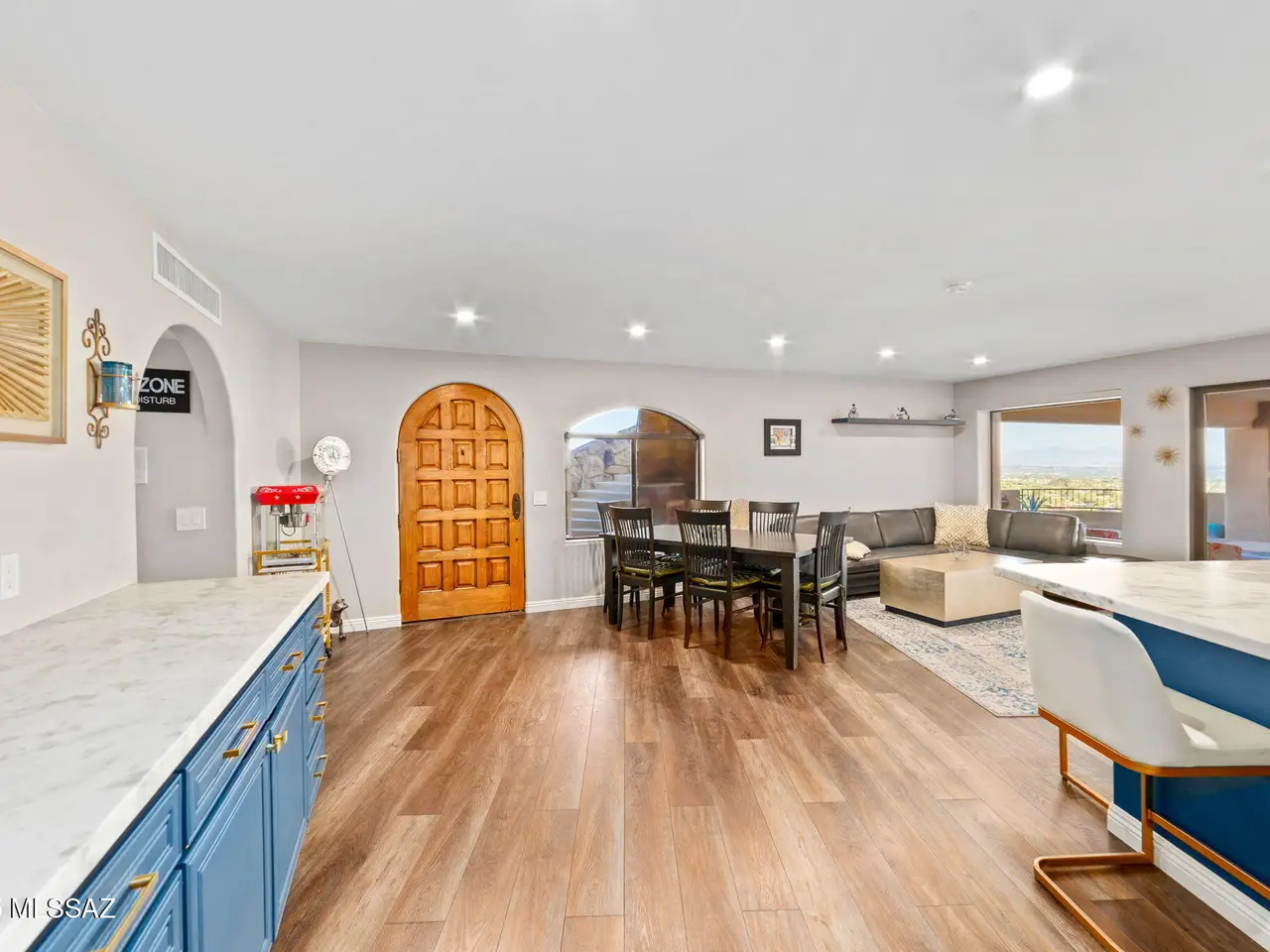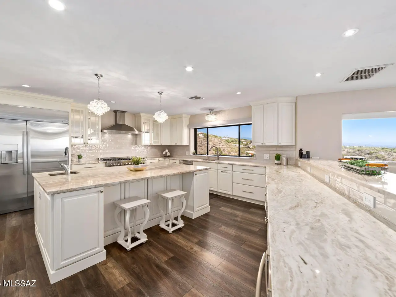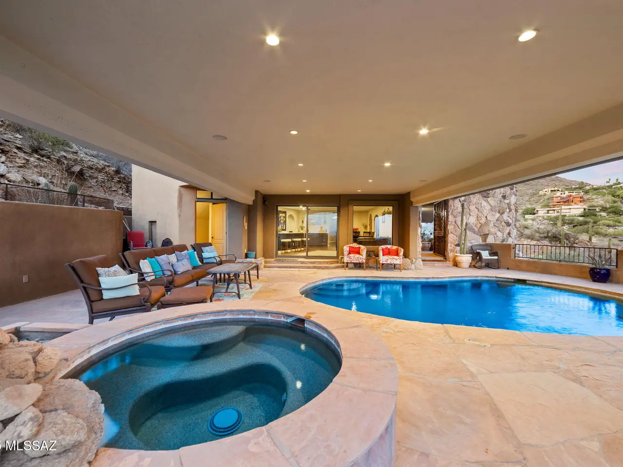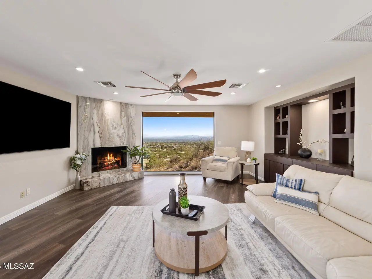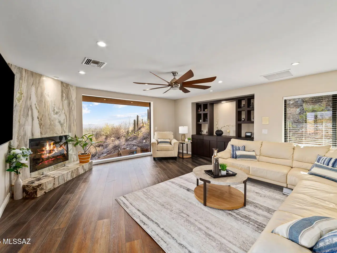 From the moment you arrive, this signature residence makes a lasting impression! A paver-lined driveway welcomes you into a fully remodeled, estate-grade home that perfectly balances refinement with relaxed desert living. Set against the backdrop of panoramic city lights and sweeping mountain ranges, this is not just a home -- it's a vantage point on life! With some of the most commanding views in all of Southern Arizona, this rare offering delivers sophistication, serenity, and soul at every turn. Inside, the home has been lovingly refreshed from top to bottom with a bold, contemporary spirit. Designer fixtures, artful materials, and thoughtful finishes unite to create a space that feels both polished and personal.