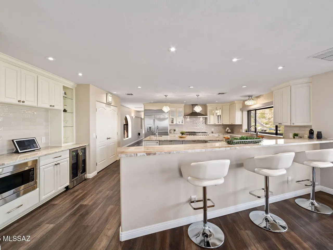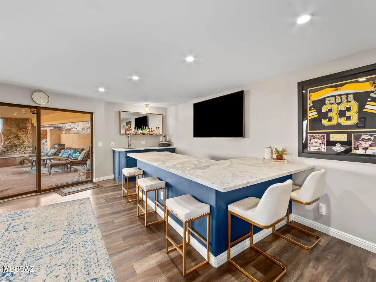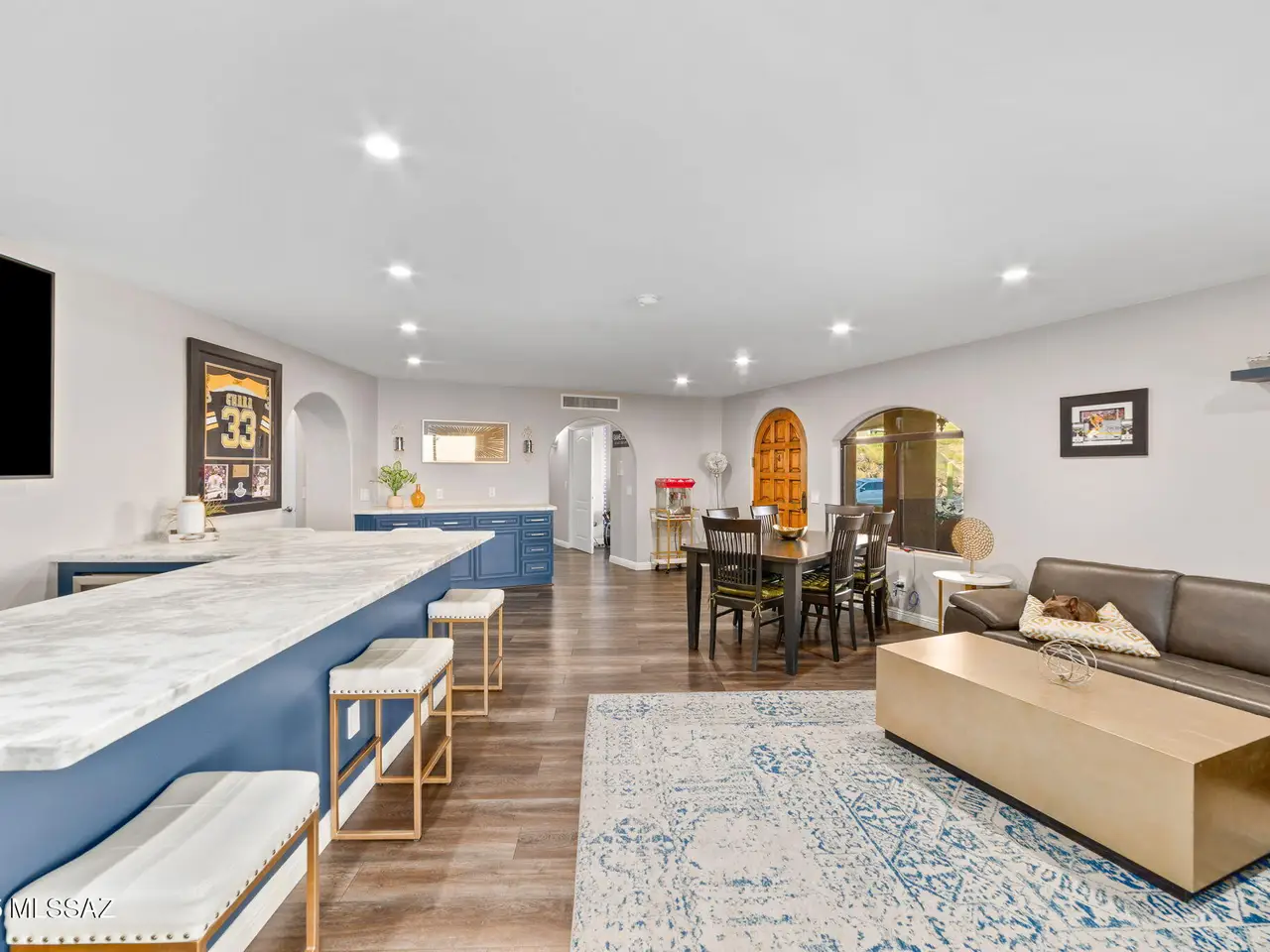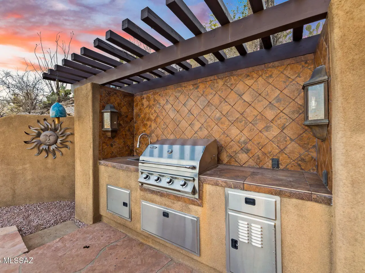 From the moment you arrive, this signature residence makes a lasting impression! A paver-lined driveway welcomes you into a fully remodeled, estate-grade home that perfectly balances refinement with relaxed desert living. Set against the backdrop of panoramic city lights and sweeping mountain ranges, this is not just a home -- it's a vantage point on life! With some of the most commanding views in all of Southern Arizona, this rare offering delivers sophistication, serenity, and soul at every turn. Inside, the home has been lovingly refreshed from top to bottom with a bold, contemporary spirit. Designer fixtures, artful materials, and thoughtful finishes unite to create a space that feels both polished and personal.