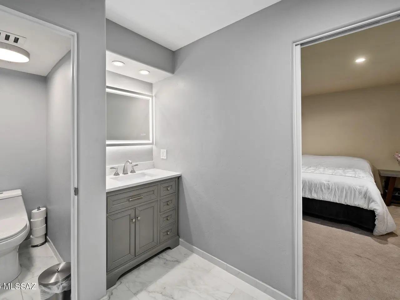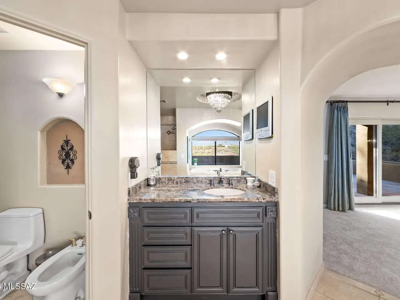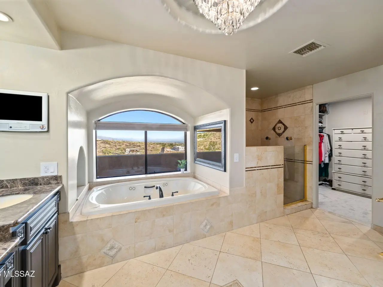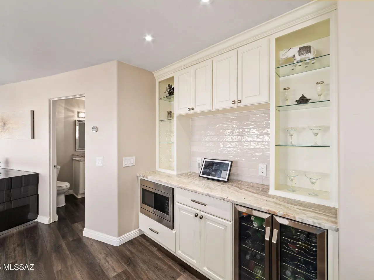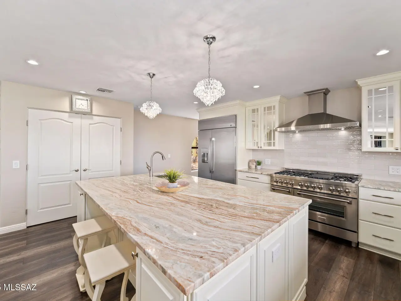 From the moment you arrive, this signature residence makes a lasting impression! A paver-lined driveway welcomes you into a fully remodeled, estate-grade home that perfectly balances refinement with relaxed desert living. Set against the backdrop of panoramic city lights and sweeping mountain ranges, this is not just a home -- it's a vantage point on life! With some of the most commanding views in all of Southern Arizona, this rare offering delivers sophistication, serenity, and soul at every turn. Inside, the home has been lovingly refreshed from top to bottom with a bold, contemporary spirit. Designer fixtures, artful materials, and thoughtful finishes unite to create a space that feels both polished and personal.