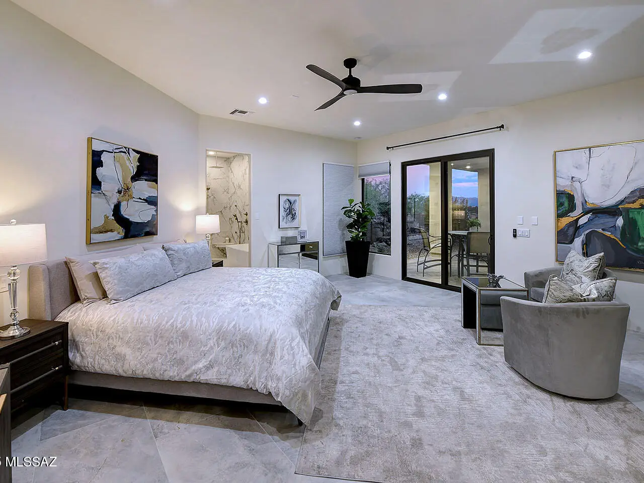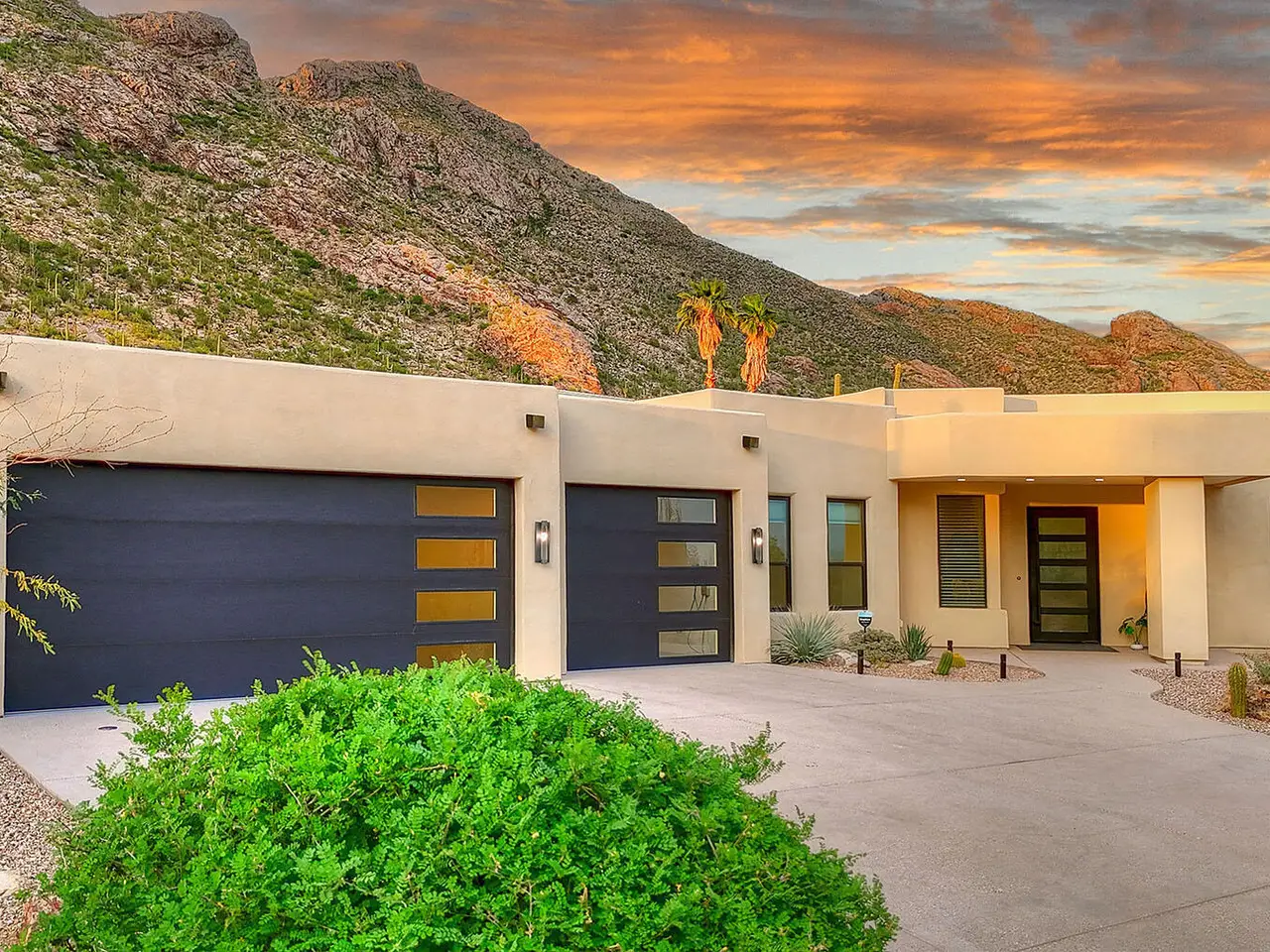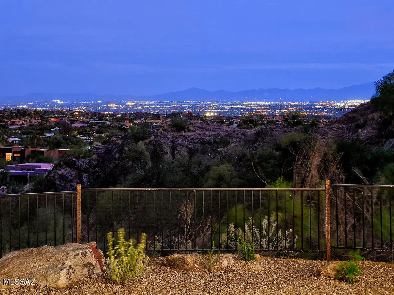 Stunning, like-new 2023 contemporary perched on La Paloma Drive, the highest street in the coveted Coronado Foothills Estates of Tucson's Catalina Foothills. Set on a glorious one-acre lot embraced by the Catalina Mountains and Coronado National Forest, this 3, 605 sq. ft. residence offers 4 bedrooms, 4.5 baths, and a 3-car garage--designed to showcase sweeping city lights, mountain vistas, and dramatic sunrise and sunset views from every room. Built by renowned master builder Paul Rondelli, the home welcomes you into a striking great room with soaring ceilings, walls of glass, porcelain tile flooring, a sleek fireplace, and an open dining area--perfect for entertaining. The chef's kitchen is both functional and modern, featuring stainless steel appliances, a spacious center island with a breakfast bar, abundant counter space, and a walk-in pantry. The luxurious primary suite is a private retreat with a fireplace, direct access to the covered patio, and a spa-inspired bathroom boasting quartz finishes, a walk-in glass shower, a soaking tub, and a generous walk-in closet with custom built-ins. Each bedroom has an en-suite bath and a walk-in closet. Additional highlights include a large laundry room with a sink, and a light-filled garage with windows and epoxy coated floors. Located within the Catalina Foothills School District #16, this home offers the perfect blend of contemporary style, move-in-ready convenience, and unrivaled views, all just minutes from shopping, dining, and city amenities, yet peacefully above the bustle of daily life.