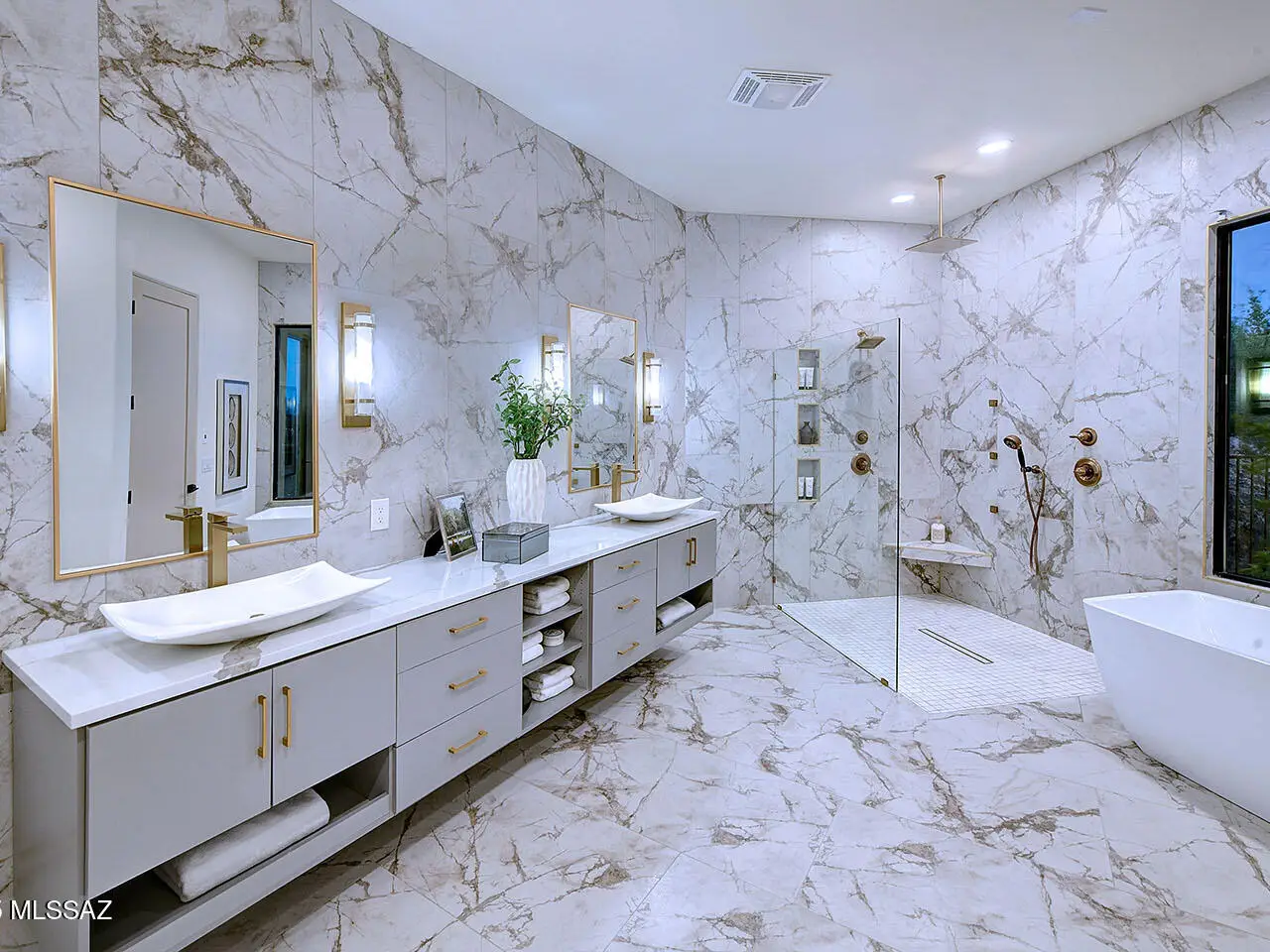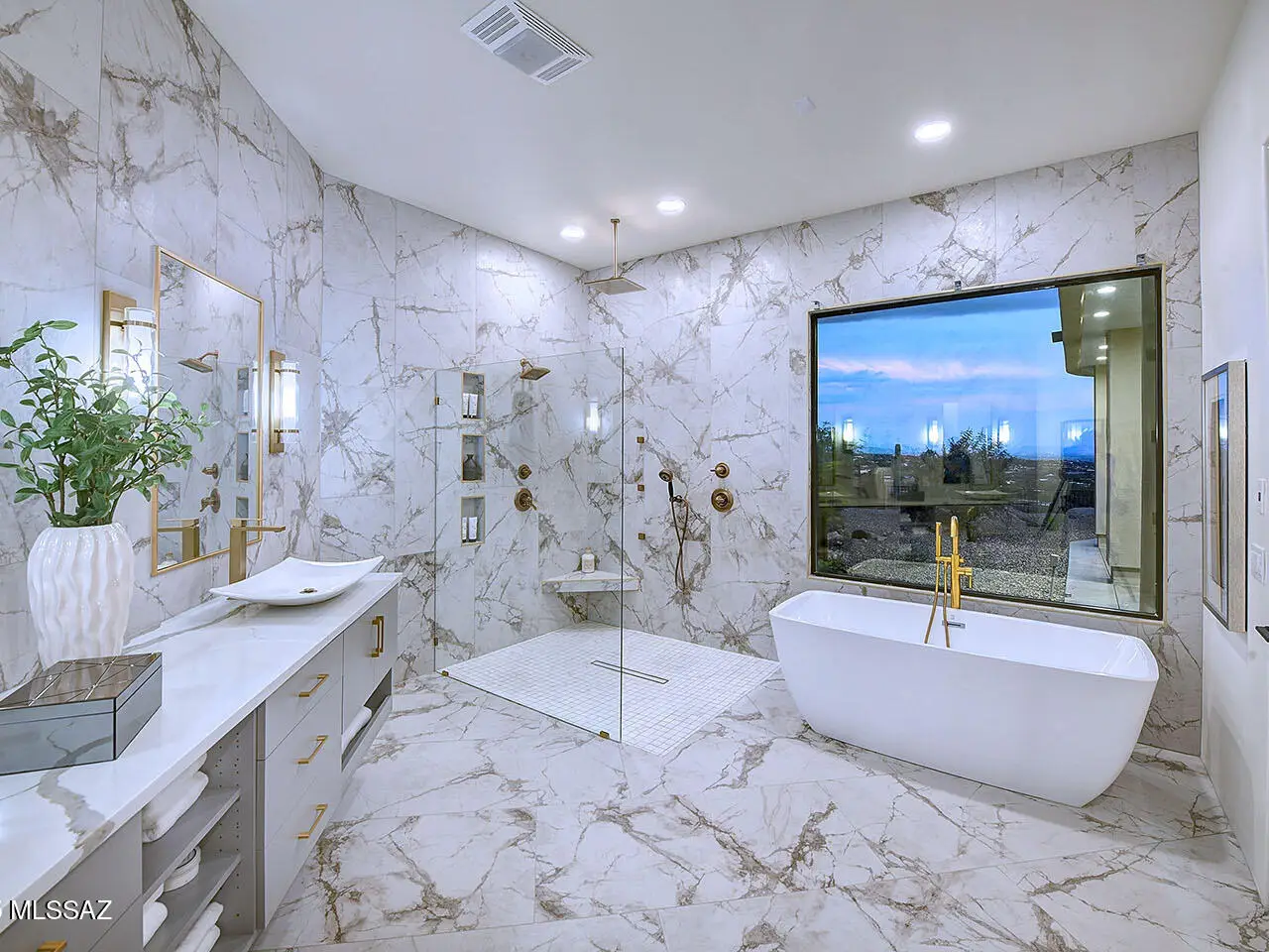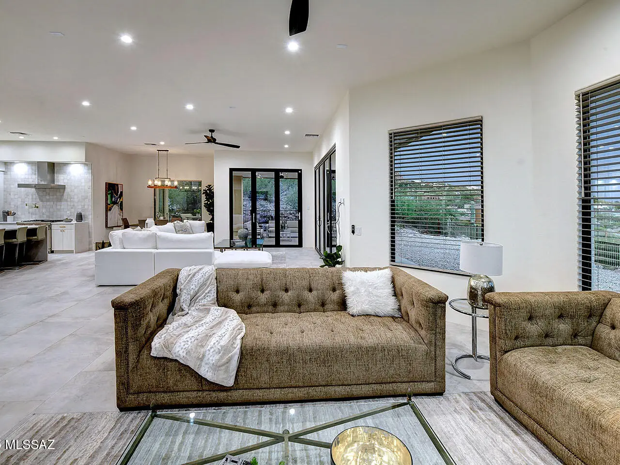 Stunning, like-new 2023 contemporary perched on La Paloma Drive, the highest street in the coveted Coronado Foothills Estates of Tucson's Catalina Foothills. Set on a glorious one-acre lot embraced by the Catalina Mountains and Coronado National Forest, this 3, 605 sq. ft. residence offers 4 bedrooms, 4.5 baths, and a 3-car garage--designed to showcase sweeping city lights, mountain vistas, and dramatic sunrise and sunset views from every room. Built by renowned master builder Paul Rondelli, the home welcomes you into a striking great room with soaring ceilings, walls of glass, porcelain tile flooring, a sleek fireplace, and an open dining area--perfect for entertaining. The chef's kitchen is both functional and modern, featuring stainless steel appliances, a spacious center island with a breakfast bar, abundant counter space, and a walk-in pantry. The luxurious primary suite is a private retreat with a fireplace, direct access to the covered patio, and a spa-inspired bathroom boasting quartz finishes, a walk-in glass shower, a soaking tub, and a generous walk-in closet with custom built-ins. Each bedroom has an en-suite bath and a walk-in closet. Additional highlights include a large laundry room with a sink, and a light-filled garage with windows and epoxy coated floors. Located within the Catalina Foothills School District #16, this home offers the perfect blend of contemporary style, move-in-ready convenience, and unrivaled views, all just minutes from shopping, dining, and city amenities, yet peacefully above the bustle of daily life.