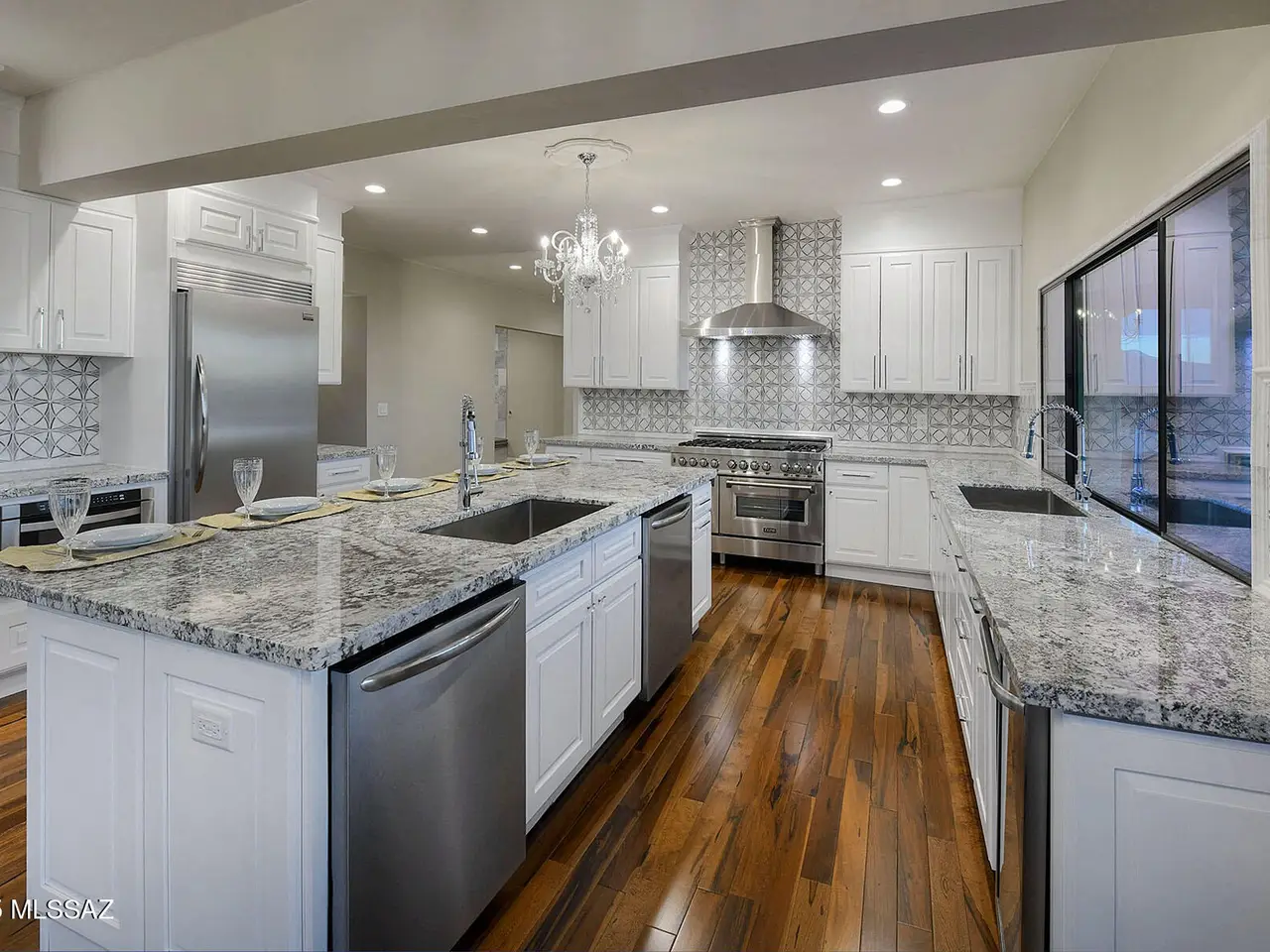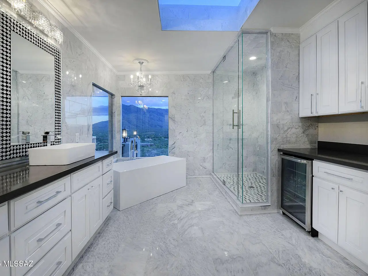 Panoramic views of mtn, city & Tanque Verde valley beckon through walls of windows adorning this luxurious home beautifully set on 7.22 hillside acres in the heart of La Cebadilla Estates. Gleaming pecan wood floors, etched marble FP, fabulous kitchen with 48-inch dual fuel range, double ovens, 2 DW, separate column refrigerator/freezer, oversized island w/bar seating, solid wood cabinets & casual dining w/jaw-dropping views. Full remodel also included luxe baths throughout; split plan offers romantic owner's suite w/FP, city lights & ''wow'' spa-like bath w/soaking tub & pool access; the lower level is great entertaining or kid hang-out space w/exercise rm, wet bar, potential media room. All new exterior decking in front & bath for 2053 covered outdoor living enjoyment.