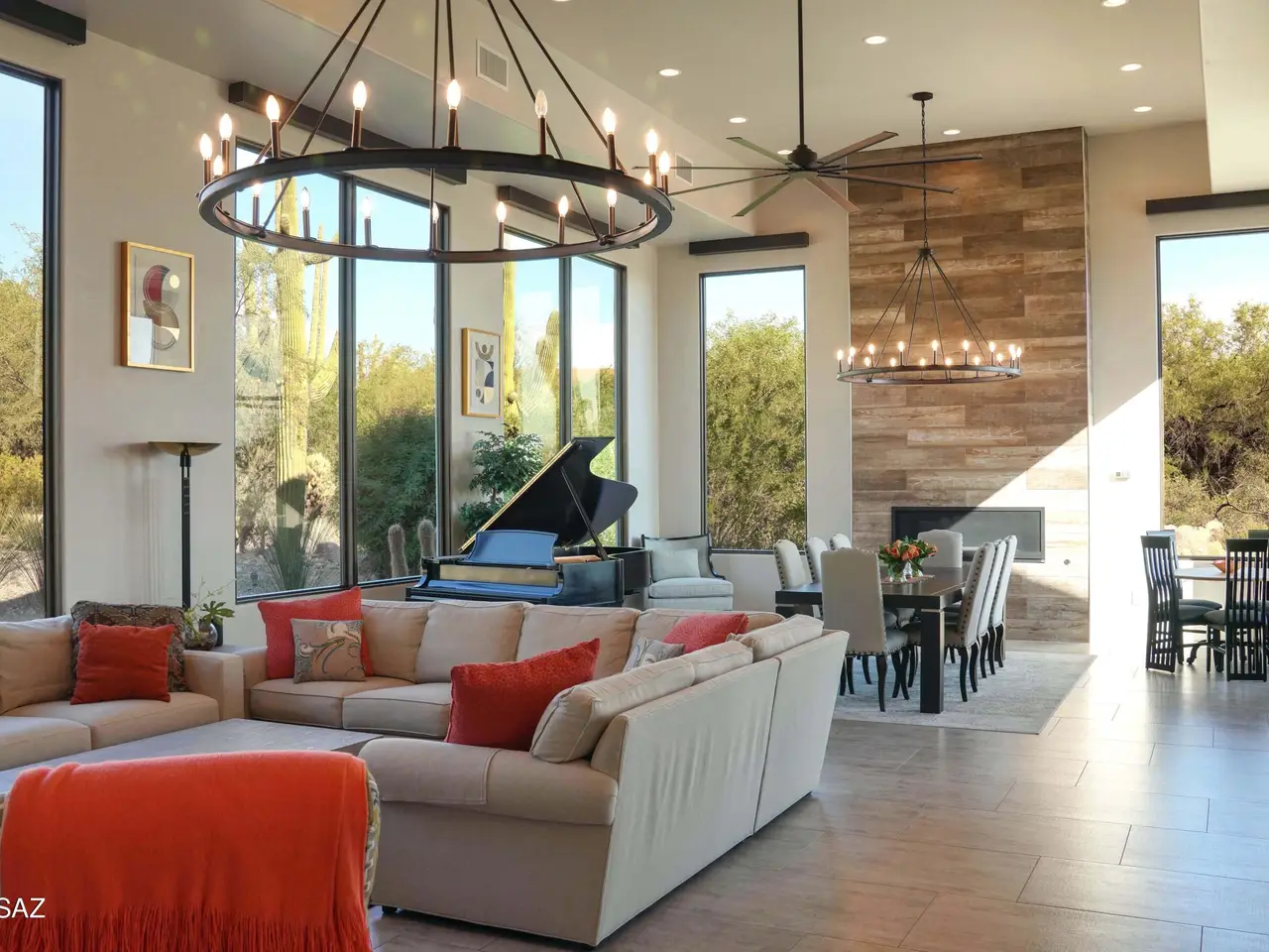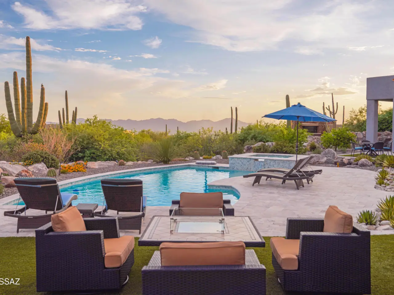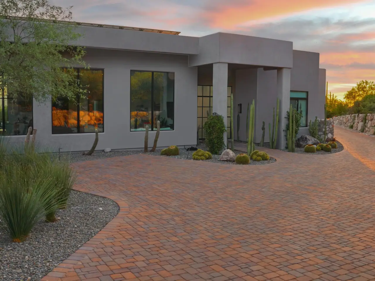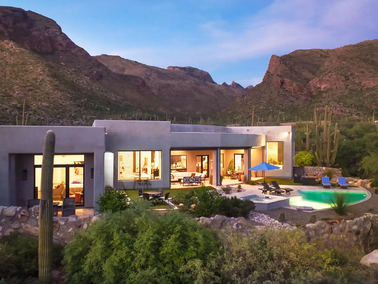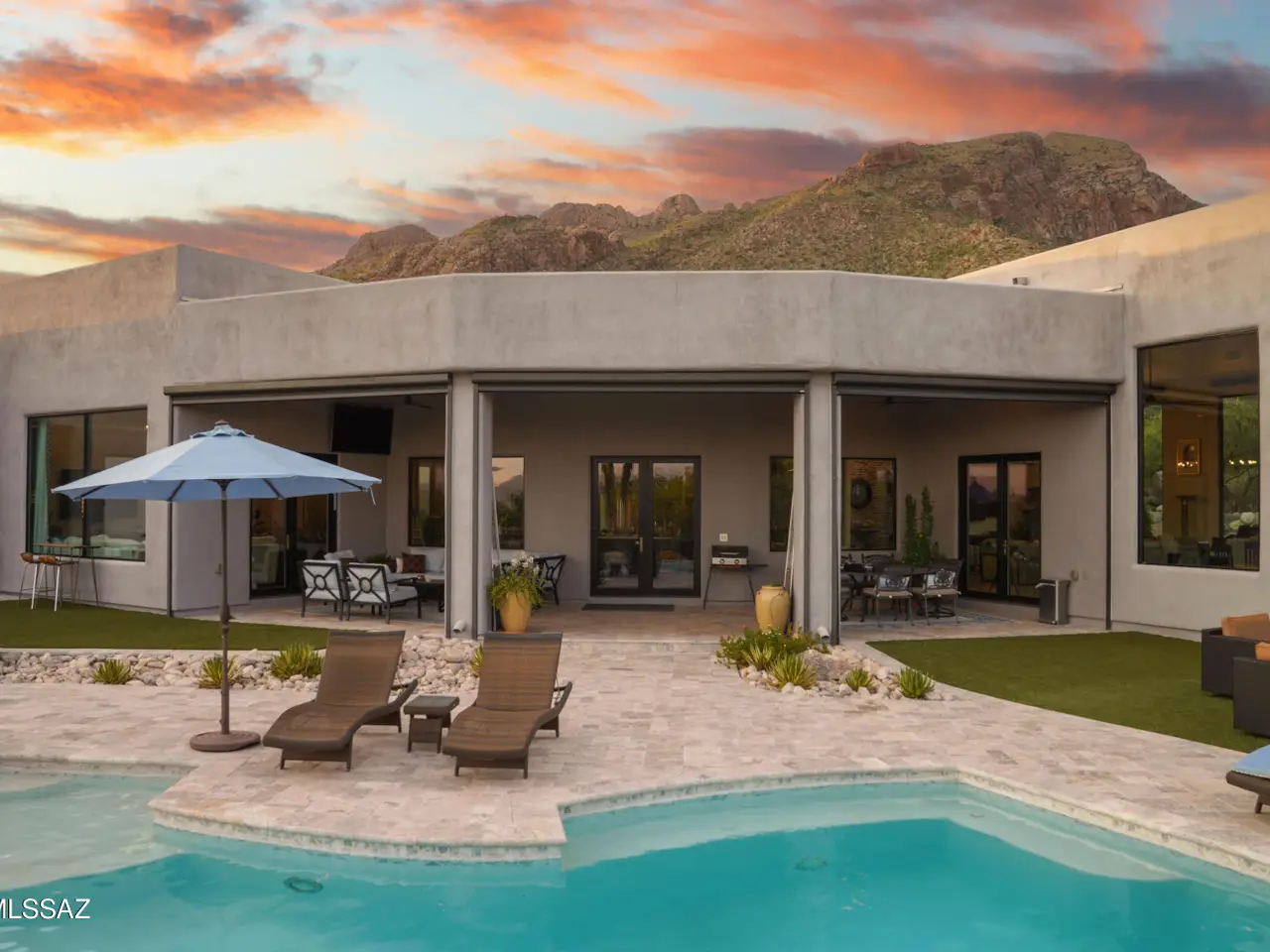 Modern Elegance Meets Desert Serenity in Prestigious Pima Canyon! Nestled on 1.2 private acres, this 5,805-sqft custom residence masterfully blends sleek modern architecture with timeless desert sophistication. Designed by renowned architect Kevin Howard, the home showcases impeccable craftsmanship, breathtaking views, and an effortless indoor-outdoor lifestyle. From the moment you step through the custom Victory Metal Works iron and glass entry door, you're greeted with soaring style and substance--five spacious ensuite bedrooms, energy-efficient design, a 2021-owned solar photovoltaic system, and three high-efficiency Trane HVAC systems (14-16+ SEER). The resort-style backyard is an entertainer's dream, featuring a sparkling pool and spa, travertine