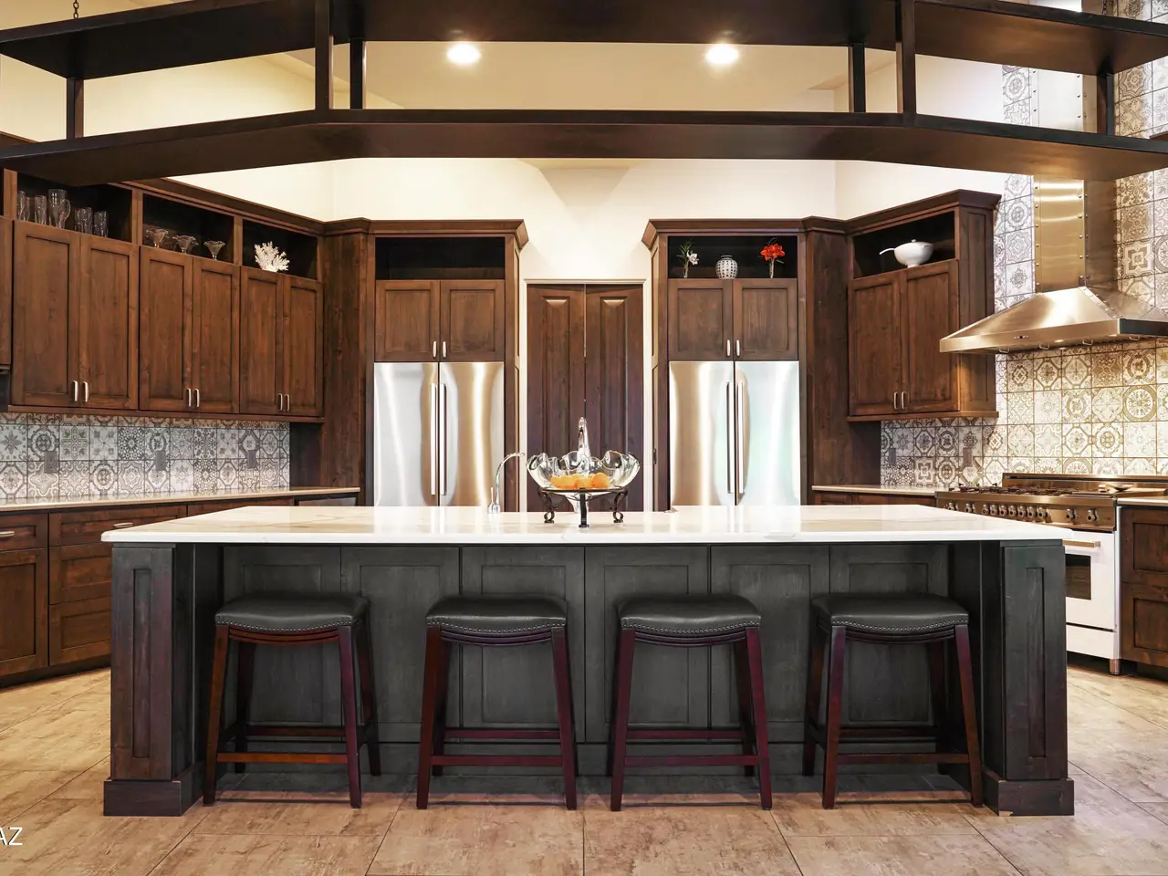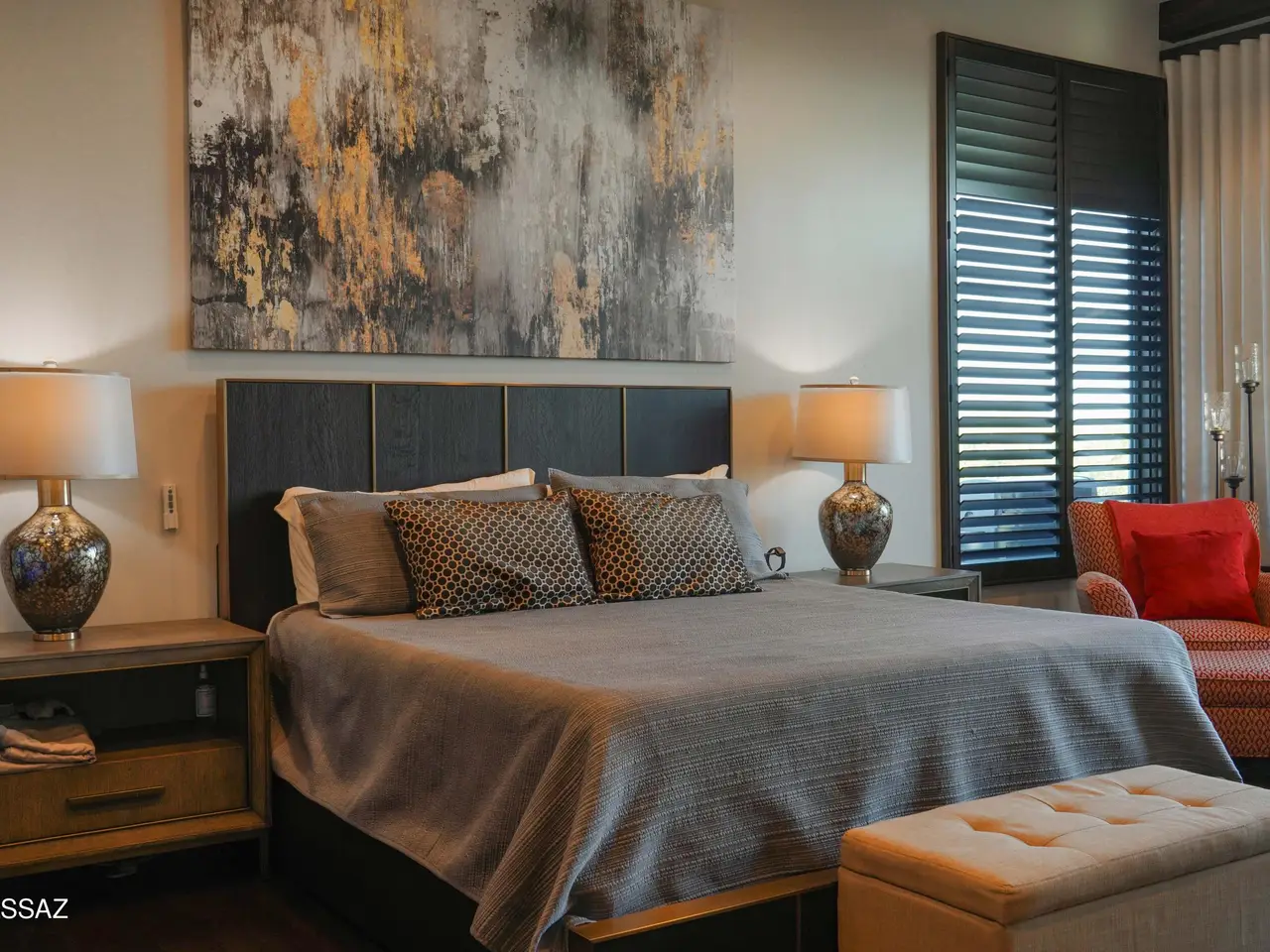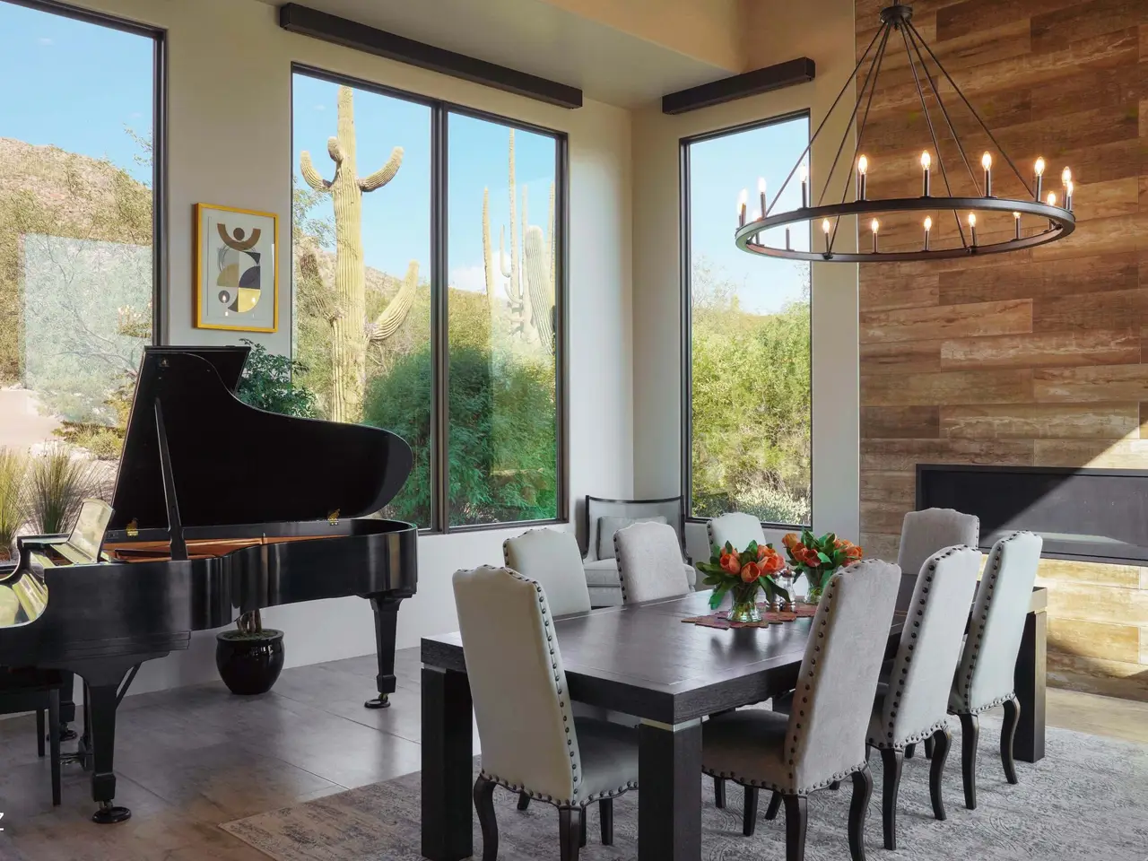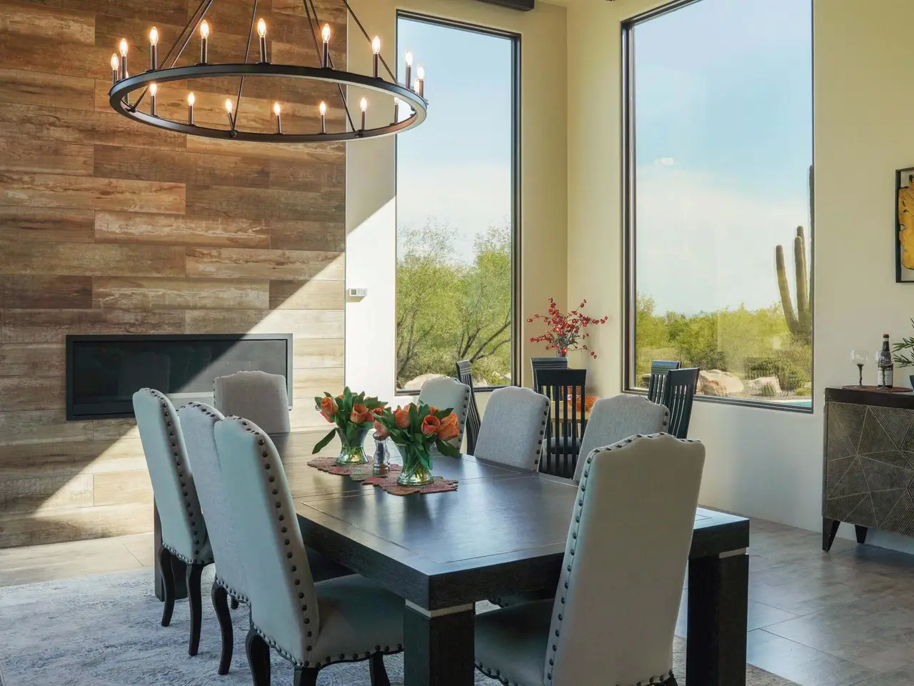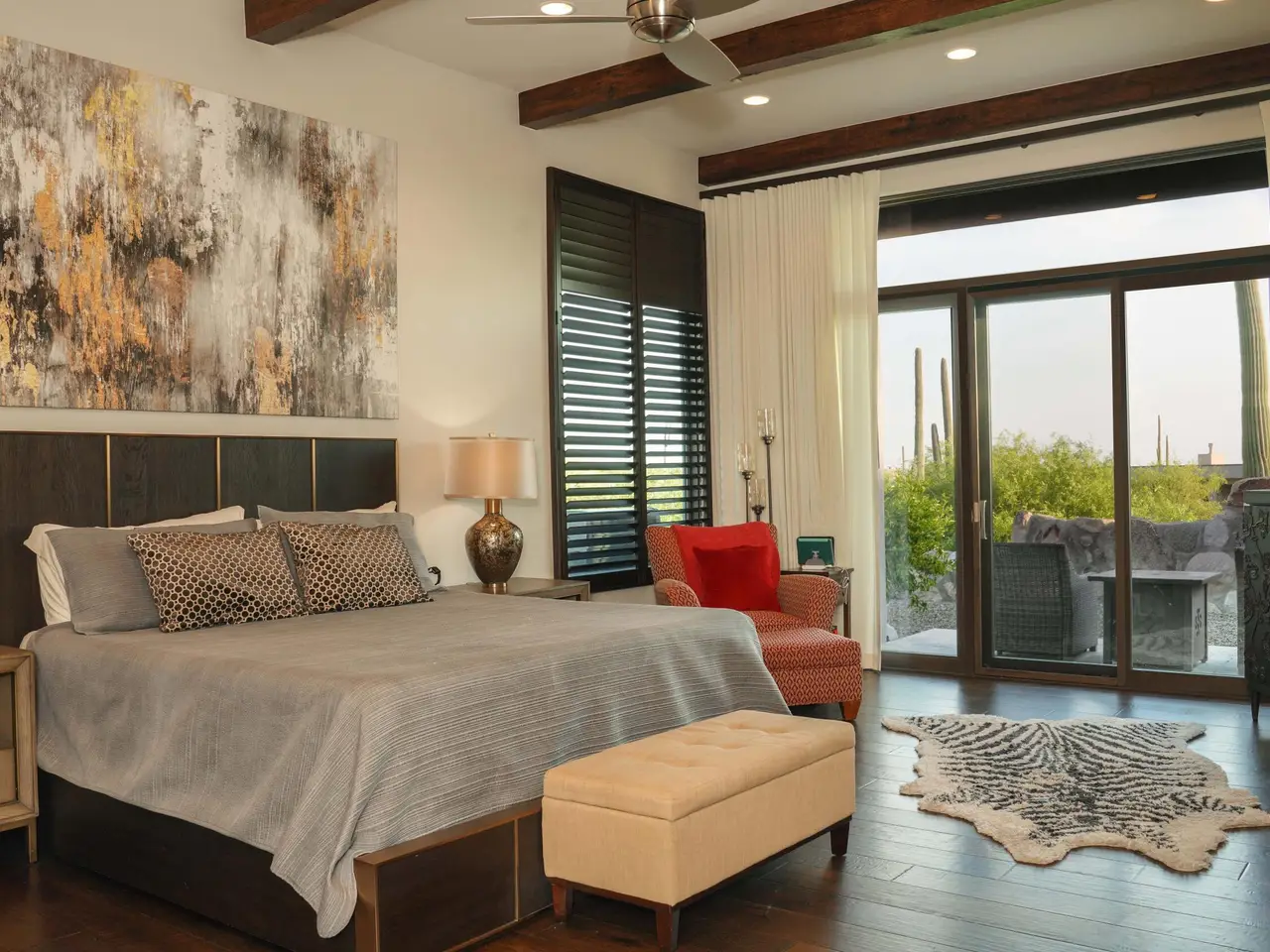 Modern Elegance Meets Desert Serenity in Prestigious Pima Canyon! Nestled on 1.2 private acres, this 5,805-sqft custom residence masterfully blends sleek modern architecture with timeless desert sophistication. Designed by renowned architect Kevin Howard, the home showcases impeccable craftsmanship, breathtaking views, and an effortless indoor-outdoor lifestyle. From the moment you step through the custom Victory Metal Works iron and glass entry door, you're greeted with soaring style and substance--five spacious ensuite bedrooms, energy-efficient design, a 2021-owned solar photovoltaic system, and three high-efficiency Trane HVAC systems (14-16+ SEER). The resort-style backyard is an entertainer's dream, featuring a sparkling pool and spa, travertine