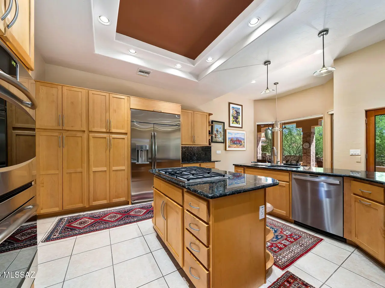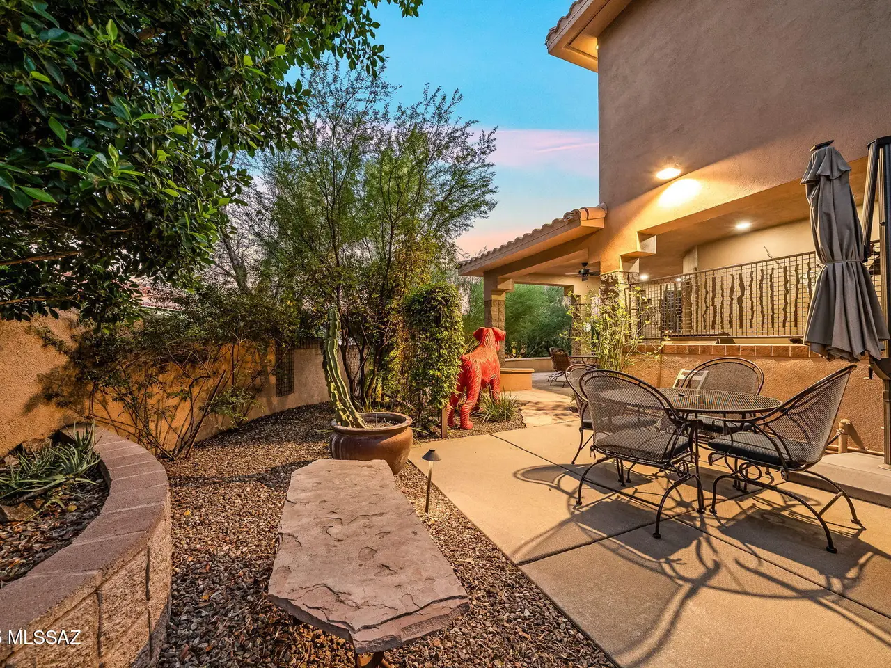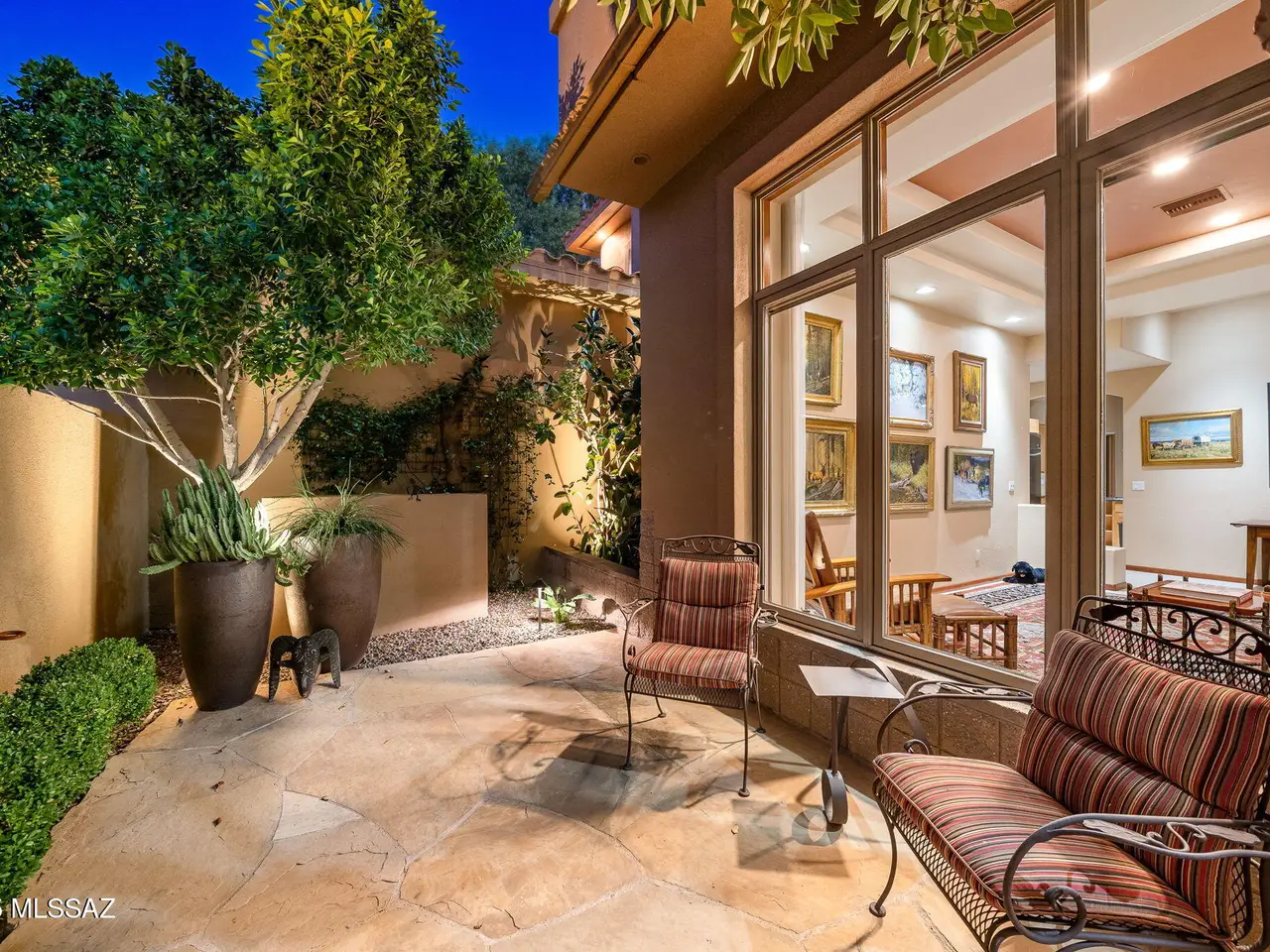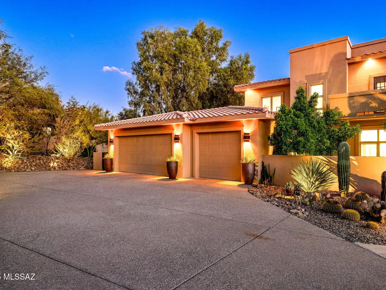 Spectacular remodeled Ventana Country Club Estates home boasts 5 bed, 4 bath + office/den with highest quality upgrades & incredible grounds designed by renowned landscape architect John Stropko (New Desert Gallery). Luxurious 4,947 sq.ft. home is a masterpiece of design & craftsmanship. Enter through the custom flagstone courtyard you'll be greeted by lush vegetation & exquisite custom metal fencing, creating a serene ambiance with multiple seating areas & bespoke stonework. Step through oversized entry into foyer that introduces soaring ceilings, a spacious living room & an elegant dining room all adorned with custom lighting. Chef's kitchen is perfection, featuring expansive granite counter space, rich wood cabinetry, double ovens, gas range, & sleek stainless steel appliances.See MORE