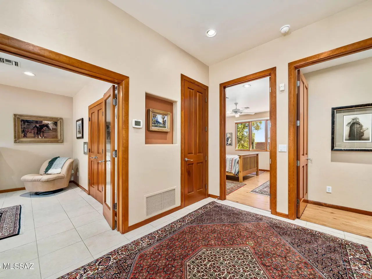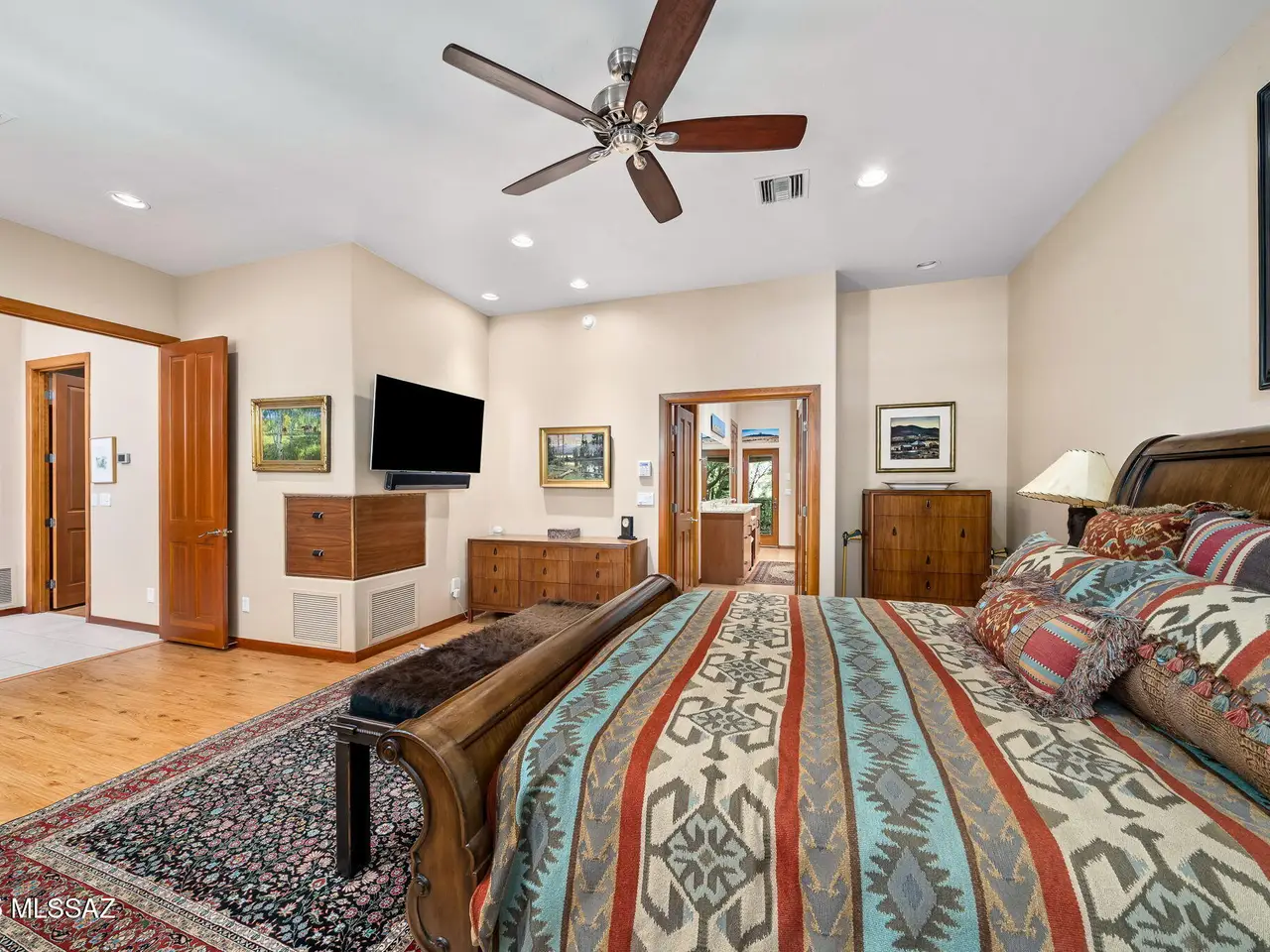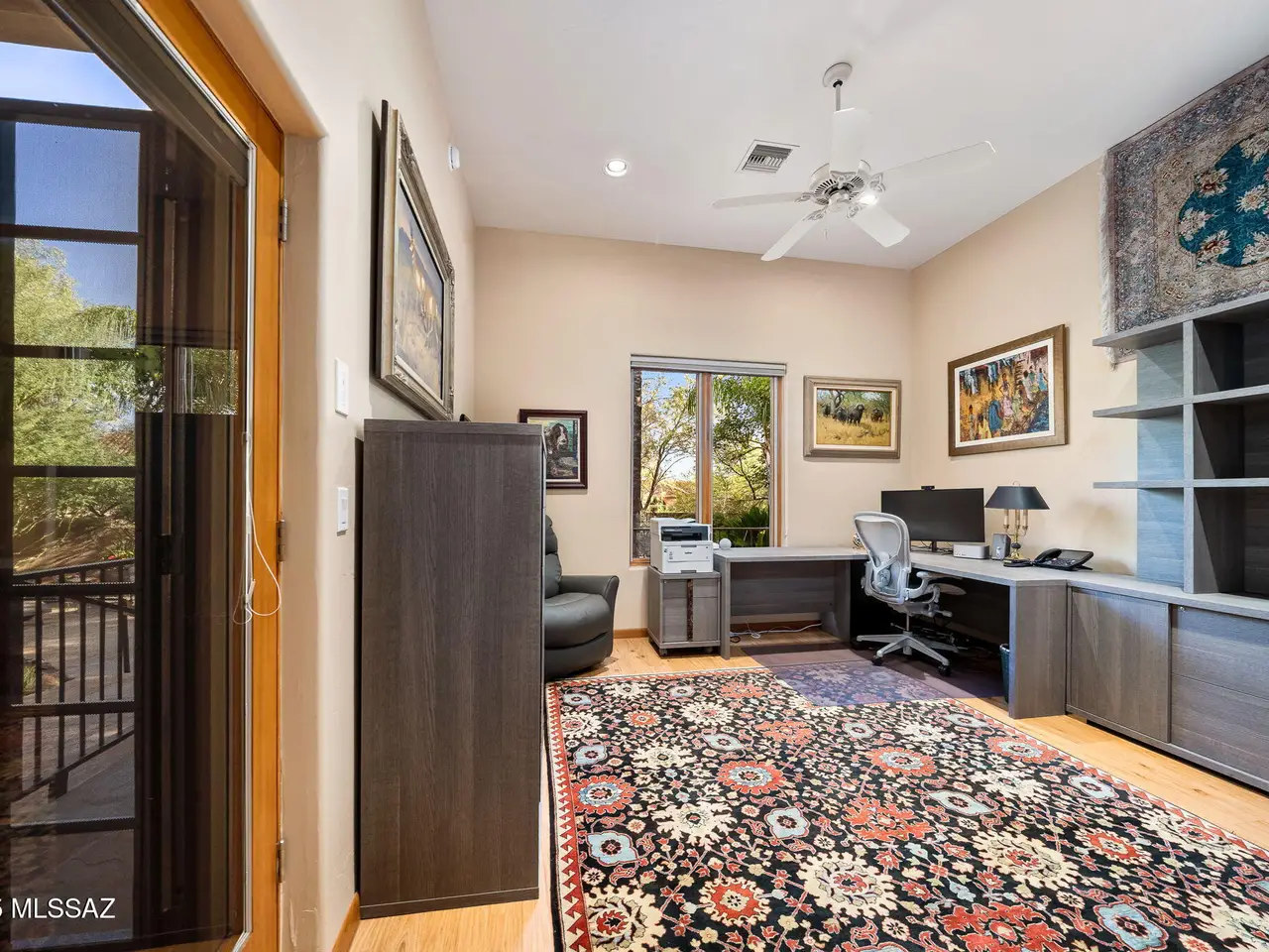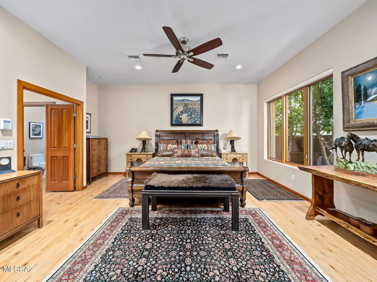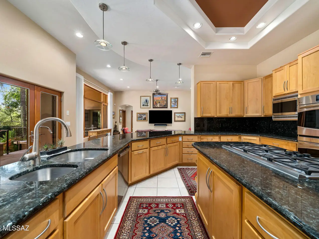 Spectacular remodeled Ventana Country Club Estates home boasts 5 bed, 4 bath + office/den with highest quality upgrades & incredible grounds designed by renowned landscape architect John Stropko (New Desert Gallery). Luxurious 4,947 sq.ft. home is a masterpiece of design & craftsmanship. Enter through the custom flagstone courtyard you'll be greeted by lush vegetation & exquisite custom metal fencing, creating a serene ambiance with multiple seating areas & bespoke stonework. Step through oversized entry into foyer that introduces soaring ceilings, a spacious living room & an elegant dining room all adorned with custom lighting. Chef's kitchen is perfection, featuring expansive granite counter space, rich wood cabinetry, double ovens, gas range, & sleek stainless steel appliances.See MORE