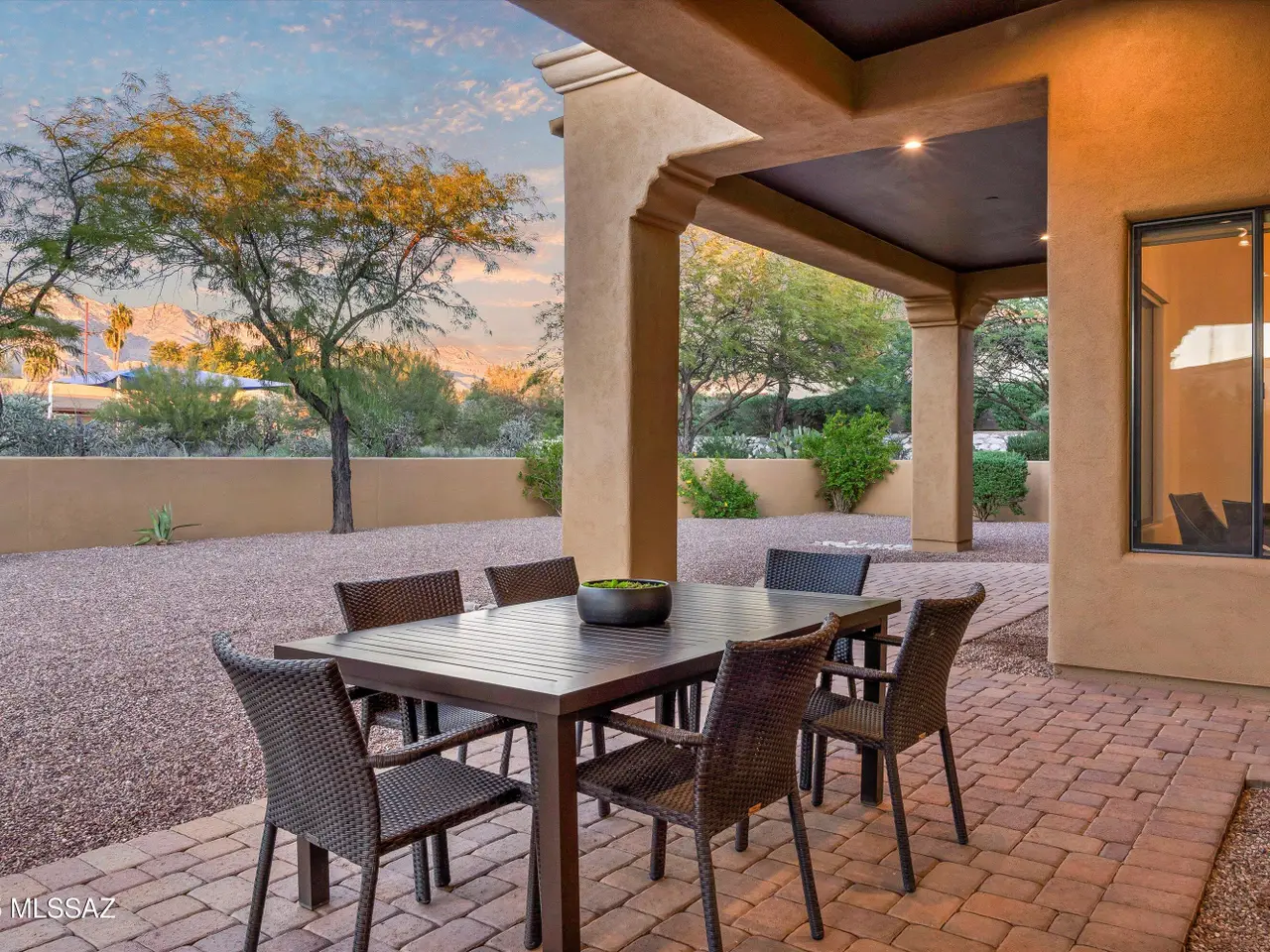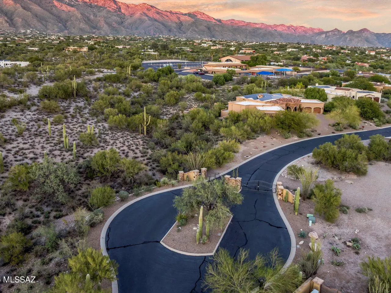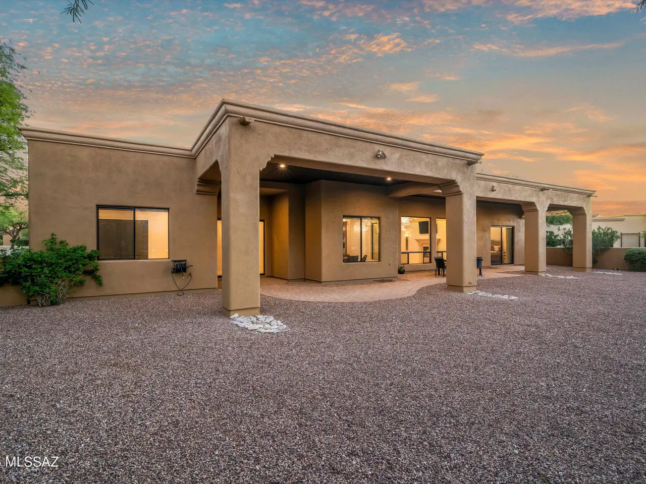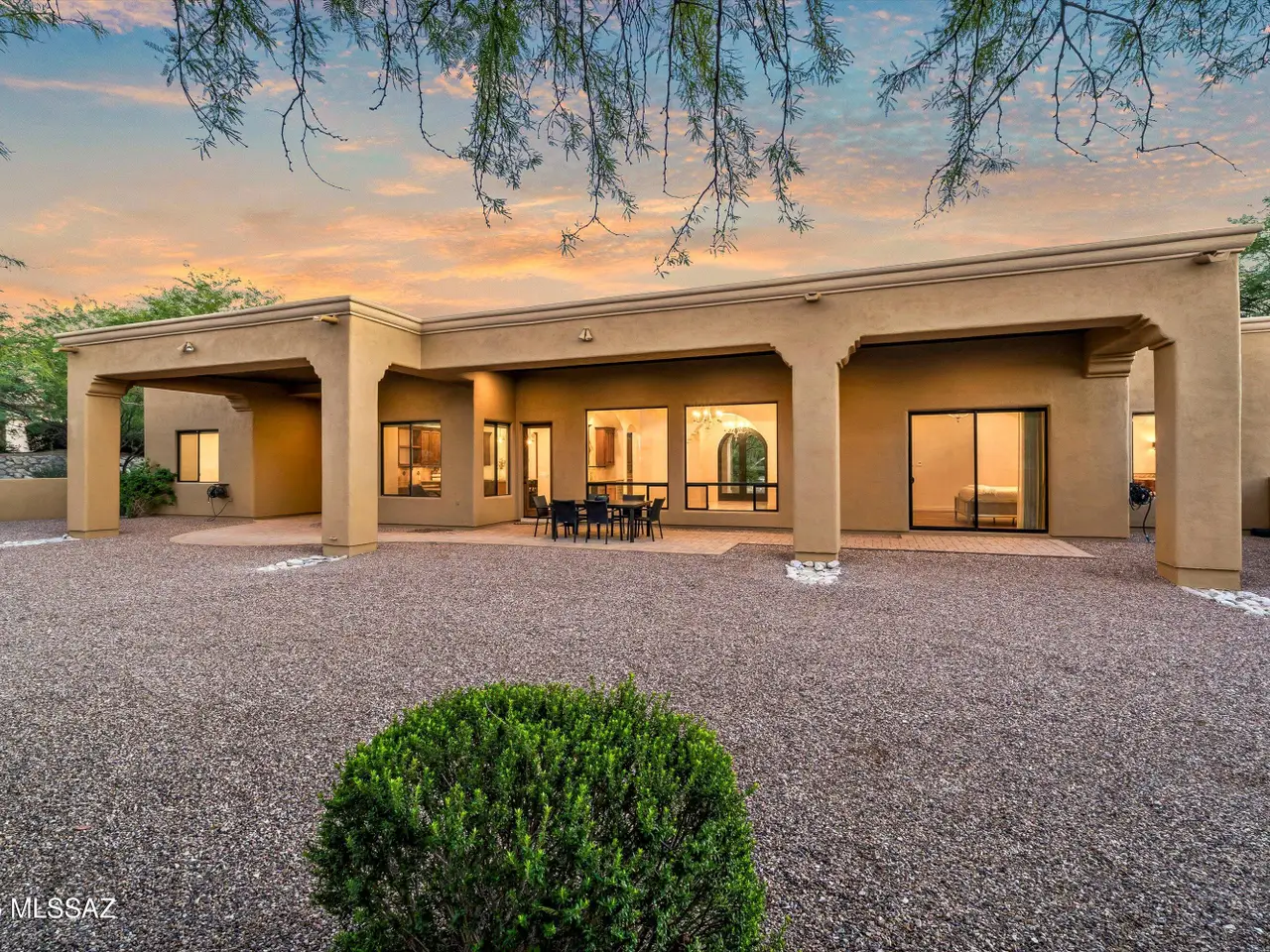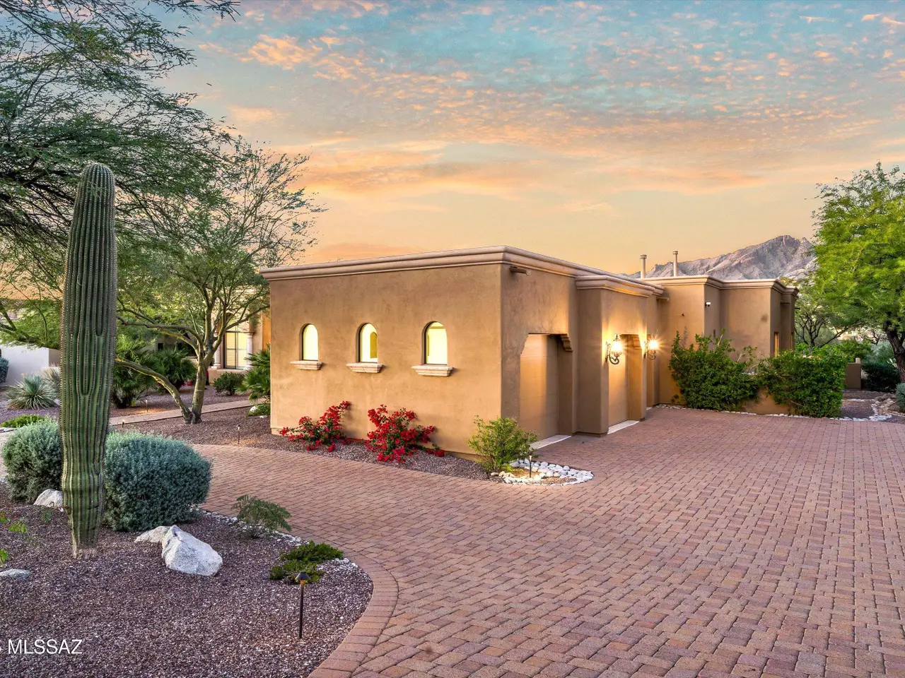 Nestled in the exclusive gated enclave of Villa Toscana, this one-story residence features a gourmet kitchen equipped with top-of-the-line Wolf and Sub Zero appliances, perfect for culinary enthusiasts. The sensational Master Suite boasts luxurious marble finishes and a spacious walk-in closet. Enjoy energy efficiency with owned solar panels, enhancing your lifestyle while reducing utility costs. The home is adorned with travertine floors, 8'' doors, granite surfaces, and a stunning circular drive for arriving guests. Experience quiet luxury in this desirable location close to all of the Tucson Foothills amenities.