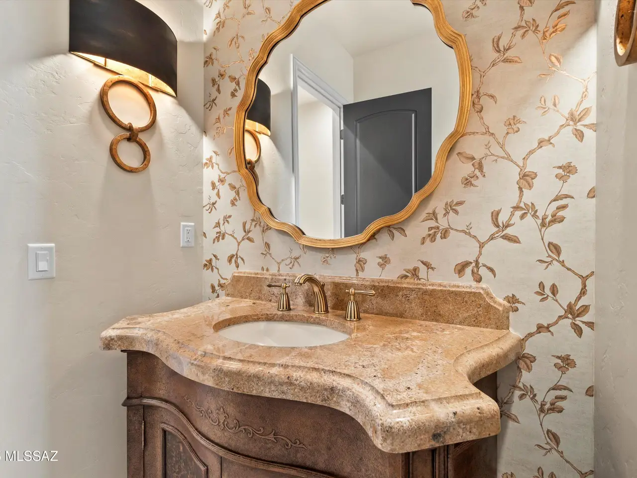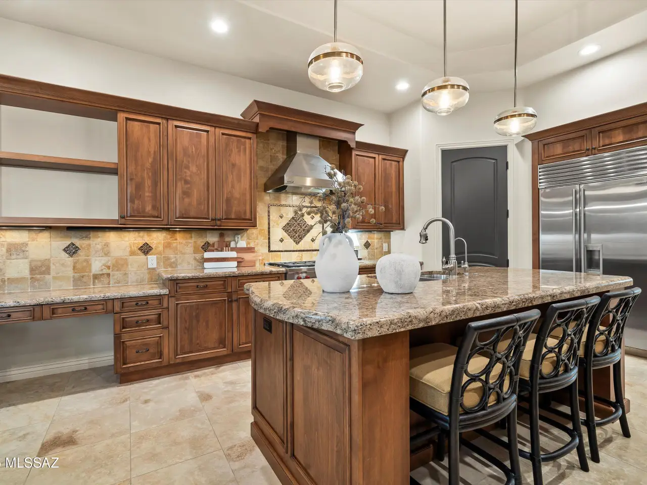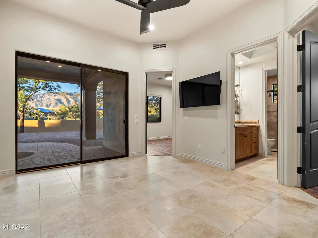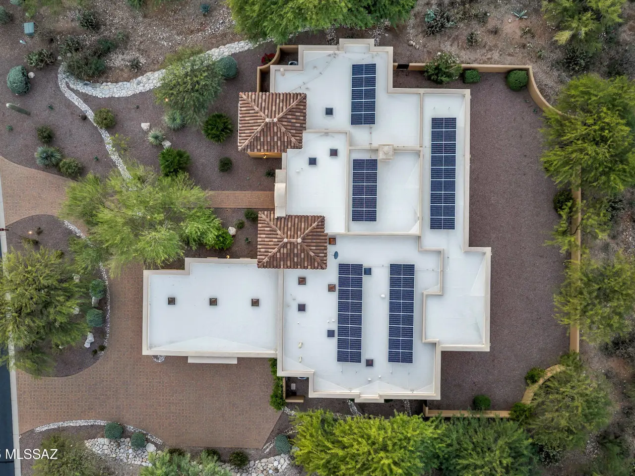 Nestled in the exclusive gated enclave of Villa Toscana, this one-story residence features a gourmet kitchen equipped with top-of-the-line Wolf and Sub Zero appliances, perfect for culinary enthusiasts. The sensational Master Suite boasts luxurious marble finishes and a spacious walk-in closet. Enjoy energy efficiency with owned solar panels, enhancing your lifestyle while reducing utility costs. The home is adorned with travertine floors, 8'' doors, granite surfaces, and a stunning circular drive for arriving guests. Experience quiet luxury in this desirable location close to all of the Tucson Foothills amenities.