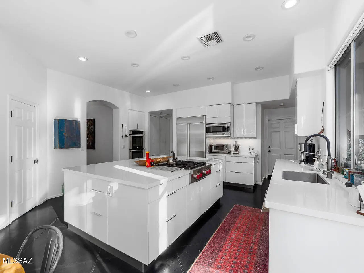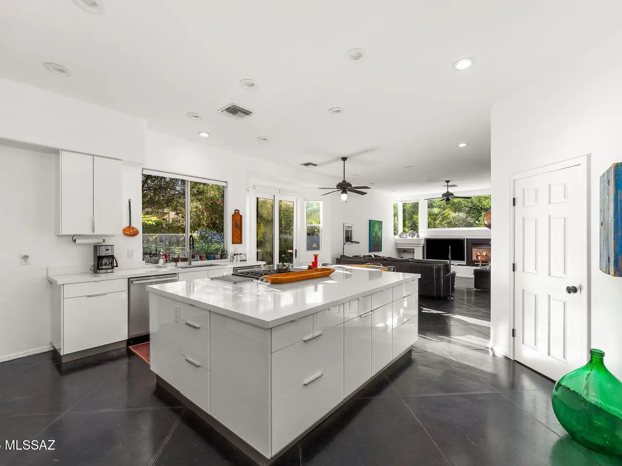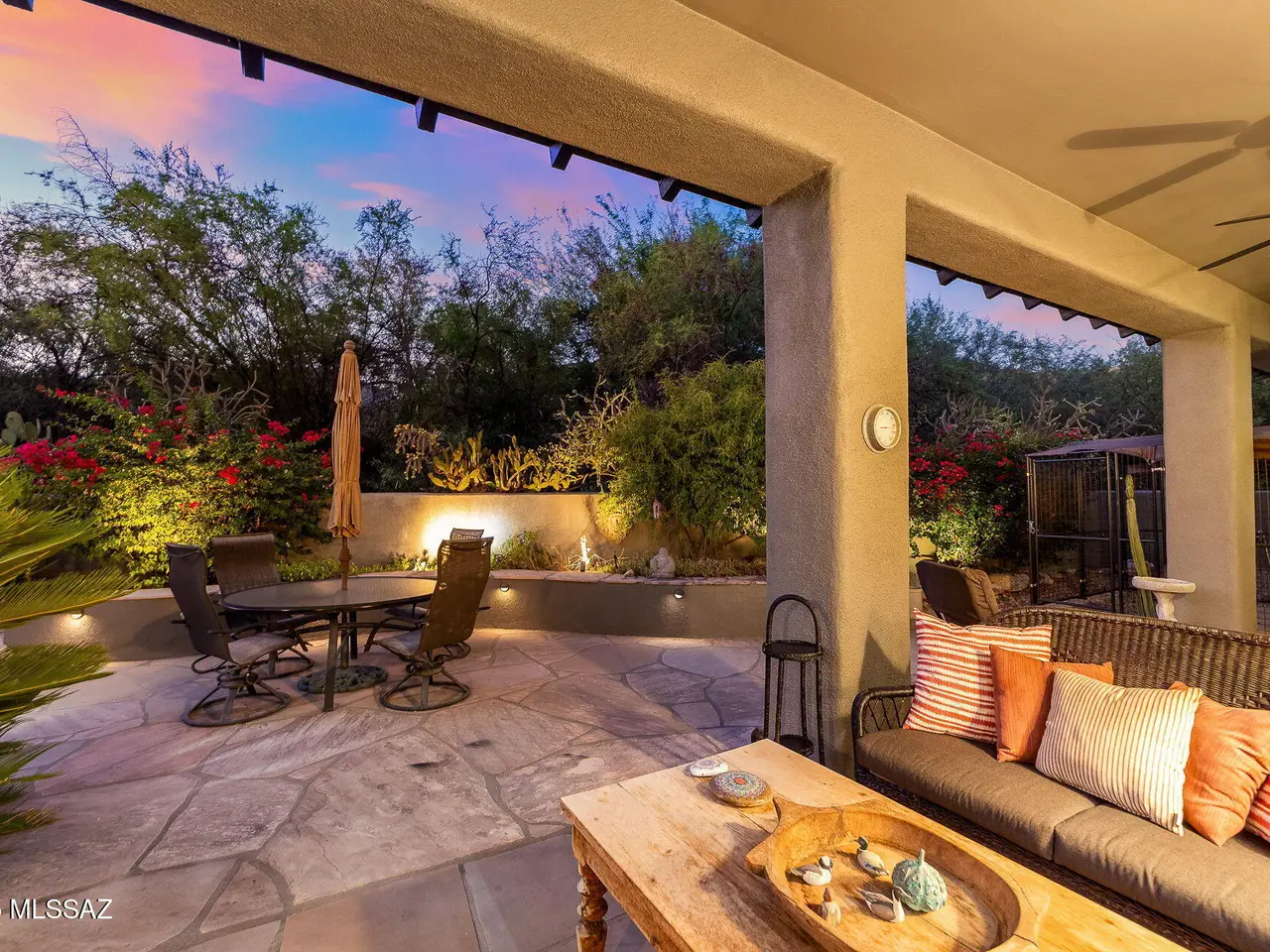 Located in desirable gated Ventana CC Est, this 4BR/3BA remodeled home with timeless designer touches, blends modern elegance with the beauty of the desert on a lush .83-acre lot. The north facing private backyard offers an outdoor living area with an expansive covered flagstone patio, sparkling pool/spa & built- in BBQ. The eat-in kitchen has an extra-large island, Silestone countertops & custom cabinets with an abundance of storage. The stainless steel appliances include a Wolf range, two Thermidor dishwashers, double built-in Electrolux ovens & a Viking microwave. The family room is adjacent to the kitchen & includes a wall of built-ins, a gas fireplace & expansive windows capturing desert & mountain views. The gracious living room & dining room have French doors ...see more tab