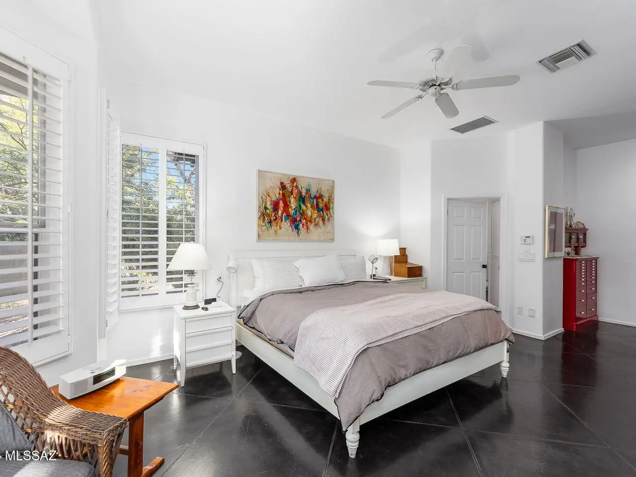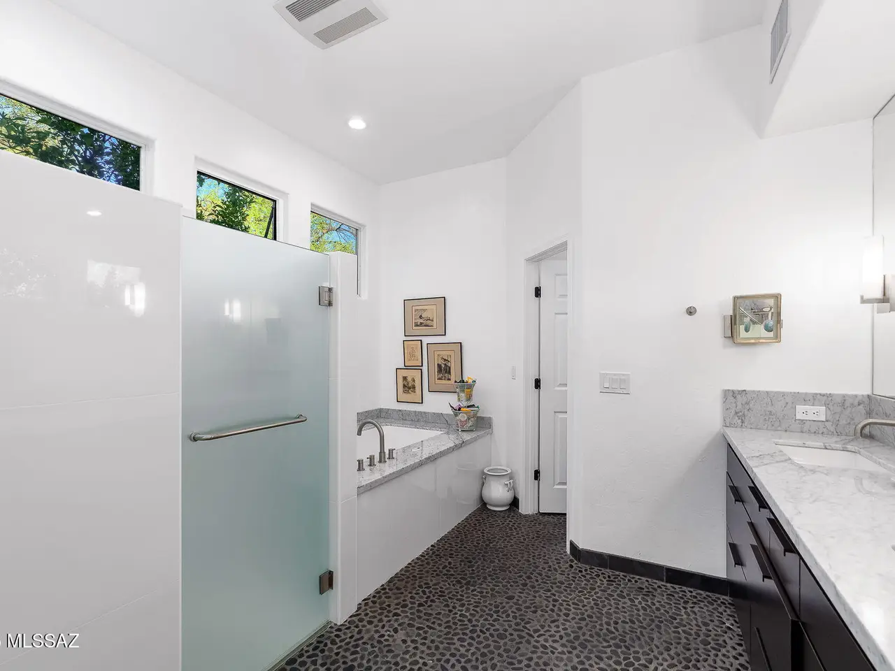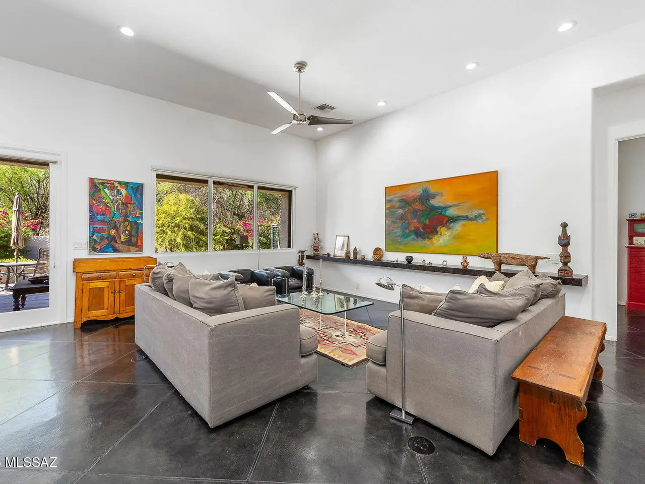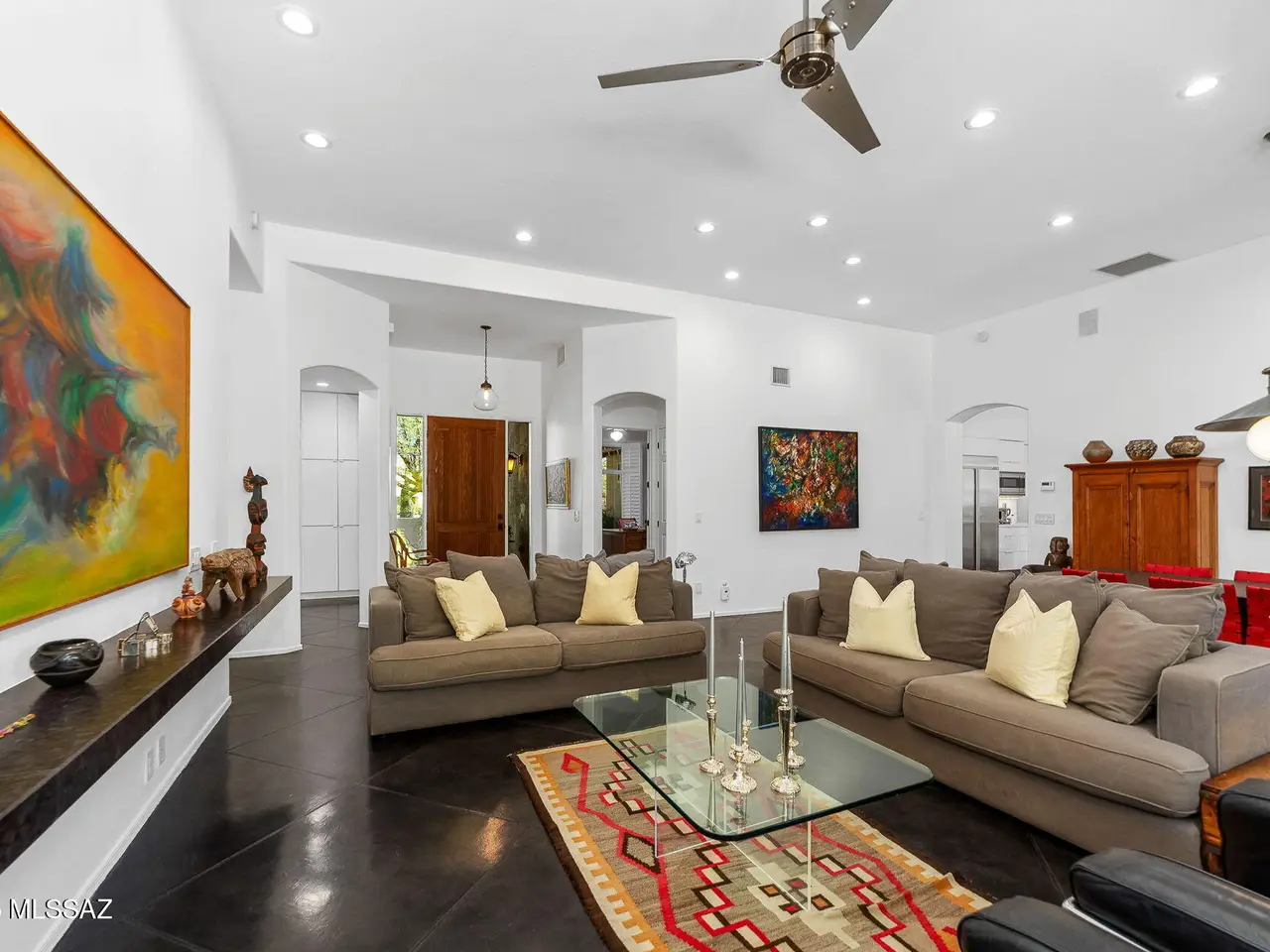 Located in desirable gated Ventana CC Est, this 4BR/3BA remodeled home with timeless designer touches, blends modern elegance with the beauty of the desert on a lush .83-acre lot. The north facing private backyard offers an outdoor living area with an expansive covered flagstone patio, sparkling pool/spa & built- in BBQ. The eat-in kitchen has an extra-large island, Silestone countertops & custom cabinets with an abundance of storage. The stainless steel appliances include a Wolf range, two Thermidor dishwashers, double built-in Electrolux ovens & a Viking microwave. The family room is adjacent to the kitchen & includes a wall of built-ins, a gas fireplace & expansive windows capturing desert & mountain views. The gracious living room & dining room have French doors ...see more tab