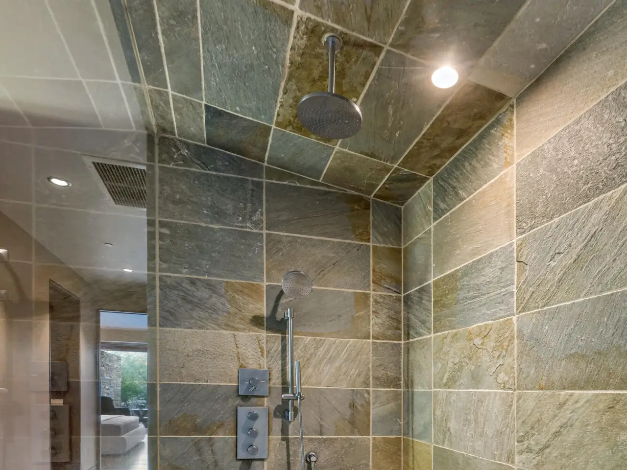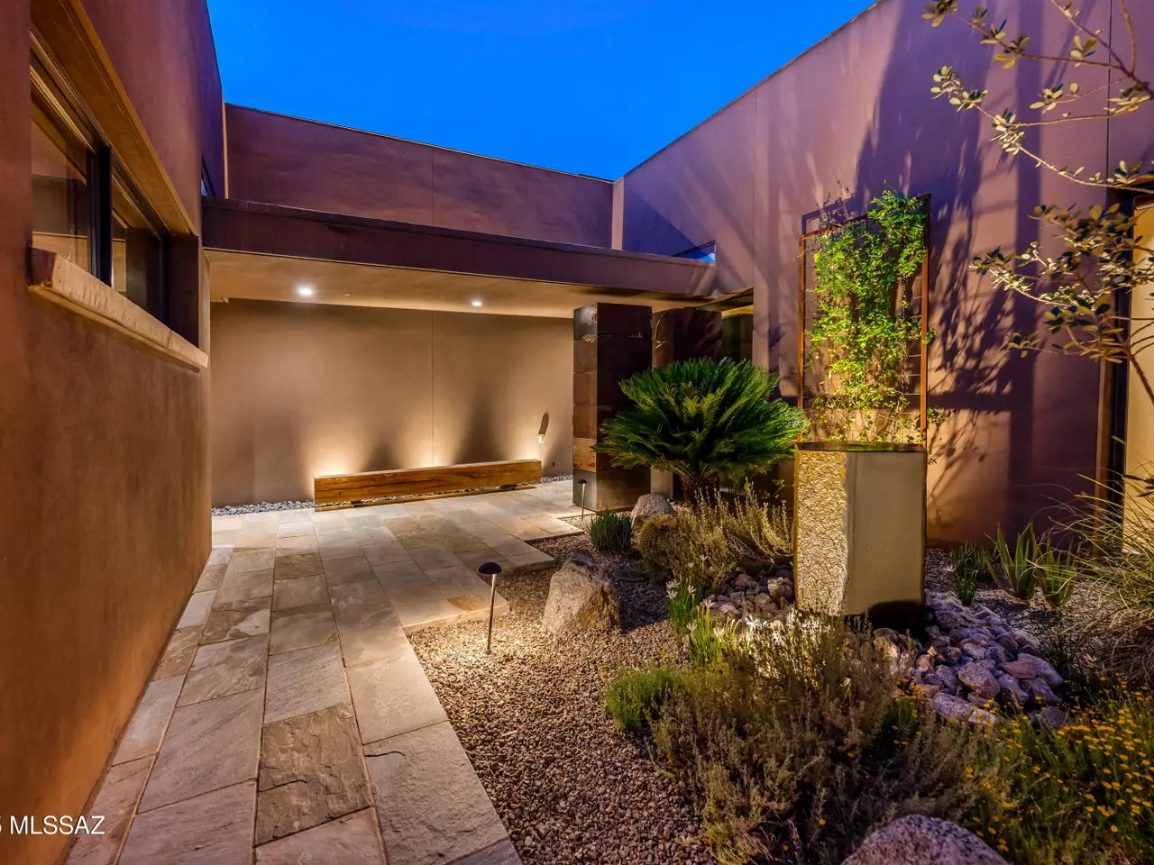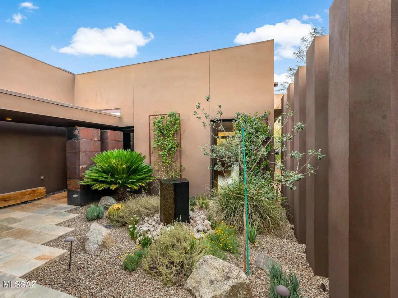 Tranquil courtyard entry with water feature
