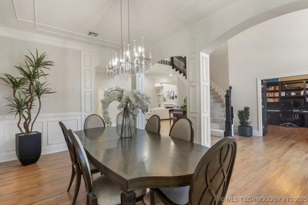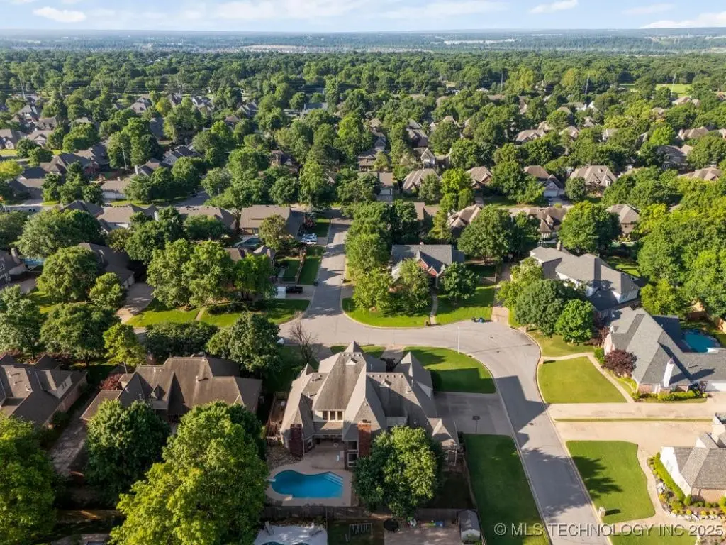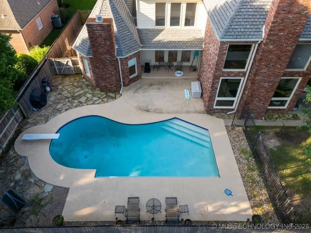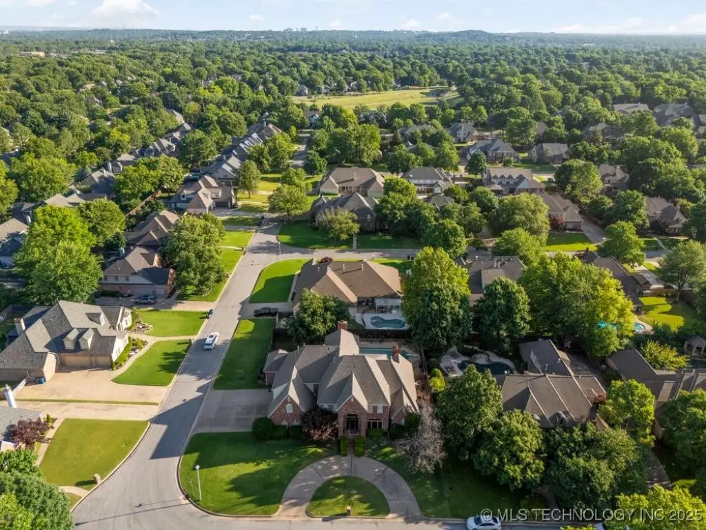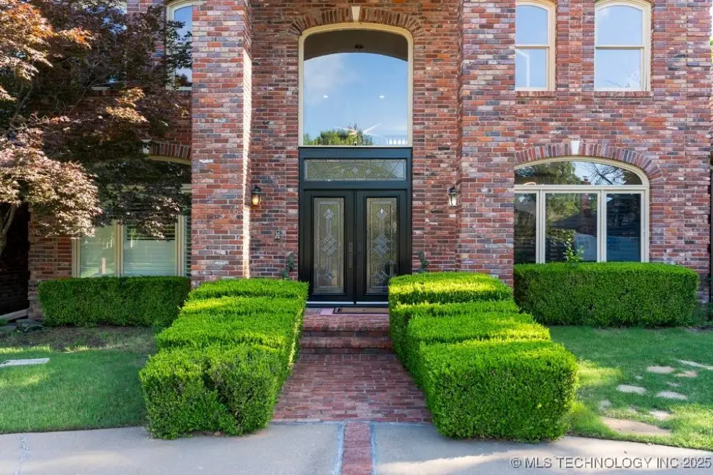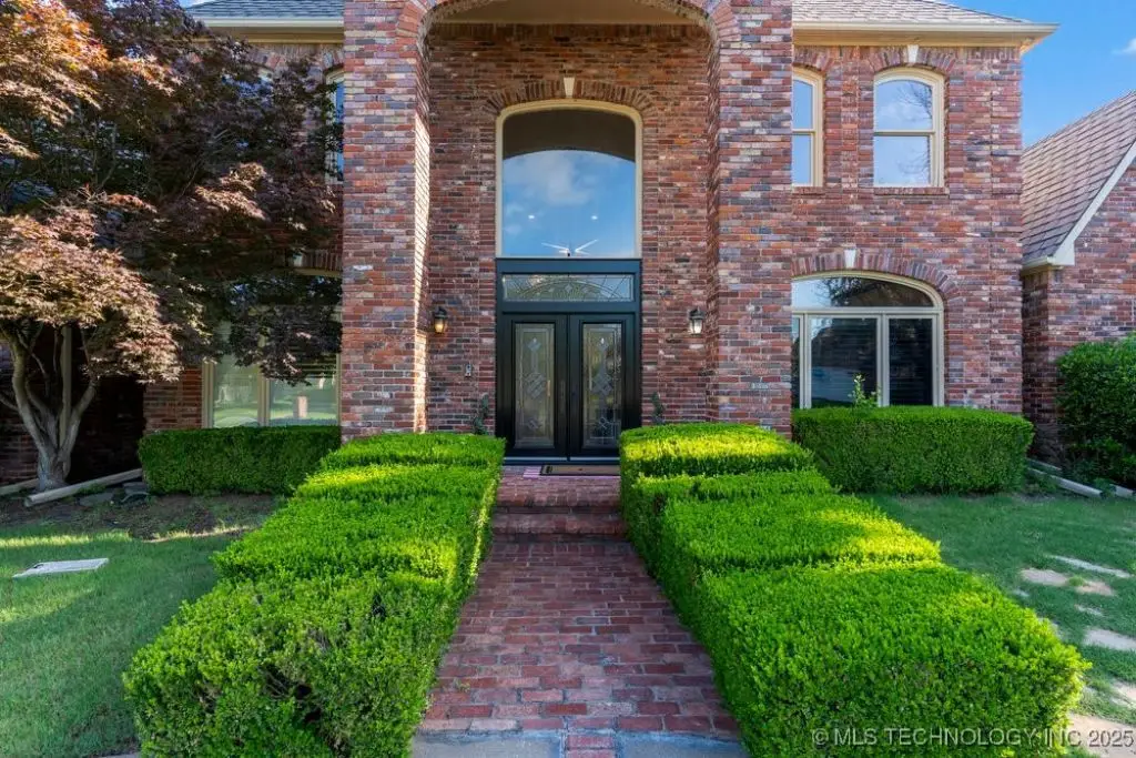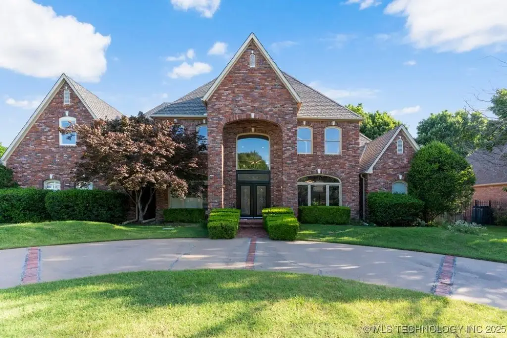 ABSOLUTELY STUNNING full brick home on corner lot. Beautiful landscaping and circle drive adorns the entrance to this home. Gorgeous backyard and Pool. This home has a 4 Car Garage and resides in the award winning Jenks SE School district! Grand open entry, dual staircase, formal dining. Study and living with fireplace with wall of windows overlooking the sparkling pool! Kitchen opens to breakfast nook & the large vaulted living. Lovely split first floor master and guest suite down, 3 large Bedrooms with en-suite baths & expansive game room with wet bar up! This home has it all, great for entertaining and your family. You do not want to miss out on this lovely family house in the beautiful established neighborhood of Southern Park Estates. Won't last, make this one yours.