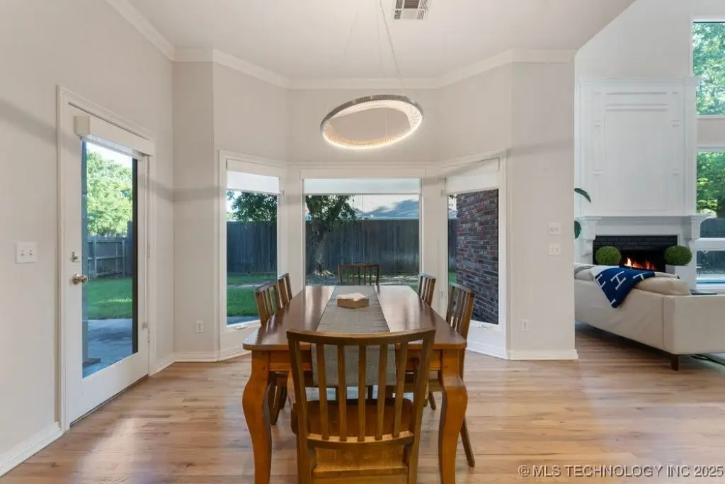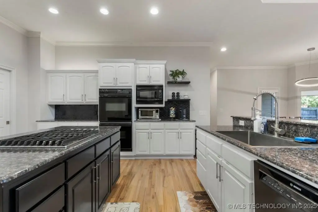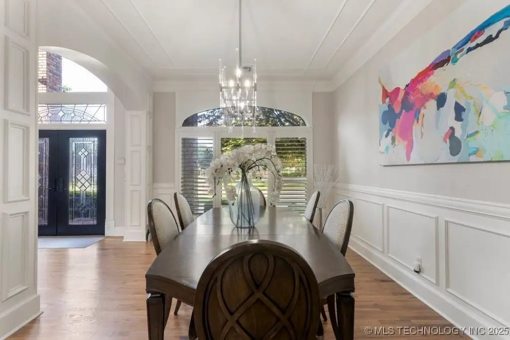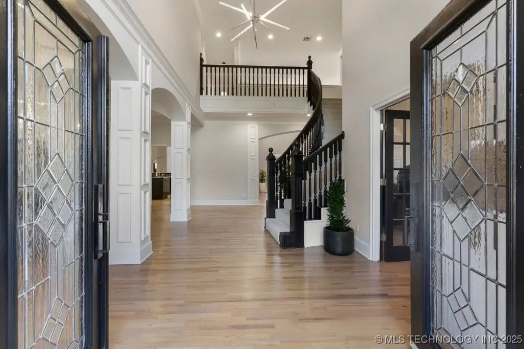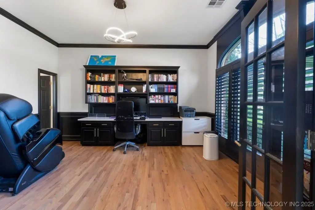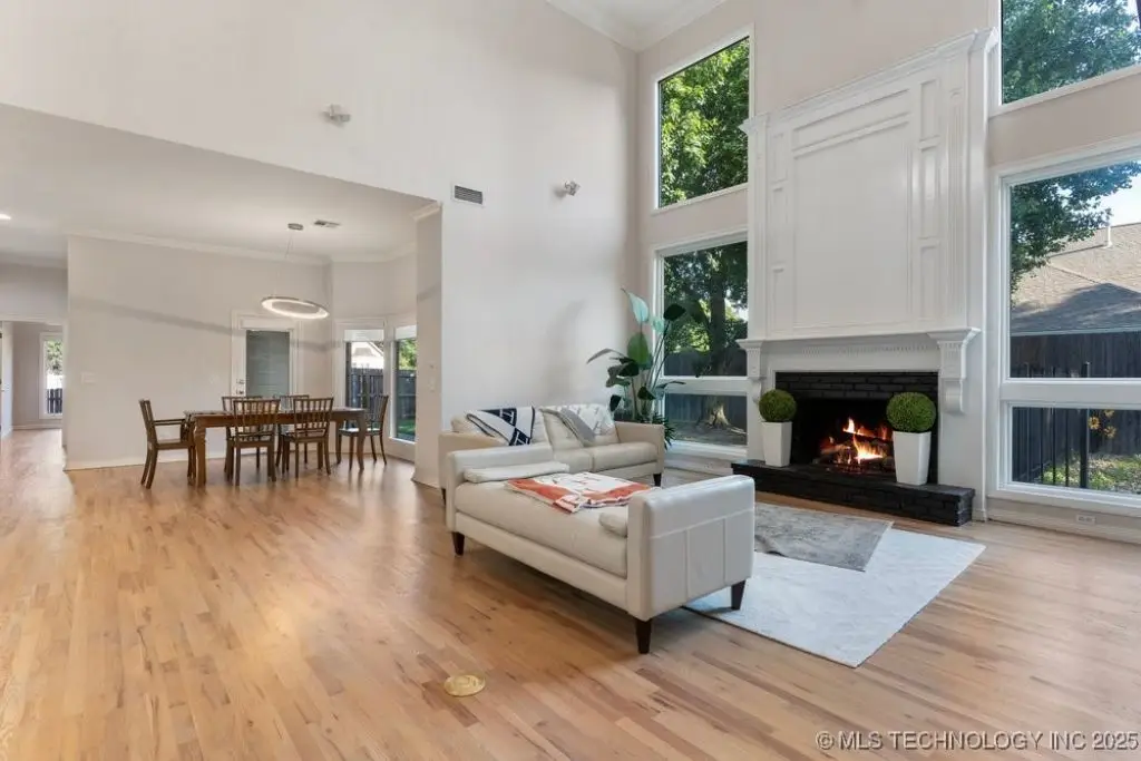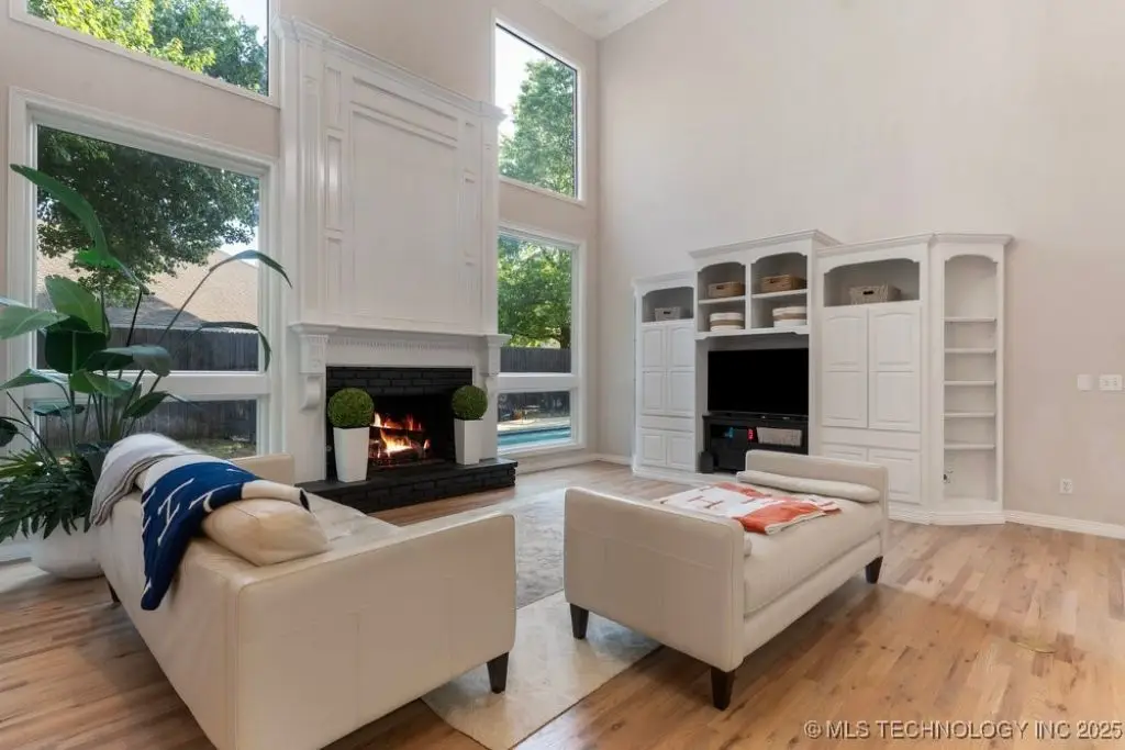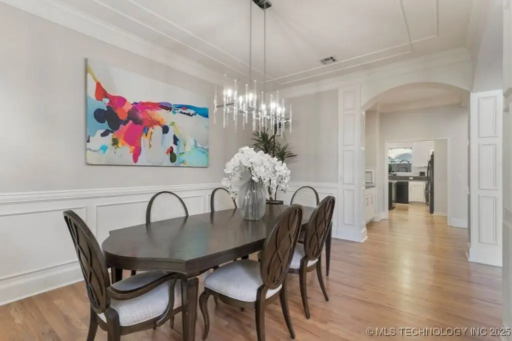 ABSOLUTELY STUNNING full brick home on corner lot. Beautiful landscaping and circle drive adorns the entrance to this home. Gorgeous backyard and Pool. This home has a 4 Car Garage and resides in the award winning Jenks SE School district! Grand open entry, dual staircase, formal dining. Study and living with fireplace with wall of windows overlooking the sparkling pool! Kitchen opens to breakfast nook & the large vaulted living. Lovely split first floor master and guest suite down, 3 large Bedrooms with en-suite baths & expansive game room with wet bar up! This home has it all, great for entertaining and your family. You do not want to miss out on this lovely family house in the beautiful established neighborhood of Southern Park Estates. Won't last, make this one yours.