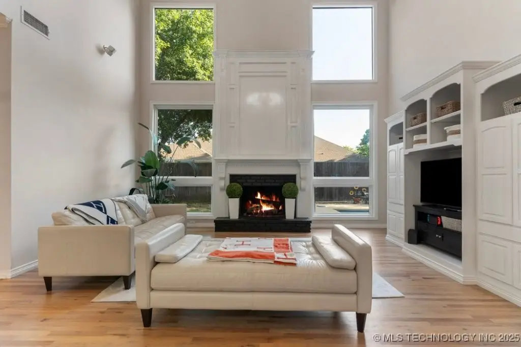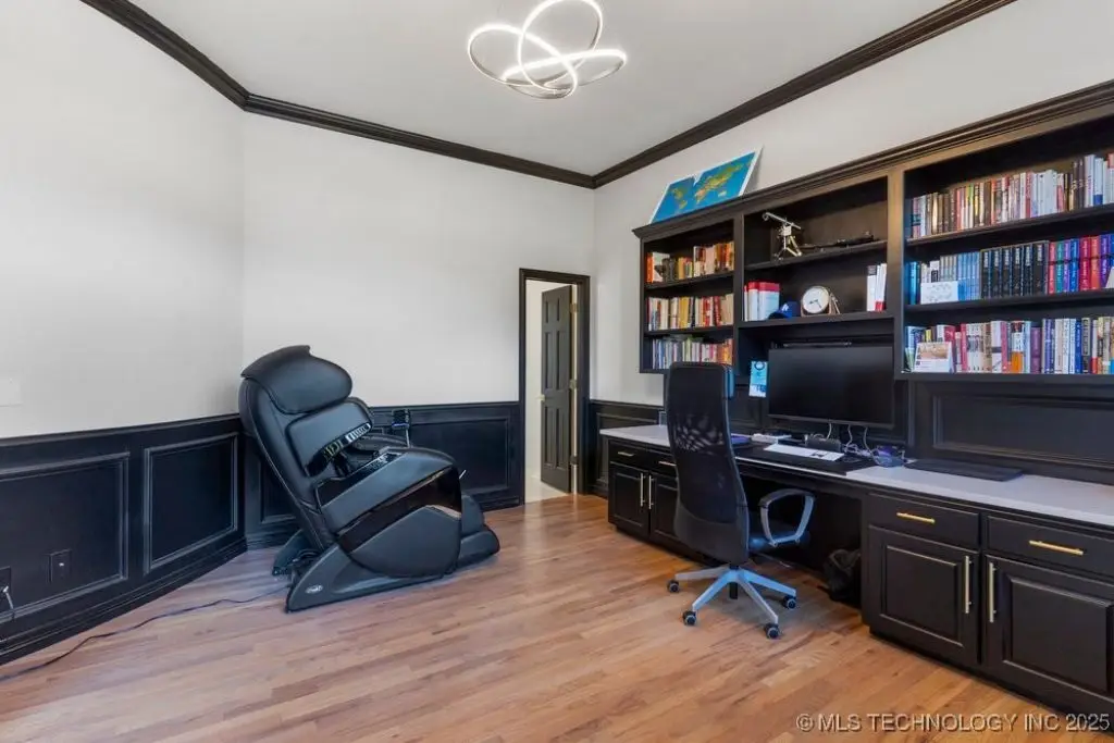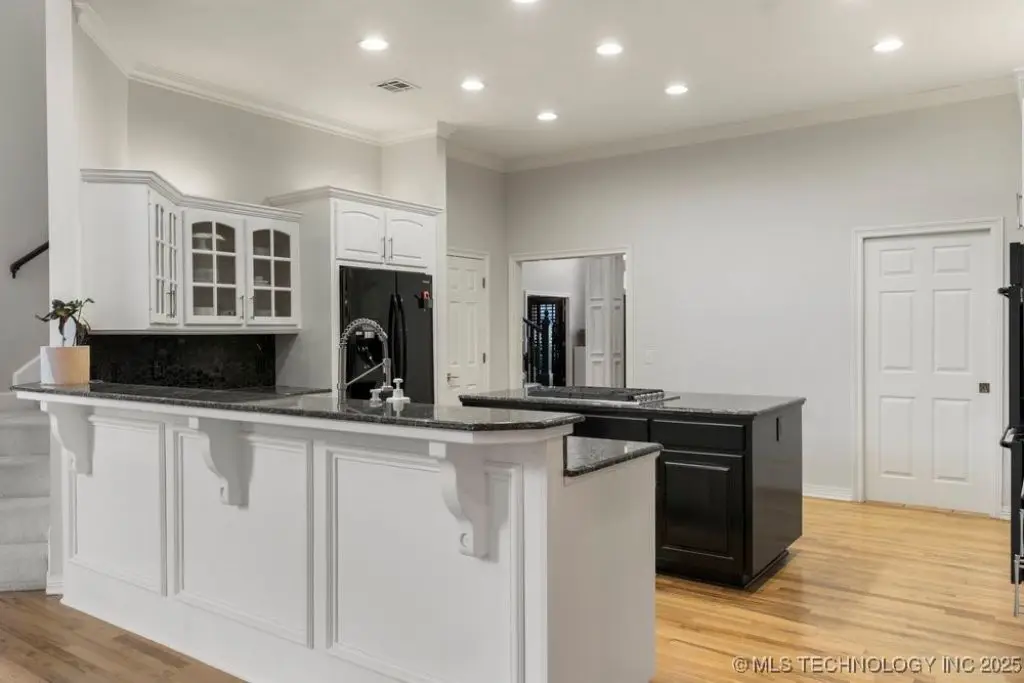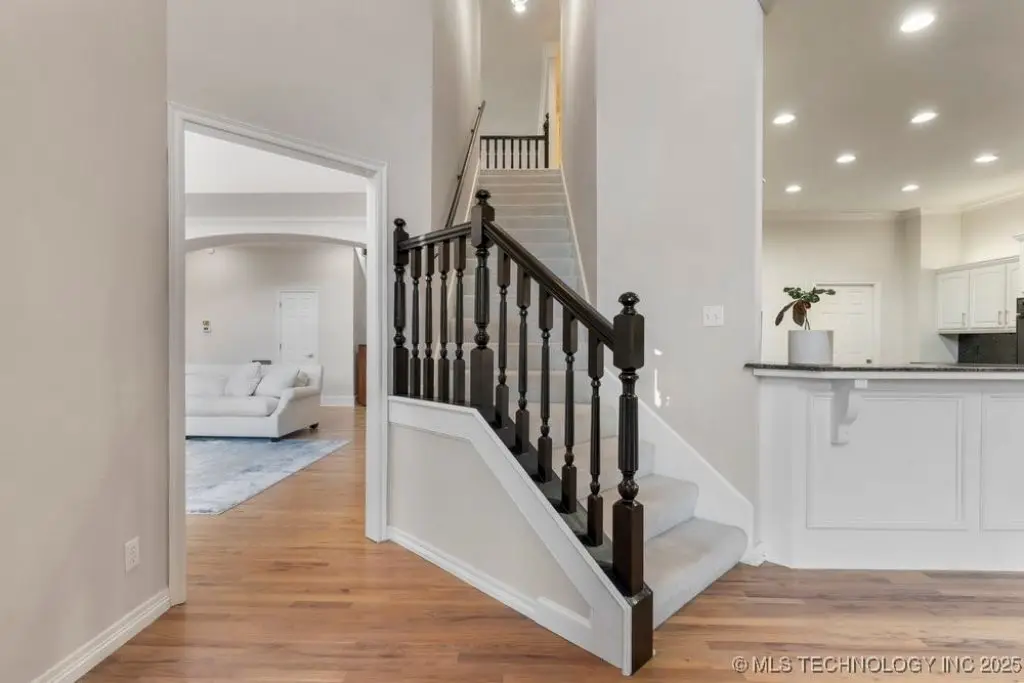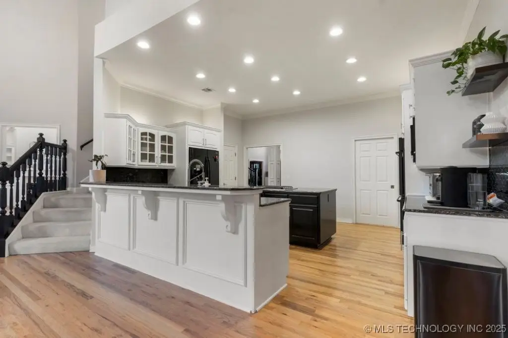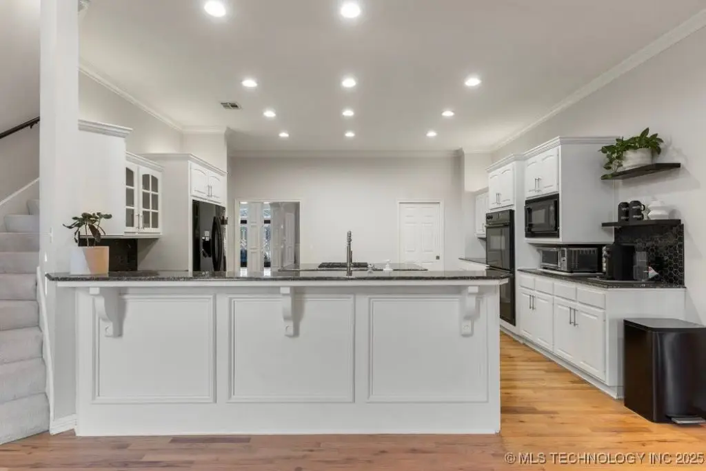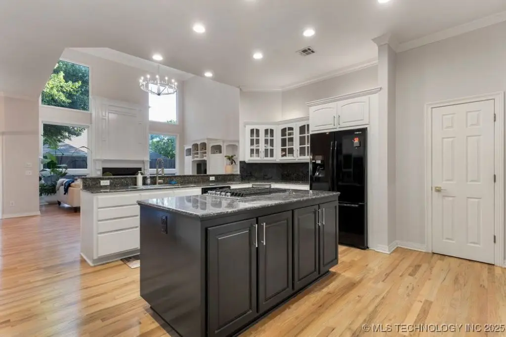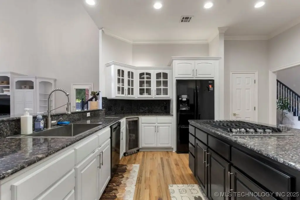 ABSOLUTELY STUNNING full brick home on corner lot. Beautiful landscaping and circle drive adorns the entrance to this home. Gorgeous backyard and Pool. This home has a 4 Car Garage and resides in the award winning Jenks SE School district! Grand open entry, dual staircase, formal dining. Study and living with fireplace with wall of windows overlooking the sparkling pool! Kitchen opens to breakfast nook & the large vaulted living. Lovely split first floor master and guest suite down, 3 large Bedrooms with en-suite baths & expansive game room with wet bar up! This home has it all, great for entertaining and your family. You do not want to miss out on this lovely family house in the beautiful established neighborhood of Southern Park Estates. Won't last, make this one yours.