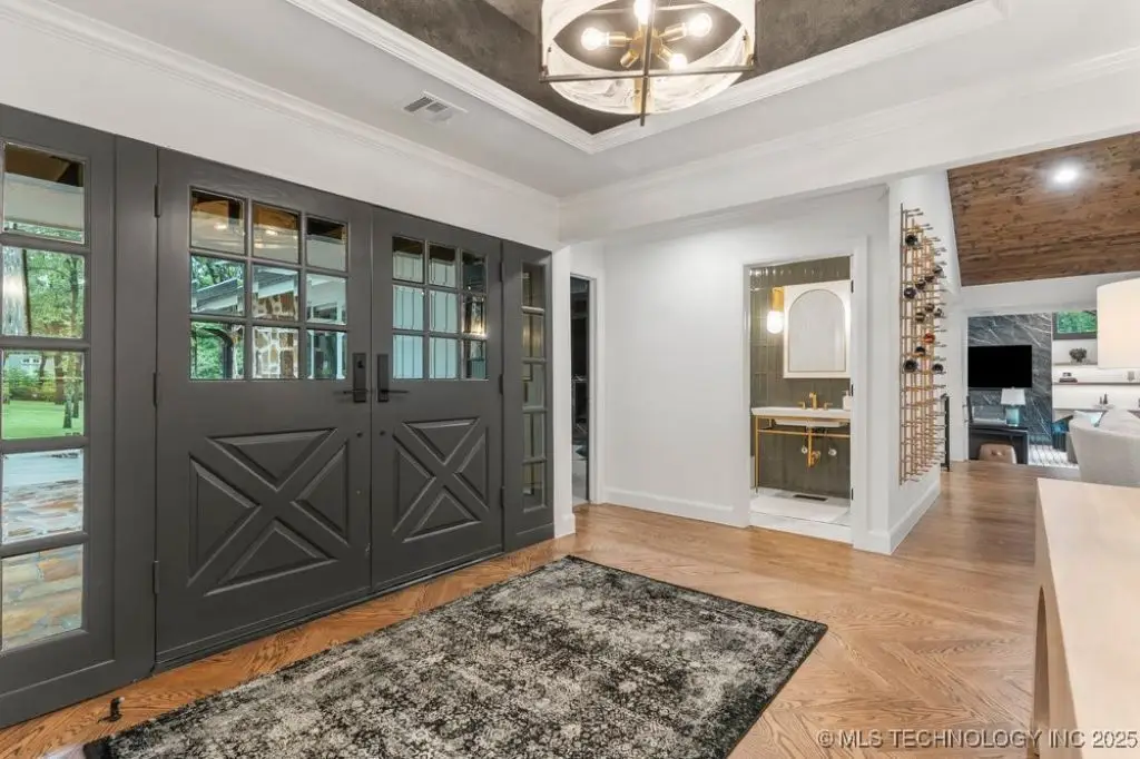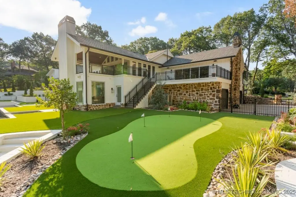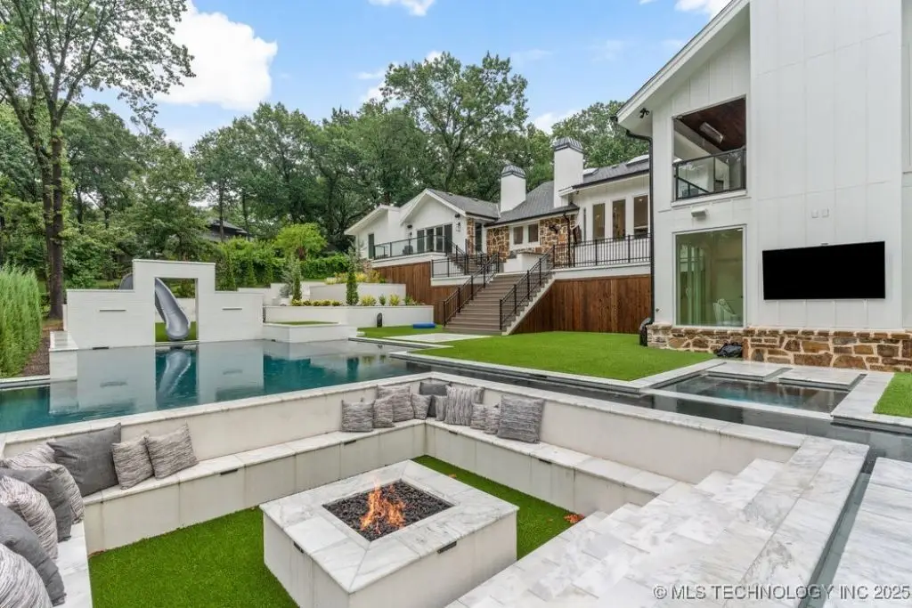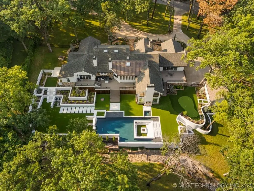 Welcome to your dream oasis in South Tulsa! This completely remodeled stunner sits on an expansive 2.5 acres (m/l), offering both luxury and space for endless possibilities. With five spacious bedrooms, including a charming bunk room, every bedroom boasts its own en suite for ultimate convenience and privacy. Step inside to discover two inviting living areas, dedicated game room and a private media room, perfect for entertaining family and friends. Inside you will find SEVEN fireplaces that boast coziest and ambience. The cabana room provides a relaxing retreat, enhancing the home's resort-like ambiance. The outdoor space is nothing short of spectacular! Multi-level decks beckon you to the impressive backyard, featuring a stunning Gunite pool, complete with cascading water features and a thrilling water slide. Gather around the sunken fire pit that comfortably accommodates over 20 guests, perfect for cozy evenings under the stars. The putting green adds an exciting touch for the golf enthusiast, or the outdoor kitchen beckons for all alfresco dining and entertainment. This remarkable home is truly a must-see, an extraordinary blend of comfort, style, and outdoor fun that defines the essence of luxurious living. A true MUST SEE!!