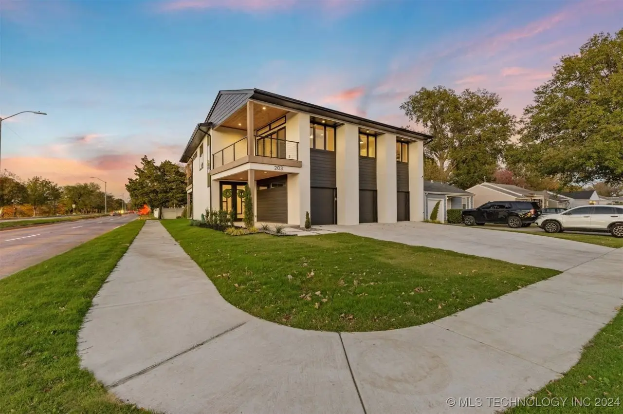 Welcome to this beautifully crafted two-story home that blends modern luxury and distinctive design. Perfectly positioned in sought after midtown Tulsa. This home offers commanding and rare views of the Arkansas river. Located just minutes from The Gathering Place, Brookside, Utica Square, and Downtown. You enjoy some of Tulsa's finest shopping, dining, entertainment and recreation. Beyond this home's beautiful curbside appeal, this unique floor plan offers almost 3200 square feet of generous living and entertaining spaces. As you step into the grand foyer, you will be greeted with soaring ceilings and incredible stairs. You will find in this 4 bedroom, 3.5 bath home, 2 bedrooms downstairs both with luxurious and convenient ensuite baths. A casually elegant living area with bar for entertaining, a lovely office with built-ins, and one of two laundry areas. From there you have access to the lush landscaped back yard, and patio space. If you adjourn upstairs, you will find the grand main living area, gourmet kitchen, Primary Suite and third guest bedroom. The elegant kitchen features a vast island with quartzite counter tops, extensive storage, more amazing views, and a hidden highlight, a dumbwaiter for sending your groceries and items directly up to the kitchen from the garage space. Next to the comfortable yet modern living room you can access the second-floor balcony and relax and enjoy breathtaking views of the Arkansas River and Downtown. The primary suite will be the place you'll never want to leave with more extensive views, a spa-inspired bath, large dressing closet with laundry hookups, and access to your private balcony. The three-car garage is spacious and functional with an additional 4th door accessible to back yard offers more options for space. Other upgrades and efficiencies include Anderson windows, tankless hot water, and spray foam insulation. Full sprinkler system, security system, and full guttering.