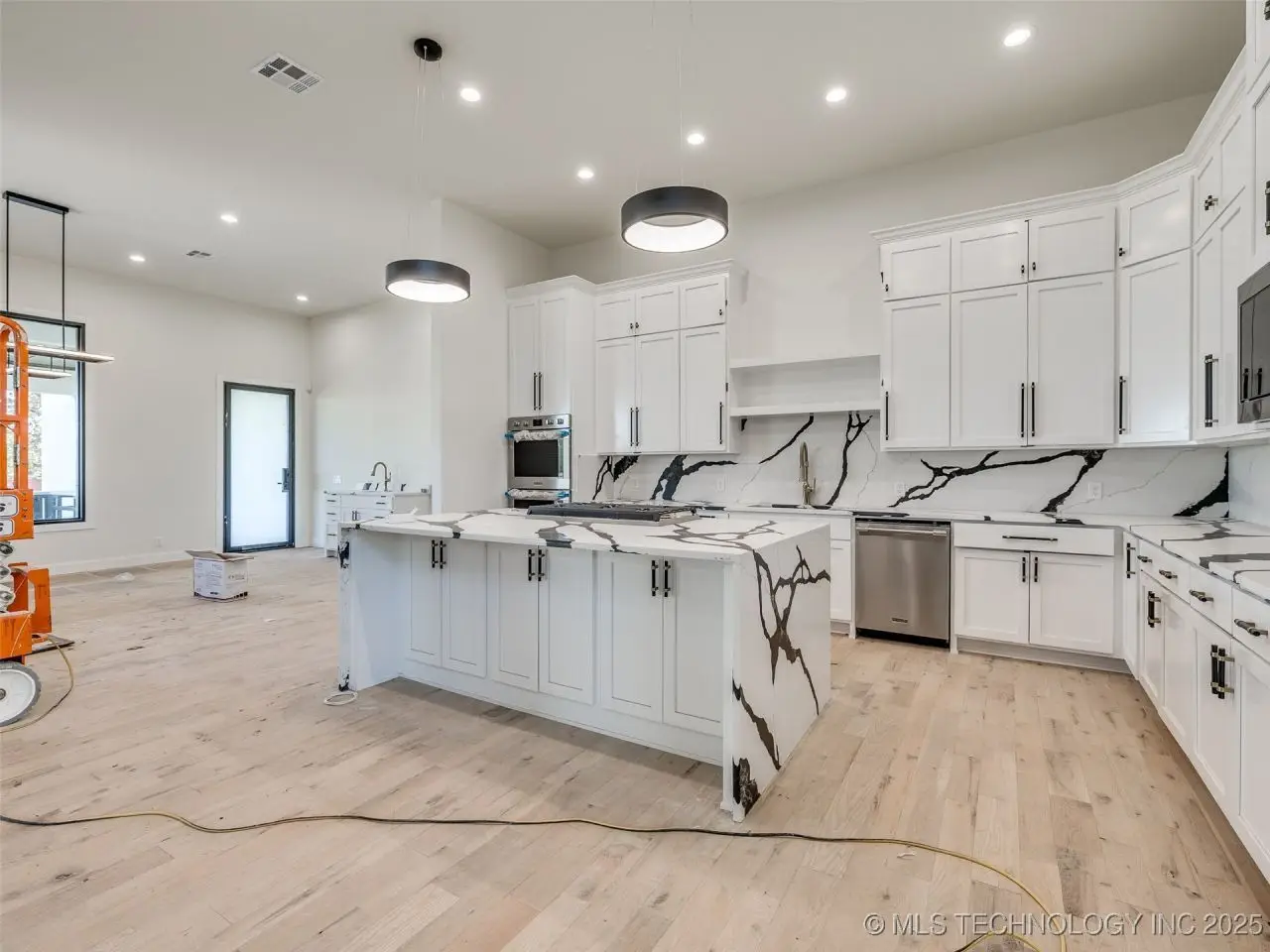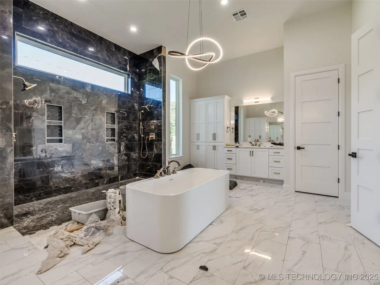 True one of a kind custom on large one acre lot in West Tulsa. This home has five bedrooms, (two down, three up)five full & one half baths, flex room and four car garage. No expenses were spared; 25 foot ceilings, oversized pantry, and designer front door that is a showstopper. Custom countertops and professional grade appliances in kitchen, extensive wood floors, spray foam insulation, LED lights, Low-E windows, and more. Oversized master with large walk-in closet & spa like bath. Additional features include second level true In-law suite with private bathroom, kitchenette, and room for a private staircase or elevator to/from the garage. Enjoy a quiet evening in your beautiful backyard. Additional 10 acres in back available for purchase. Located just west of Tulsa Hills, quick access to Hwy 75, in desired Jenks schools. Home to be completed within 90 days.