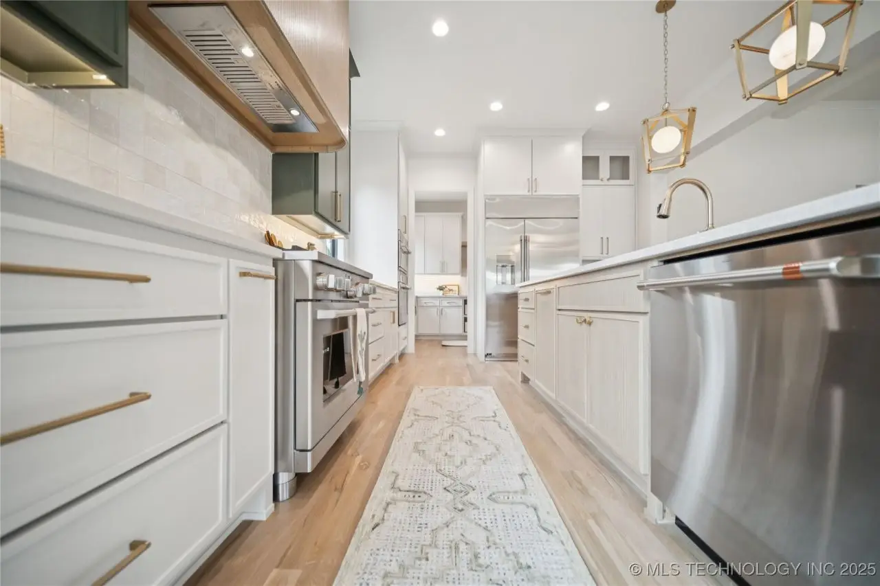 Welcome to this stunning new construction home nestled in the heart of Midtown Tulsa. Thoughtfully designed to maximize both style and functionality, this custom-built residence offers a seamless blend of modern elegance and timeless craftsmanship. Step inside to be greeted by a floating staircase in the entry, a striking architectural feature that sets the tone for the home's contemporary design. Throughout the home, you'll find real hardwood floors, adding warmth and sophistication to every space. The main floor boasts a luxurious primary suite with a spa-like bath, along with a private guest suite, providing convenience and privacy for visitors. Upstairs, three additional bedrooms and two full bathrooms accompany a flex space, ready to be tailored to your needs - whether it's a home office, a playroom, or a media lounge. The gourmet kitchen is a chef's dream, featuring custom cabinetry with soft-close drawers, high-end appliances, and designer finishes that elevate the space. Built with energy efficiency in mind, the home includes spray foam insulation and a tankless hot water system for optimal comfort and sustainability. Agent related to Seller.