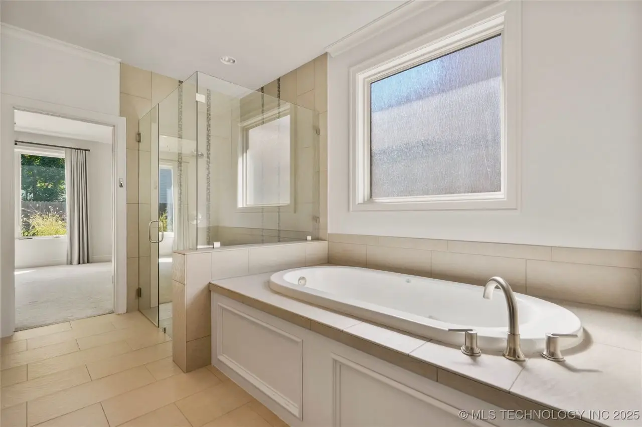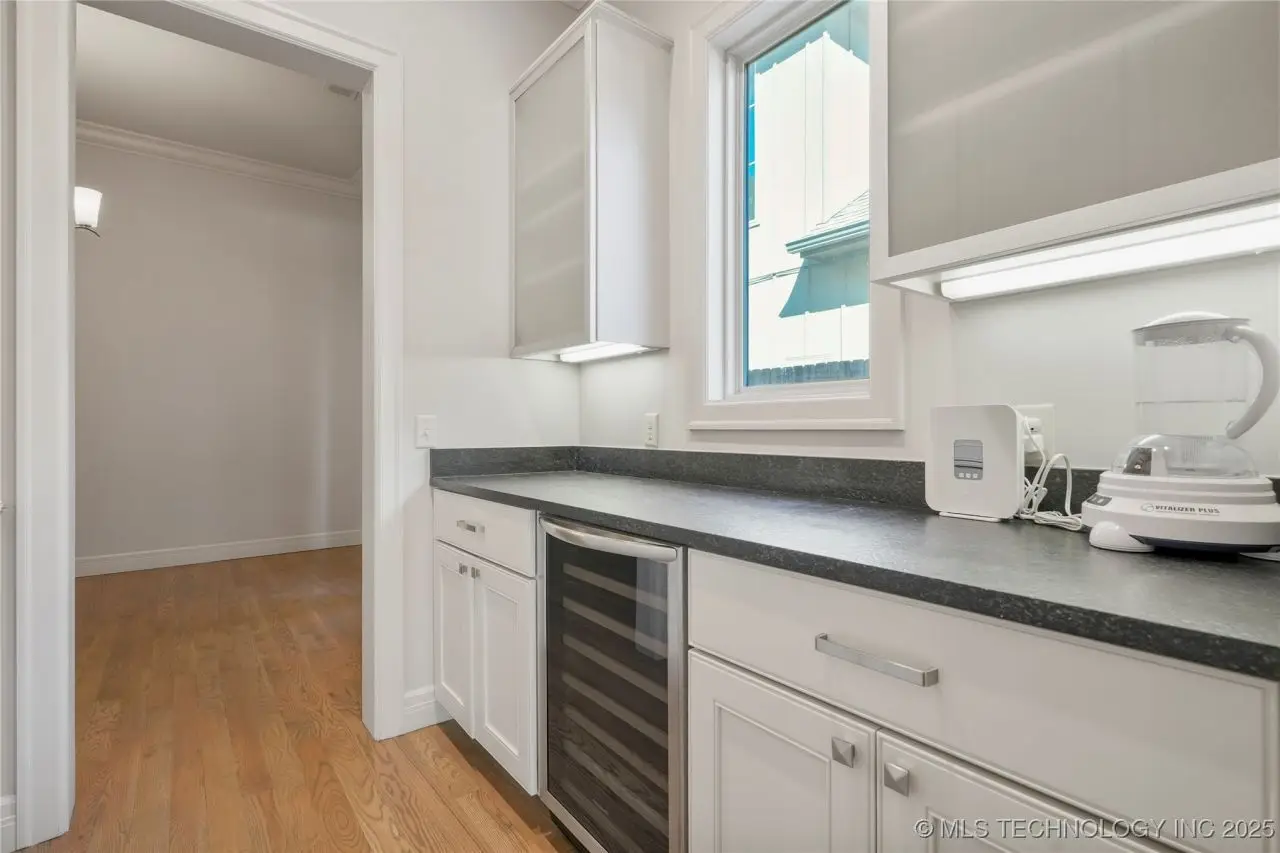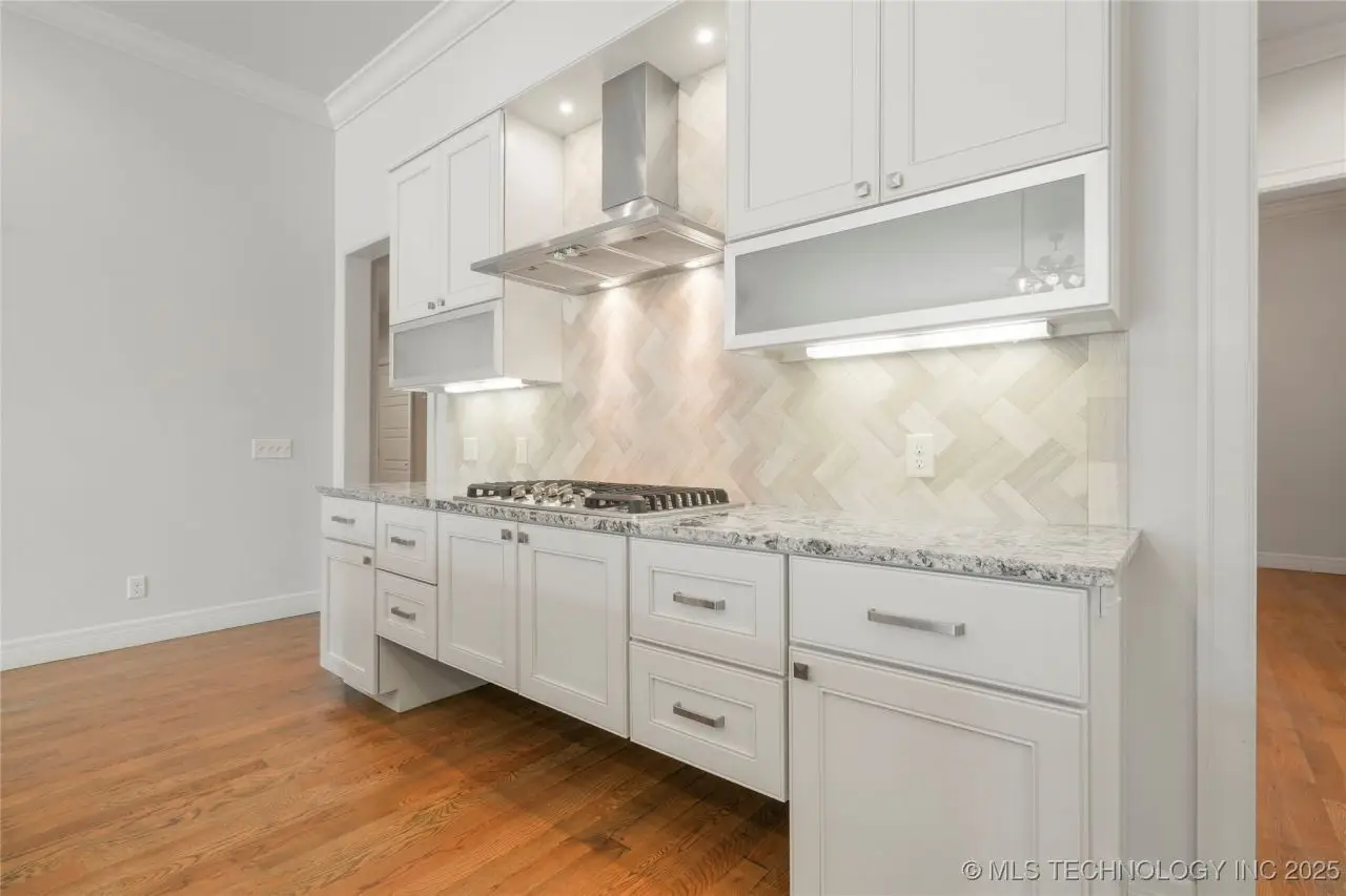 Beautiful English Tudor style home in Prime Brookside offering a split bedroom plan with two first-floor suites! The center island kitchen and den great room feature high ceilings, exotic granite, gas cooktop butler's pantry with abundant storage and wine captain. Impressive floor-to-ceiling brick hearth fireplace with gas logs, wall of windows overlooking the covered patio with gas log fireplace and informal seating at the island. There is a flexible space perfect for an office, small den, gaming space or can be used as a breakfast room! The primary suite has vaulted ceiling, large window, and flows into the spacious private bathroom with honed granite countertop, separate shower, whirlpool tub, outlets inside cabinetry, a TV cabinet, and private commode. Primary suite closet flows into the utility room - also with honed granite counter tops. All cabinetry made by Jay Rambo. The garage-to-home entry hall offers built-in storage and a powder bathroom. The third & fourth bedrooms upstairs are connected by a pullman bathroom. Wood-rung staircase. Impressive crown and base molding throughout! Aqua Sauna Whole Home Water Filtration system included. Built in 2014 by Mike Alexander. A few blocks from Brookside shops and dining!