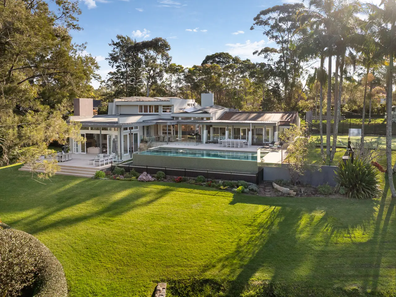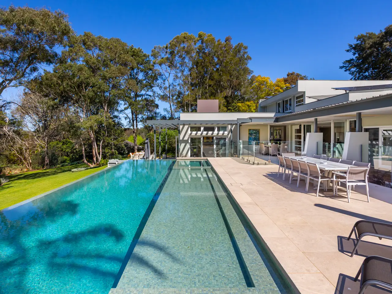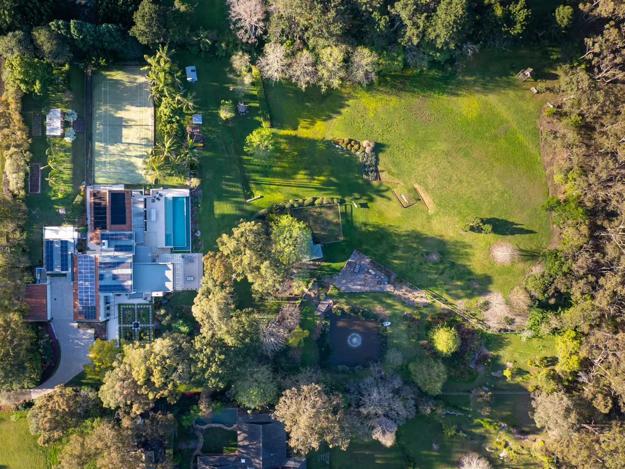 A landmark estate and one of the largest landholdings on the Upper North Shore, this spectacular residence commands 14,780sqm (3.7 acres) of manicured grounds adjoining Garigal National Park. Combining the convenience of a city address with the scale and presence of a country manor, its original mid-century bones have been masterfully reimagined by acclaimed artist and designer Thomas Bucich. Now transformed into a resort-inspired sanctuary, every detail reflects an uncompromising commitment to luxury and comfort. A reconfigured floor plan delivers an array of fluid open spaces with a seamless connection to the magnificent outdoors, where a 14m heated infinity-edge pool crowns sweeping lawns, exquisitely sculpted gardens and a full-size N/S tennis court. With no neighbours in sight, the home also features five bedrooms, two home offices, a self-contained two-bedroom cottage, billiard room, a 2000+ bottle climate-controlled wine cellar and garaging for five cars, all accessed via secure gates and a meandering private driveway. Unmatched in size, beauty and seclusion, this is a once-in-a-lifetime offering. From this premier pocket, enjoy station buses at the door with easy access to North Turramurra Golf Course, village shops and many of the Upper North Shore's leading schools. - Sun-filled family living with floor-to-ceiling glass, wood fire and 3m ceilings - Banquet-sized formal dining with additional wet bar - Dedicated billiard or rumpus room with access to courtyard - Custom entertainer's kitchen, Quartzite benchtops and polyurethane cabinetry - Premium European appliances including induction cooking and pulse oven - Centrepiece open plan living extending seamlessly to the outdoor setting - Sunken formal lounge with fireplace, opens to pond and rolling lawns - Stone paved all-weather terrace perfect for soaking in the garden vistas - 14m mosaic-tiled heated infinity-edge pool and sprawling manicured gardens - Full size synthetic grass N/S tennis court and multiple intimate outdoor settings - Secluded master suite with dressing room and a spa ensuite with dual vanity - Five additional double bedrooms includes a 2nd serviced with an ensuite - Two home offices, custom joinery and ducted air conditioning throughout - Fully self-contained two-bedroom cottage with separate entry - Five-car garaging, EV charger, 30KW solar system with a 22KW battery - 2000-bottle cellar, irrigation system, automatic gates and intercom entry - Turramurra station buses at the door with easy access to the Village hub - Moments to Turramurra PS, Knox, Abbotsleigh, PLC and Barker College Disclaimer: Whilst all care has been taken to ensure accuracy in the preparation of the particulars herein, no warranty can be given, and interested parties must rely on their own enquiries.