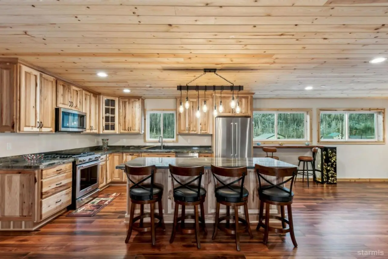 Looking for a beautiful mountain home that is just minutes from Lake Tahoe? Look no further, this picturesque mountain retreat is nestled next door to the Sierra at Tahoe ski resort atop the scenic Sierras. Located in Phillips Heights, this brand-new construction is waiting for your arrival. Be part of the warming rebirth of this beloved small private community as it re-establishes itself from the wildfires of 2021. Boasting over 2400 sq ft of living space and sitting on just under 30,000 sq ft of land, this home offers all that the outdoor enthusiast longs for. Imagine having access to miles upon miles of skiing, snowshoeing, and with all the hiking and biking trails right from your front door. Close access to the Pony Express Trail, Echo Lakes, Aloha Lake and Desolation Wilderness. Best of all, you are less than 20 minutes from Lake Tahoe and all it has to offer. This custom 3 bed, 2.5 bath home adorned by generous decking, Hardieback and corrugated siding, solid oak doors and a hefty metal roof. The interior offers LVP flooring, surround sound, recessed lighting, and a lovely great room with an open 2nd floorplan concept. The open floor plan offers a wonderful kitchen filled with self-closing hickory cabinets with pull out drawers, quartz countertops, a gas range and Kitchen Aide appliances complimented by the oak touches throughout. Downstairs level hosts a powder room, private seating area for TV time and the heat is provided by a cozy charming pellet stove. The upstairs level provides three bedrooms, a guest bathroom, and a main bedroom with a private bath. Two of the bedrooms share an outdoor covered deck to take in all of Mother Nature's wonderful handiwork. Both bathrooms are embellished by quartz, heated slate floors with custom stone and tile showers. Of course, with a brand-new home comes the benefits of new plumbing, new on demand H20, fire suppression system and new electrical which also provides heat for the upstairs bedrooms. This is truly a mountain dream!
