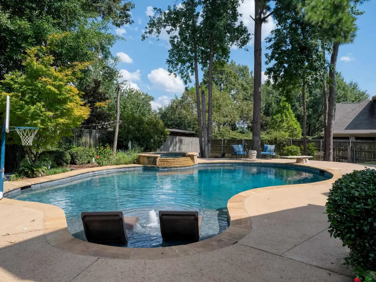 Make plans to visit this gorgeous estate home in the Holly Star neighborhood. Upon entering you feel the warmth of a large study with multiple storage areas, accented by beautiful custom hardwood trim, distressed hardwood & brick flooring. This retreat features 2 spacious living areas, formal dining, all within an open concept. The kitchen is ready for entertaining with granite countertops, abundant storage, gas cooktop, double ovens, walk-in pantry, planning desk & breakfast bar. The master bedroom is private, spacious & features an oversize ensuite bath & walk-in closet. Downstairs also has a guest bedroom with attached bath. Entering the 2nd floor there are 3 bedrooms, 2 additional baths, a large game room with built-ins & large holiday storage area plus floored attic storage. Relax in the serene backyard oasis. the sparkling pool features a waterfall & beachside entry. Sit under the covered porch & enjoy a private backyard setting. This home has all the luxuries that family & friend gatherings require. Holly Star is within the Hollytree Country Club which has swimming, tennis, golf & fine dining. DON'T WAIT on this fabulous home!