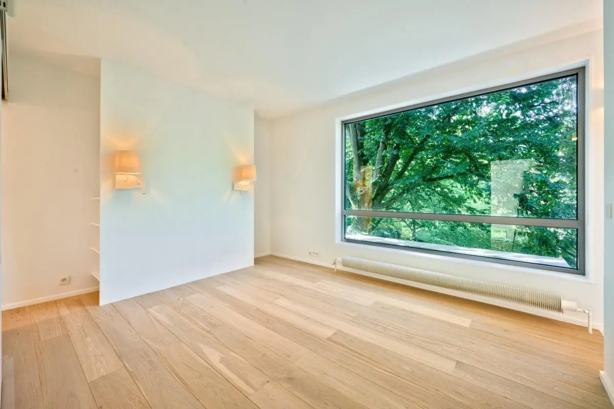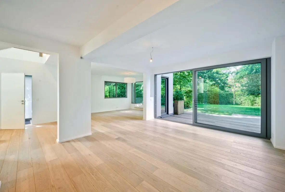 In the highly sought-after residential neighbourhood of l'Observatoire, this contemporary villa with three façades, built in 2002 in a triplex style, charms with its architectural originality and beautiful south-west facing private garden (± 10 ares 50). With a living area of approximately 350 m², the house is spread over split levels and offers spacious reception rooms on two levels, an elegant, fully equipped kitchen and a library area. The upper floor comprises 4 bedrooms and 3 bathrooms. A garage and ample outdoor parking facilities complete the property. EPC: C- (currently being updated). A bright and functional contemporary villa in the heart of a quiet and green neighbourhood in Uccle.