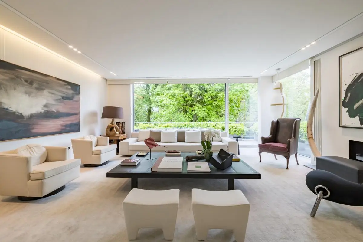 In the sought-after Observatoire district, this 234 m² penthouse, located on the top floor of a residence designed by Marc Corbiau (1999), is exceptionally bright and in perfect harmony with nature. Its light-filled reception rooms open onto vast 150 m² terraces, offering uninterrupted views over the lush surroundings. The fully-equipped kitchen fits perfectly into this elegant, uncluttered space. The Apartment includes a bedroom with en suite bathroom, a study and the possibility of creating a second bedroom with an additional shower room. This unique property also benefits from three private garages and individual heating. EPC D