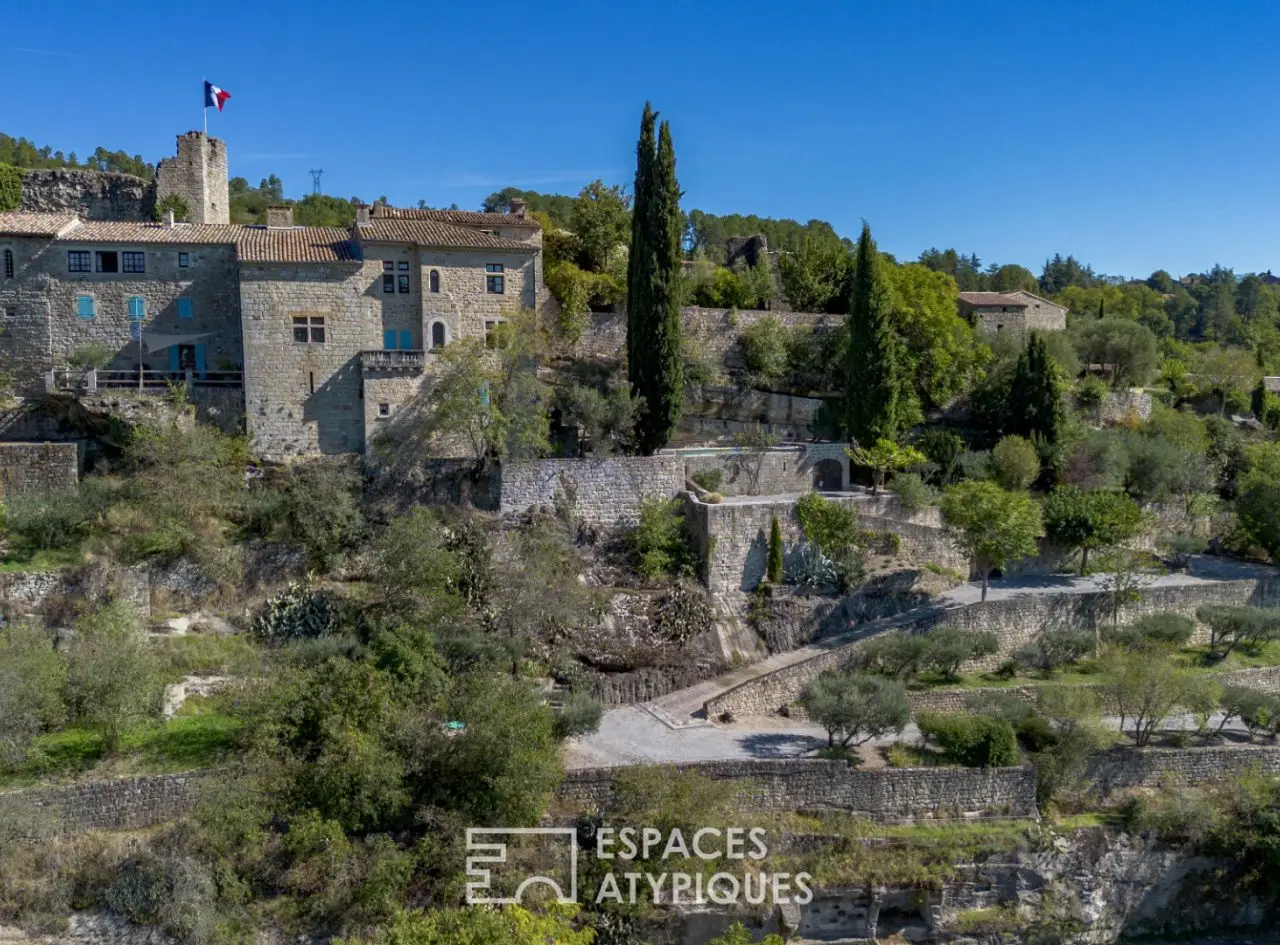 Situe a mi-chemin entre Aubenas et la ville thermale de Vals les Bains, ce chateau medieval magnifiquement restaure perche au-dessus de la vallee de l'Ardeche invite a une vie paisible et authentique, au coeur d'un environnement naturel preserve et soigneusement restaure.