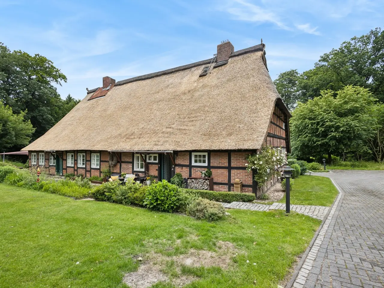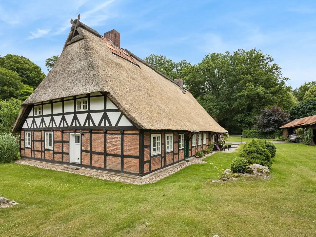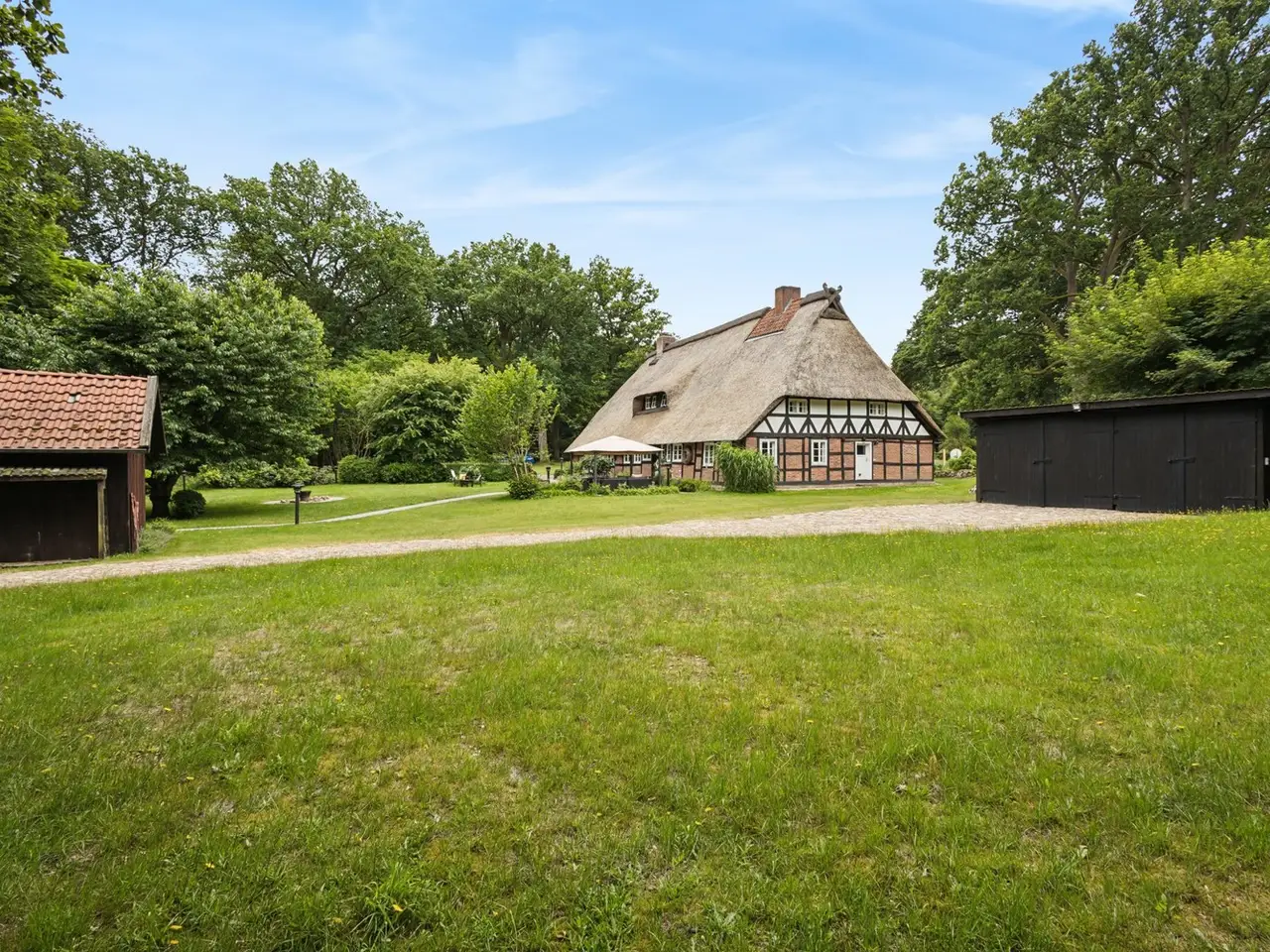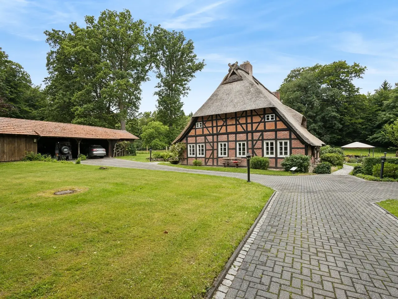 Here you can make your dream of living, living and working come true. Discover this extraordinary house that combines tradition and modernity. This impressive old house has retained its character for around 200 years; it was originally built in the 18th century in traditional half-timbered construction. The listed building stands on a plot of around 4,000 m². Of this, around 1,391 m² is leasehold land and around 2,600 m² is leased land. This beautiful half-timbered house with the thatched roof typical of the heath stands free in the middle of a large forest plot in the northern nature reserve between Schneverdingen, Bispingen and Undeloh and offers you a unique combination of peace, beauty and urban accessibility. The house has a floor area of around 22 mx 12 m and has a living/usable area of around 225 m² on the ground floor and a living/usable area of around 111 m² on the top floor. The outbuildings complement the space available. These include a carport for two vehicles each and a tool shed, another carport for two vehicles with a shelter and a workshop building/garden house. We look forward to hearing from you and will be happy to inform you about all the details of the property in a personal meeting. Position In the midst of untouched nature and yet close to the amenities of everyday life: your new home in the nature reserve between Schneverdingen, Bispingen and Undeloh offers you a unique combination of peace, beauty and urban connections. Welcome to a life that is shaped by the incomparable beauty of the nature reserve. This special property, embedded in the majestic forests and extensive heathland, invites you to take long walks, hikes and bike rides. Wilseder Berg is about 3.5 km away on foot. The calming silence of nature accompanies you day after day, while birdsong pampers your senses and, with a little luck, you encounter native animals such as deer, hares or foxes. Nevertheless, you do not have to forego the amenities of everyday life: the town of Schneverdingen and the towns of Bispingen and Undeloh as well as the town of Buchholz offer a variety of shops, restaurants, schools and medical facilities that can be reached in a short time. This harmonious connection between man and nature is complemented by the excellent connection to the national transport network. From the location you can reach the A7 motorway, Bispingen junction in approx. 17 km, the Egestorf junction in approx. 11.5 km, the A1, Rade junction in approx. 28 km and the Wintermoor train station in approx. 5 km. With the regional train you can reach Hamburg Central Station in approx. 1 hour. This gives you convenient connections to the metropolis of Hamburg, Bremen and other cities. Enjoy the best of both worlds: a life in harmony with nature and the advantages of being close to the vibrant metropolises of Hamburg and Bremen, which can be reached in approx. 40 minutes by car. Welcome to the heath, your very own personal retreat in the nature reserve. Furnishing Residential building, built around the 18th century (individual monument with existing monument protection). The historical building materials such as brick, some fieldstone foundations and the traditional craft techniques of half-timbered construction such as wooden nails, load-bearing interior post construction (farm posts) and ceiling beams of a typical Lower Saxon two-post hall house have been preserved. The partly old original doors and lattice windows are also a special eye-catcher. The windows were supplemented with a second insulating glazing to protect the partly historic lattice windows and to optimize the house's energy efficiency. In 2016, eleven historic exterior windows were replaced. In almost all rooms, one window is equipped with insect screens. The traditional thatched roof dates from around 1989/1996 and has been maintained and revised several times since then; the heather ridge was renewed in around 2022. The house was extensively modernized and renovated in around 1989 and around 2009 after the respective changes of ownership. In 2010, the house was provided with subsequent wall insulation. Almost all of the cavity walls in the hollow layer were filled with Duroperl 035 insulation granulate. The spacious kitchen-diner was renovated around 2003 and equipped with a country kitchen (the appliances are around 3 years old). There is an oven in the dining area, which adds to the coziness. There is another oven in the living room. The floors on the ground floor are mostly covered with modern flooring from Project Flors rustic oak with black joints. There is laminate flooring in the office and dressing room. The wet areas are of course tiled. The attic is covered with sisal flooring or carpet. The three modern bathrooms from 2018 are particularly noteworthy. There are two bathrooms on the ground floor, a bathtub and a large shower room, the latter with underfloor heating. All three bathrooms are equipped with high-quality stretch ceilings. On the ground floor there is a sauna (wet and dry) from the Rensch Saunabau brand. It was installed around 2018. A new shower room was installed in the attic in 2018. There is also a separate toilet in the attic. The heating is a Viessmann oil heating system built around 1996, with an external underground tank, capacity approx. 5000l. The water supply is via a drinking water well. The waste water is treated using a 4-chamber treatment system. The internet is provided via Starlink Highspeed. The garden mainly presents itself with a spacious lawn, which is lovingly complemented by rhododendrons and colorful perennial flowers. There is beautiful outdoor lighting and motion detectors around the house. The house and garden are beautifully lit in the evening. The costs for the approximately 1,391 m² leasehold property are €2,500 per year and for the approximately 2,600 m² leasehold land €145 per year. The property has open lawns and no fencing. Other Information MONEY LAUNDERING: As a real estate bro