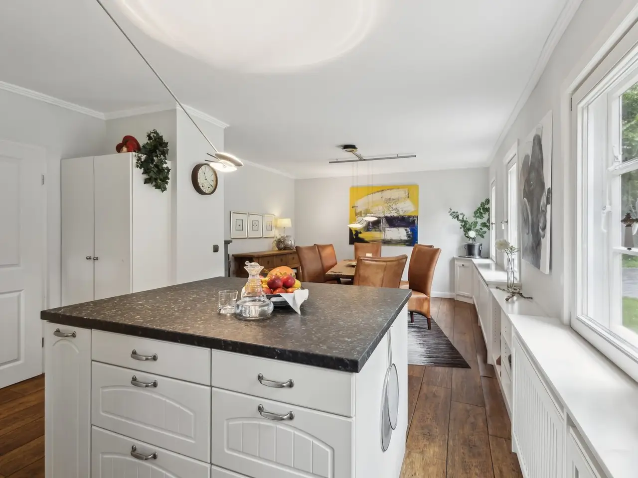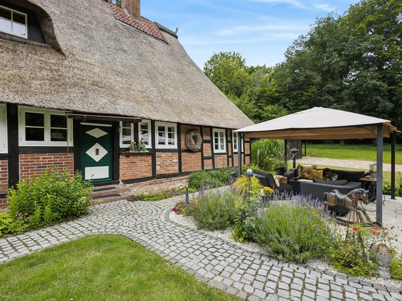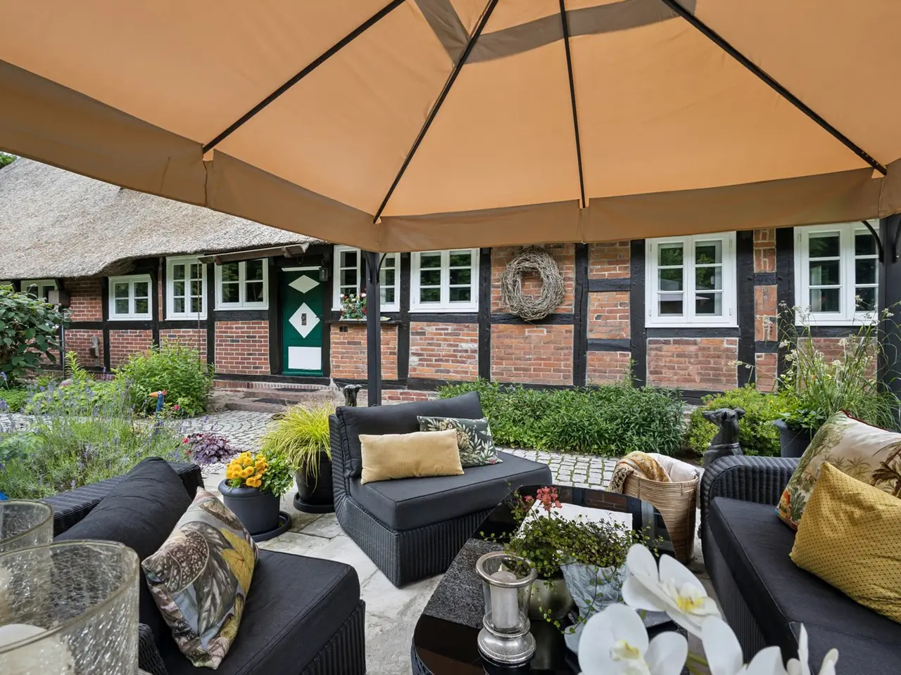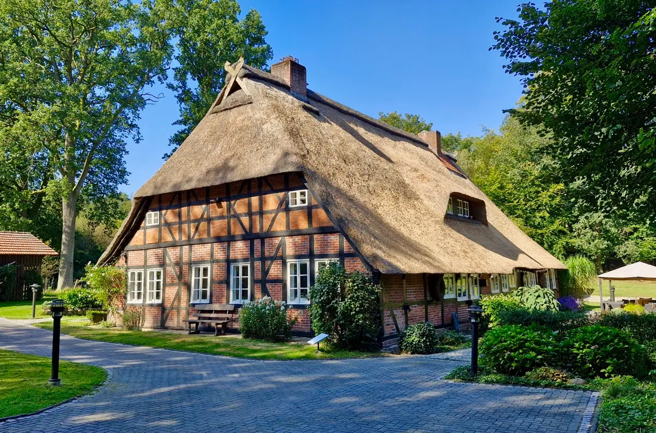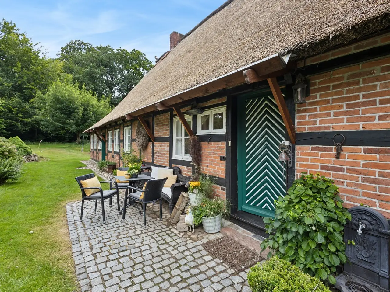 Here you can make your dream of living, living and working come true. Discover this extraordinary house that combines tradition and modernity. This impressive old house has retained its character for around 200 years; it was originally built in the 18th century in traditional half-timbered construction. The listed building stands on a plot of around 4,000 m². Of this, around 1,391 m² is leasehold land and around 2,600 m² is leased land. This beautiful half-timbered house with the thatched roof typical of the heath stands free in the middle of a large forest plot in the northern nature reserve between Schneverdingen, Bispingen and Undeloh and offers you a unique combination of peace, beauty and urban accessibility. The house has a floor area of around 22 mx 12 m and has a living/usable area of around 225 m² on the ground floor and a living/usable area of around 111 m² on the top floor. The outbuildings complement the space available. These include a carport for two vehicles each and a tool shed, another carport for two vehicles with a shelter and a workshop building/garden house. We look forward to hearing from you and will be happy to inform you about all the details of the property in a personal meeting. Position In the midst of untouched nature and yet close to the amenities of everyday life: your new home in the nature reserve between Schneverdingen, Bispingen and Undeloh offers you a unique combination of peace, beauty and urban connections. Welcome to a life that is shaped by the incomparable beauty of the nature reserve. This special property, embedded in the majestic forests and extensive heathland, invites you to take long walks, hikes and bike rides. Wilseder Berg is about 3.5 km away on foot. The calming silence of nature accompanies you day after day, while birdsong pampers your senses and, with a little luck, you encounter native animals such as deer, hares or foxes. Nevertheless, you do not have to forego the amenities of everyday life: the town of Schneverdingen and the towns of Bispingen and Undeloh as well as the town of Buchholz offer a variety of shops, restaurants, schools and medical facilities that can be reached in a short time. This harmonious connection between man and nature is complemented by the excellent connection to the national transport network. From the location you can reach the A7 motorway, Bispingen junction in approx. 17 km, the Egestorf junction in approx. 11.5 km, the A1, Rade junction in approx. 28 km and the Wintermoor train station in approx. 5 km. With the regional train you can reach Hamburg Central Station in approx. 1 hour. This gives you convenient connections to the metropolis of Hamburg, Bremen and other cities. Enjoy the best of both worlds: a life in harmony with nature and the advantages of being close to the vibrant metropolises of Hamburg and Bremen, which can be reached in approx. 40 minutes by car. Welcome to the heath, your very own personal retreat in the nature reserve. Furnishing Residential building, built around the 18th century (individual monument with existing monument protection). The historical building materials such as brick, some fieldstone foundations and the traditional craft techniques of half-timbered construction such as wooden nails, load-bearing interior post construction (farm posts) and ceiling beams of a typical Lower Saxon two-post hall house have been preserved. The partly old original doors and lattice windows are also a special eye-catcher. The windows were supplemented with a second insulating glazing to protect the partly historic lattice windows and to optimize the house's energy efficiency. In 2016, eleven historic exterior windows were replaced. In almost all rooms, one window is equipped with insect screens. The traditional thatched roof dates from around 1989/1996 and has been maintained and revised several times since then; the heather ridge was renewed in around 2022. The house was extensively modernized and renovated in around 1989 and around 2009 after the respective changes of ownership. In 2010, the house was provided with subsequent wall insulation. Almost all of the cavity walls in the hollow layer were filled with Duroperl 035 insulation granulate. The spacious kitchen-diner was renovated around 2003 and equipped with a country kitchen (the appliances are around 3 years old). There is an oven in the dining area, which adds to the coziness. There is another oven in the living room. The floors on the ground floor are mostly covered with modern flooring from Project Flors rustic oak with black joints. There is laminate flooring in the office and dressing room. The wet areas are of course tiled. The attic is covered with sisal flooring or carpet. The three modern bathrooms from 2018 are particularly noteworthy. There are two bathrooms on the ground floor, a bathtub and a large shower room, the latter with underfloor heating. All three bathrooms are equipped with high-quality stretch ceilings. On the ground floor there is a sauna (wet and dry) from the Rensch Saunabau brand. It was installed around 2018. A new shower room was installed in the attic in 2018. There is also a separate toilet in the attic. The heating is a Viessmann oil heating system built around 1996, with an external underground tank, capacity approx. 5000l. The water supply is via a drinking water well. The waste water is treated using a 4-chamber treatment system. The internet is provided via Starlink Highspeed. The garden mainly presents itself with a spacious lawn, which is lovingly complemented by rhododendrons and colorful perennial flowers. There is beautiful outdoor lighting and motion detectors around the house. The house and garden are beautifully lit in the evening. The costs for the approximately 1,391 m² leasehold property are €2,500 per year and for the approximately 2,600 m² leasehold land €145 per year. The property has open lawns and no fencing. Other Information MONEY LAUNDERING: As a real estate bro
