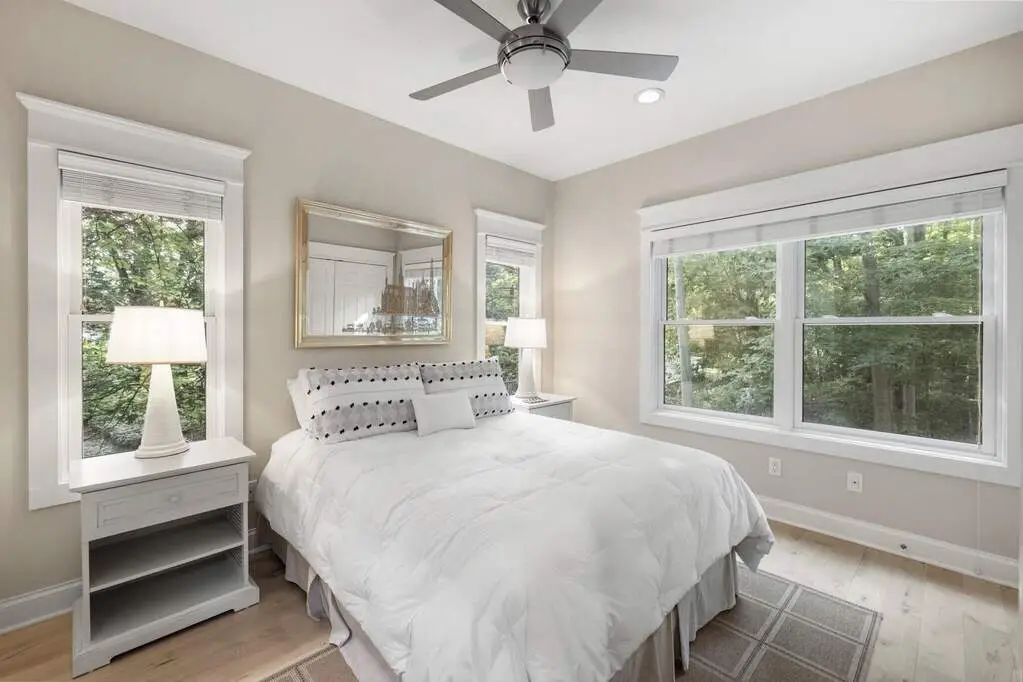 Just steps from the private sands of Gordon Beach, this architectural coastal cottage captures the essence of Harbor Country living with its signature double screened porches and timeless design. This home blends craftsmanship with modern comfort. The main level is anchored by an open great room with soaring ceilings & a stone fireplace, flowing into a gourmet kitchen appointed with upgraded appliances and custom Ash hardwood floors. Thoughtful details include a second stone fireplace in the upper level primary, expansive decks, and two levels of screened porches that blur the line between indoors and out. With 4-5 bedrooms and 3 full baths, the layout provides flexibility for guests or multi-purpose living. A generous lower-level bonus room offers a second gathering space, while the two-car garage is equipped with an EV charging station. Low-maintenance exterior finishes ensure the home lives as easily as it entertains!