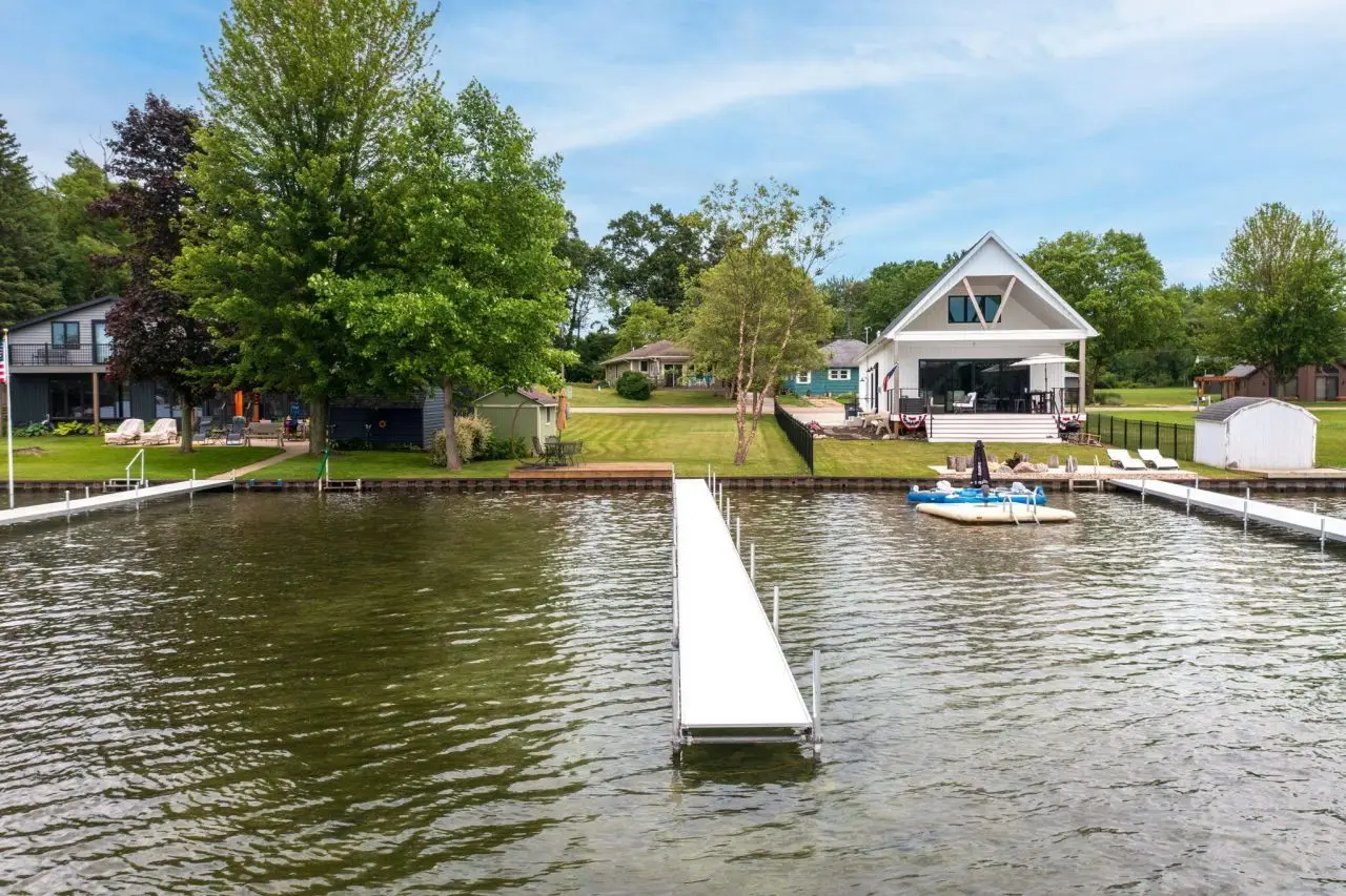 THIS TIDY AND WELL-MAINTAINED LAKE PROPERTY IS COMPRISED OF 4 TOTAL LOTS ON HIGHLY SOUGHT AFTER BALDWIN LAKE. THE HOME SITS ON ONE LOT WITH AN OPEN LAKEFRONT LOT ACROSS THE ROAD WITH UNOBSTRUCTED LAKE VIEWS AND 2 LARGE ADJACENT LOTS ON THE SIDE AND BACK. The home features an elevated kitchen with Brazilian Walnut floors and overlooks the dining and living area with a gas fireplace insert. In addition, there is a second living area on the upper level. The PRIMARY BEDROOM has a full bath and walk-in closet plus there is a second bedroom, laundry room and second bathroom. The house also has a clean, dry basement and 200 amp service. Enjoy sitting on the outside composite deck with a rollout awning or grilling on the backyard patio. Baldwin Lake is all sports, 45 minutes to Notre Dame and 2 and a half hours from Chicago.
