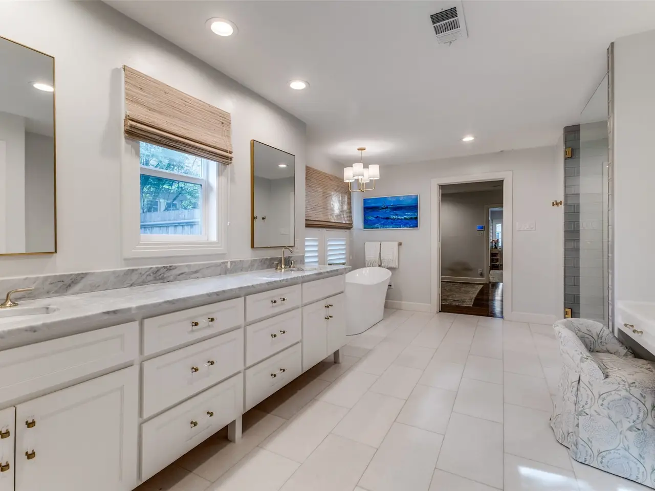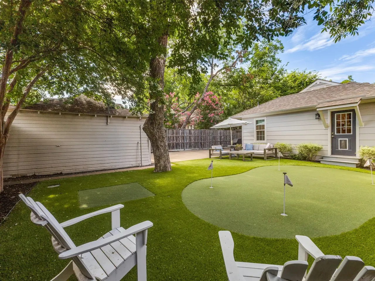 This exceptionally charming, impeccably maintained Park Cities cottage offers a tastefully updated open floor plan with delightful designer touches throughout. A welcoming covered porch with a quaint seating area and porch swing sets the stage for the lovely setting one encounters upon entering this desirable home. The front living room adorned in natural light, seamlessly transitions to an elegant dining room, followed by a dreamy open kitchen. This ultra spacious kitchen anchored by a large center island with white quartz counters, stainless appliances including a gas range, double ovens, a wine fridge and abundant storage provides the ultimate gathering space for the home. An adjacent mudroom accommodates a full size washer-dryer, locker and cubby space and a convenient half bath serving the back entry. A second downstairs living area offers ideal space for a playroom, media room or study and is complete with an adjacent full bath. The first floor primary suite is luxurious and extremely functional for a home of this scale. Relax and indulge in a spa-like setting with a free-standing tub, large walk-in shower, dual vanities, designed in an elegant crisp white finish A generous walk-in closet completes the owners retreat. Upstairs houses two symmetrical front facing bedrooms with quaint valued ceilings along with a third bedroom which could easily serve as a nursery, playroom or office with a shared upstairs bathroom. An easy low-maintenance turfed backyard includes a putting green providing for entertainment for all ages! The front driveway has a privacy gate and offers direct access to the detached 2-car garage. This move-in ready home offers convenient proximity to University Park Elementary, Holmes Aquatic Center (UP Pool), multiple neighborhood parks and walkability to Snider Plaza dining and shopping. Hurry, this gem will not last long!