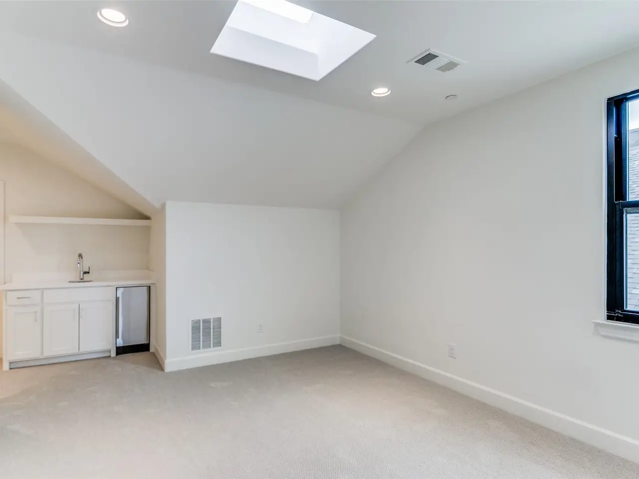 Look forward to being the first owner of this New Construction single-family attached home by well-known builder J Gregory Homes, with completion in September. Enjoy entertaining in your spacious living room with fireplace and wet bar, open to the dining area & kitchen, with glass doors out to the turfed side yard. Preparing meals will be a pleasure in your large island kitchen, featuring a breakfast bar, gas range with double electric ovens, built-in refrigerator, & walk-in pantry. The downstairs bedroom with ensuite bath serves as a guest suite or your private home office. Retreat upstairs to your primary bedroom suite and luxurious bath with dual vanities, freestanding tub, separate double shower, plus abundant closet space with built-in drawers & shelves. Three additional bedrooms with walk-in closets, two baths, and a full-size laundry room complete your second level. Your third level offers a multi-purpose game room or living area with wet bar plus a full bath. Enjoy a low maintenance lifestyle with all new amenities in a prime University Park location, walkable to SMU, Highland Park Middle School, Williams Park, Centennial Park, Curtis Park & pool, and Snider Plaza shopping & dining!