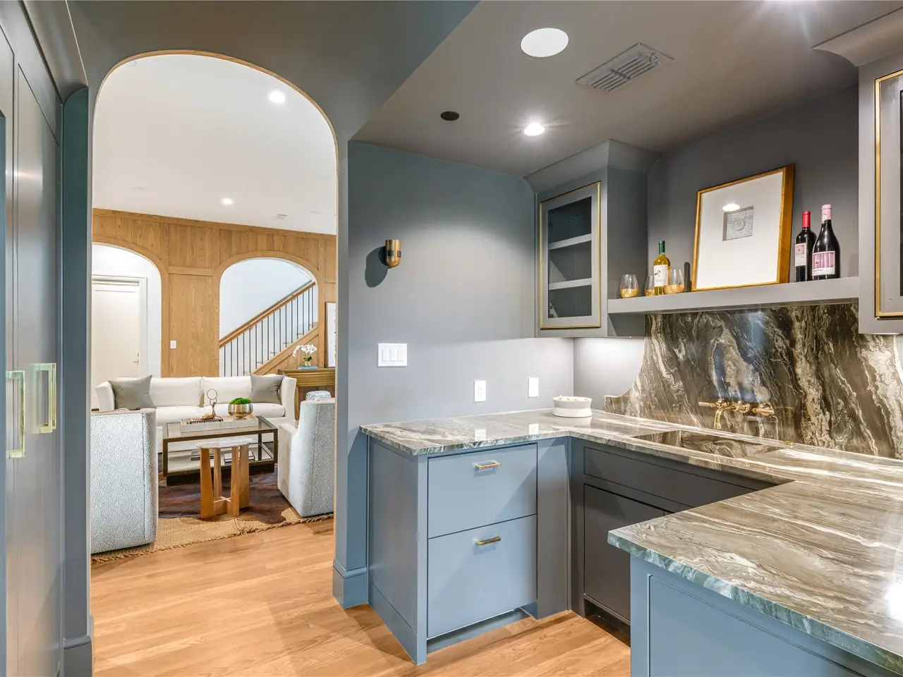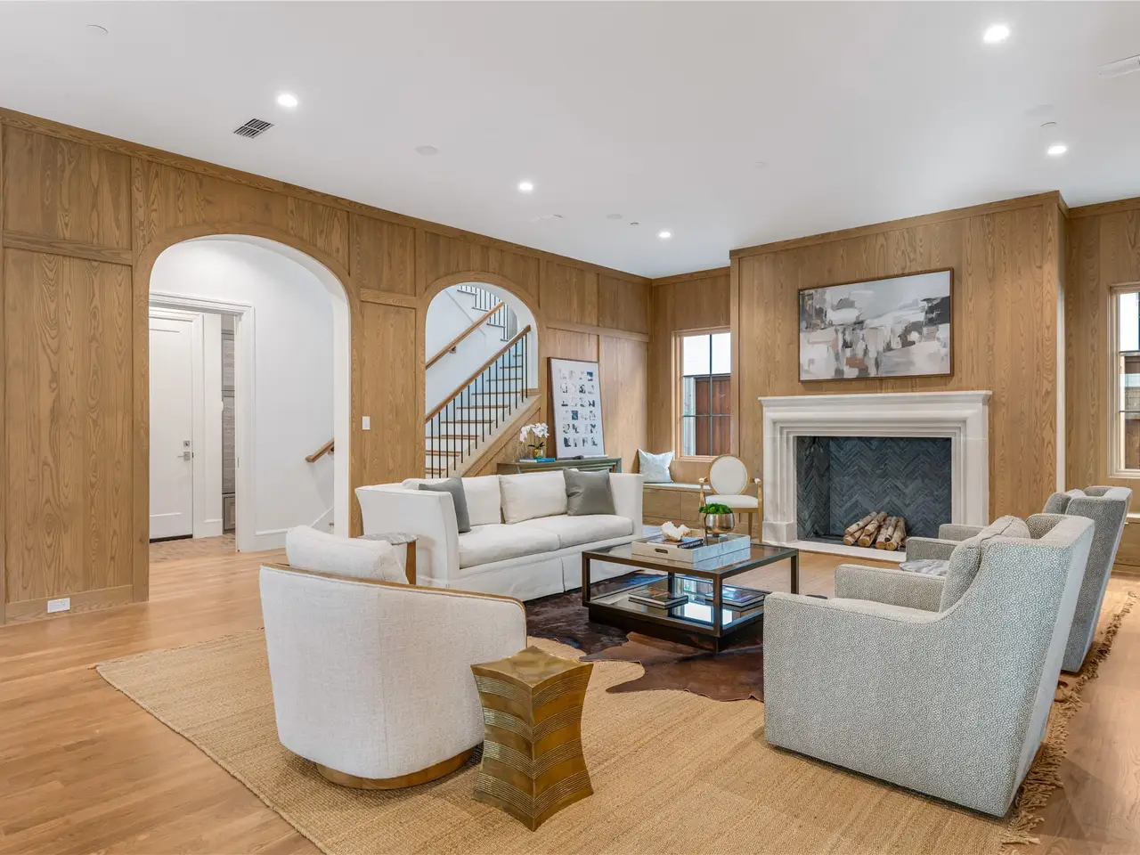 An exceptional new-construction estate located at 4104 Greenbrier Dr, University Park, TX 75225, is now available for purchase, with completion expected in late summer 2025 by Campbell Custom Homes. This transitional-style residence offers approximately 6,000 square feet of elegant living space, featuring 5 bedrooms and 5.2 baths. A striking covered entry corridor with a tranquil water fountain feature leads to the front door, creating a serene and memorable first impression. Inside, a light-filled foyer welcomes you, flanked by a formal living room with an adjoining office or library and a warm, wood-paneled family roomboth connected by a stylish walk-through bar. The home also includes a sophisticated dining room with a built-in buffet and china cabinet, seamlessly flowing into a chef’s kitchen outfitted with wolf & sub-zero appliances, a white oak island, oversized fireplace, adjacent scullery, and a beautifully finished walk-in pantry. Upstairs, the luxurious primary suite serves as a private retreat, complete with a cozy sitting area, spa-inspired bathroom, and a convenient coffee bar at the entry. Expansive nano doors open to a spacious backyard, perfect for indoor-outdoor living. Located within the highly sought-after Highland Park ISD and zoned to Hyer Elementary, this property offers luxury living, top-tier education access, walkability to Preston Centers shops and restaurants, and timeless design in the heart of University Park.