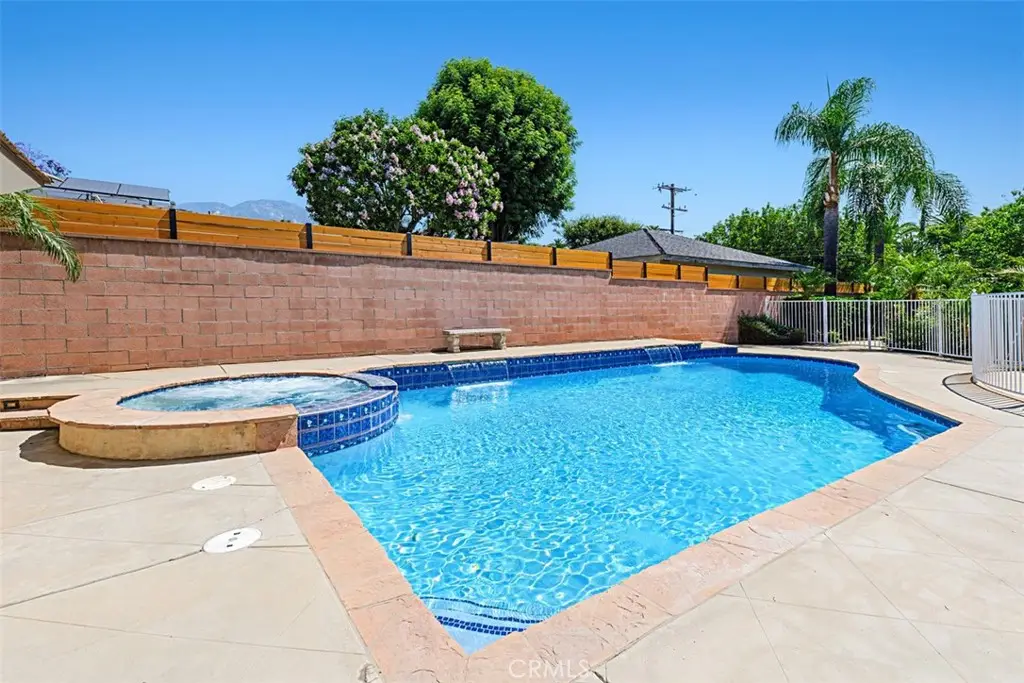Must See! Fully Remodeled Pool Home -- Experience modern luxury in this stunning single-story estate, perfectly situated on a sprawling corner lot of over half an acre in one of Upland's most coveted neighborhoods. Behind a private gated entrance, this Turnkey residence offers 3 spacious bedrooms, 3 designer bathrooms, and 2,549 sq ft of impeccably curated living space--plus a 200 sq ft bonus room ideal for a home office, gym, or guest suite. Designed for effortless living and entertaining, the open-concept layout features a striking great room and separate living room both with elegant fireplaces, and a show-stopping HUGE chef's kitchen featuring custom cabinetry, soft-close drawers, bold waterfall-edge quartz countertops with large island, complete with bar seating area, flowing backsplash, statement pendant lighting, and high-end Formo appliances. Additional highlights include new water heater, A/C and Heater only 1 year old, and 5 year warranty on the roof. The primary suite is a true retreat, complete with dual His-and-Hers walk-in closets and a spa-inspired ensuite bath featuring a massive walk-in shower, dual-sink vanities, a soaking tub, and serene designer finishes. Generously sized secondary bedrooms include modern ceiling fans, while the guest bathroom offers its own walk-in shower, soaking tub, and dual vanity. Throughout the home, enjoy wide-plank luxury flooring, new baseboards, designer recessed lighting, dual-pane windows, and timeless plantation shutters. A premium surround sound system extends from the living spaces to the backyard, creating a seamless indoor-outdoor ambiance. Step outside to your private resort-style paradise--featuring a sparkling pool and spa, a built-in Viking BBQ area, and a tree lined walk way that leads the way to a stylish cabana lounge with ceiling fan for year round comfort. There is also a convenient poolside mudroom with a bathroom which has a walk-in shower and floating vanity. The finished three-car garage includes epoxy floors and ample built-in storage. The extended driveway offers space for multiple vehicles and even the potential for future RV parking. Every inch of this home has been thoughtfully reimagined to offer unmatched comfort, style, and sophistication in the heart of Upland. The interior stuns from the moment you walk in and the outdoor space is an entertainers dream perfect for creating memories with friends and family or quietly enjoying the private paradise.This home will go fast!