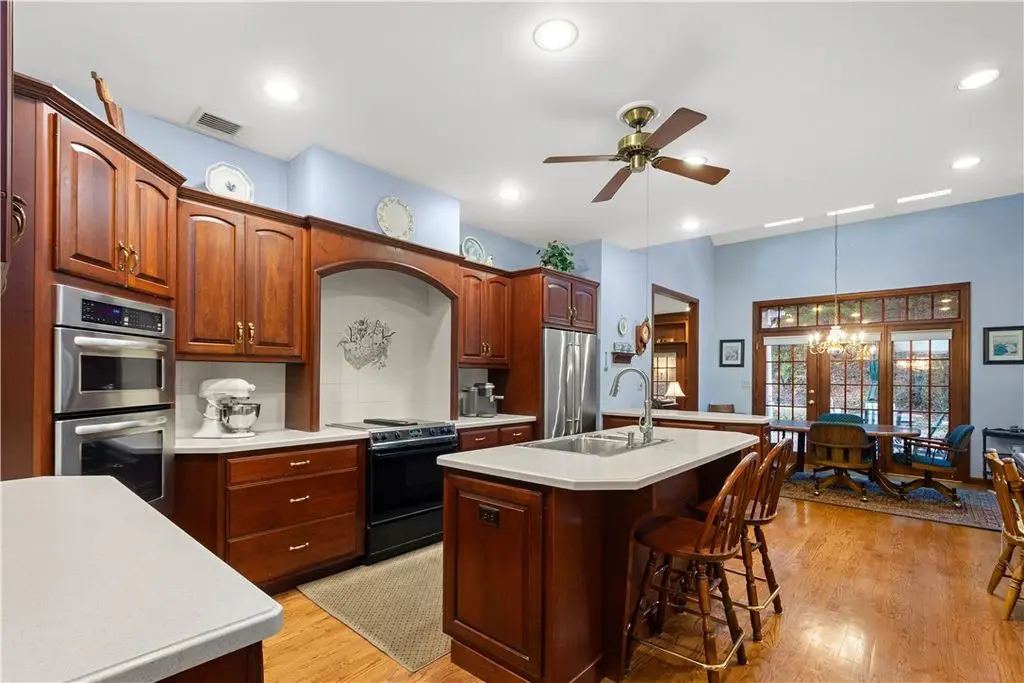 Custom built sprawling Cape Cod offers exquisite millwork & timeless quality construction in the heart of USC. Sunlight fills the sunken great room w/ floor to ceiling windows & vaulted ceiling. The large kitchen w/ custom cabinetry, walk-in pantry & breakfast nook opens to both the formal dining room & family room with built-ins, wet bar & fireplace. The main level primary suite is massive, anchored by a gas fireplace & offers a massive walk-in closet. A secondary main floor bedroom with built-ins & full bath offers multi-gen options. Upstairs, 2 bedrooms feature multiple closets & share a jack-jill bath, plus 2 huge walk-in storage closets. The finished gameroom w/ custom bar means you'll always be hosting parties. 5th bedroom & full bath offers even more flexibility. Outside, landscape lighting, mature landscaping & sprinkler system allow you to enjoy the nearly half-acre lot. An oversized 3 car garage that fits 5 cars & 2 huge unfinished storage rooms offer unparalleled storage.