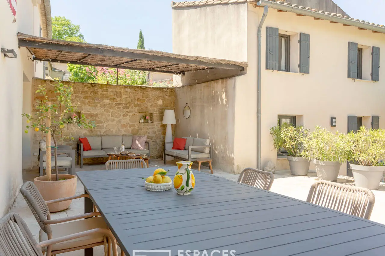 Hidden from view, in the heart of a typically Uzes stone setting, this 258sqm property reveals itself as a hidden treasure, just a few steps from the lively Place aux Herbes.Two houses, like two breaths of fresh air. One family-friendly, generous, bathed in light. The other, more intimate, perfect for friends, grown-up children, or the stays of passing guests. Between the two, a garden like a refuge, and a long, gentle Roman-style swimming pool, heated to better stretch out the sunny days.The ancient stone tells the story of the place, while the large openings write that of a bright daily life, open to the outside. Everywhere, light enters, soft and natural, gliding over the walls and highlighting the nobility of the materials.The main house opens onto a generous 60 sqm living space, where the volumes interact seamlessly: open kitchen, dining room, living room around a gas fireplace, designed for winter evenings when we still dream of summer.Two bedrooms, a bathroom and toilets complete this level. Upstairs, three additional bedrooms, two with private bathrooms, a large dressing room and two toilets invite you to relax. Everything is air-conditioned, fluid, functional and yet unique.The guest house, meanwhile, offers two bedrooms, a bathroom, a living room with kitchen, and opens onto a shaded terrace, ideal for slow reading or endless conversations.Two independent entrances complete this configuration, paving the way for seasonal rental use or simply for a life with variable geometry, between family privacy and chosen welcome. A double garage of 60 sqm with automatic gate completes the whole.A rare place, between heritage and poetry, where each stone seems to have been laid to welcome a story to come.Contact: Virginie 06 77 39 33 14ENERGY CLASS: C / CLIMATE CLASS: BEstimated average amount of annual energy expenditure for standard use, established from energy prices for the year 2021 2022 2023: between 1740 and 2420 eurosREF. 11114Additional information* 10 rooms* 7 bedrooms* 1 bathroom* 3 shower rooms* Outdoor space : 450 SQM* Property tax : 2 500 €Energy Performance CertificateEPC blank or in progressEstimated average annual energy costs for standard use, indexed to specific years 2021, 2022, 2023 : between 1740 € and 2420 € Subscription IncludedAgency feesThe fees include VAT and are payable by the vendorMediatorMediation Franchise-Consommateurswww.mediation-franchise.com29 Boulevard de Courcelles 75008 ParisInformation on the risks to which this property is exposed is available on the Geohazards website : www.georisques.gouv.fr