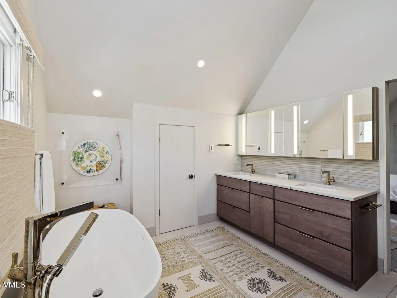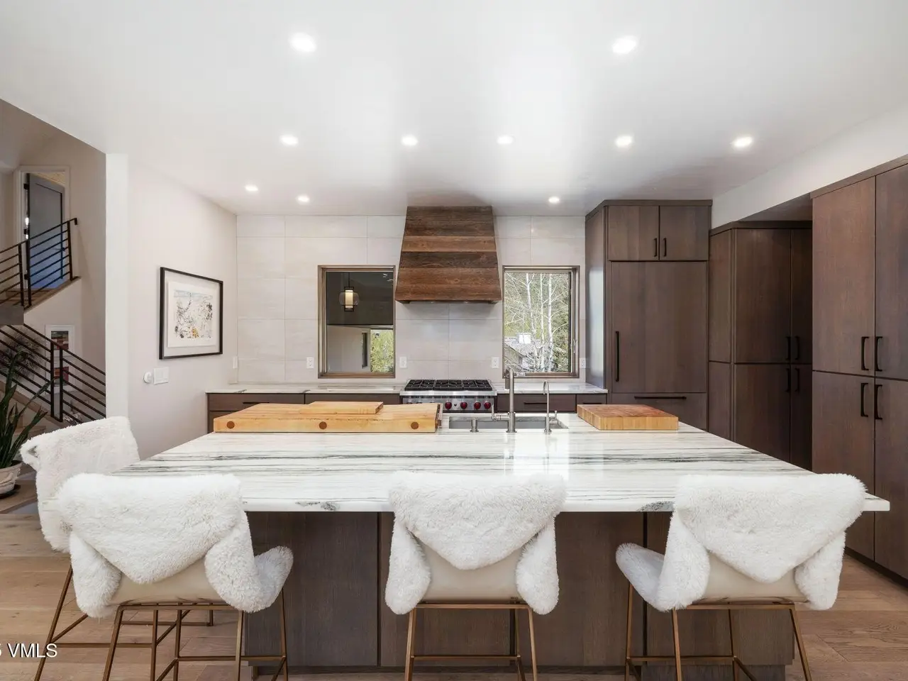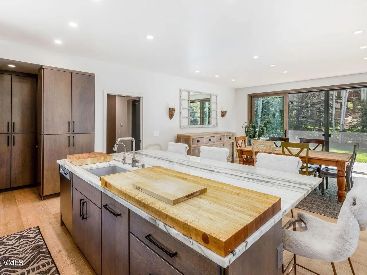 Modern Luxury Meets Mountain Living - Just Minutes from Vail. Welcome to this meticulously and elegantly remodeled contemporary single-family home, where sleek design and mountain charm blend seamlessly just moments from the heart of Vail. Set on a rare, generously sized flat yard, this property offers both privacy and space - an uncommon gem in the area. Bathed in sunlight from its south-facing orientation, the home features dramatic floor-to-ceiling windows that flood the interiors with natural light and frame views of the serene surroundings. The vaulted ceilings and open-concept layout include a show-stopping gourmet kitchen with top-of-the-line finishes ideal for everything from quiet mornings to festive gatherings. With four spacious bedrooms, which include a luxurious primary suite with a spa-inspired bathroom, a main floor guest suite plus a family room, office area, and personal workout area, the home's thoughtful two-level design balances elegance, comfort, and versatility. Step outside to discover a beautifully integrated outdoor living experience. The expansive terrace flows effortlessly to the paved patio, flat fenced in lawn area and a vegetable garden create the perfect backdrop for entertaining, relaxing, or play. The oversized garage provides abundant space for vehicles, mountain gear, and storage. And with no transfer tax thanks to its location just outside the Town of Vail limits, this home is as smart an investment as it is a dream to live in.
